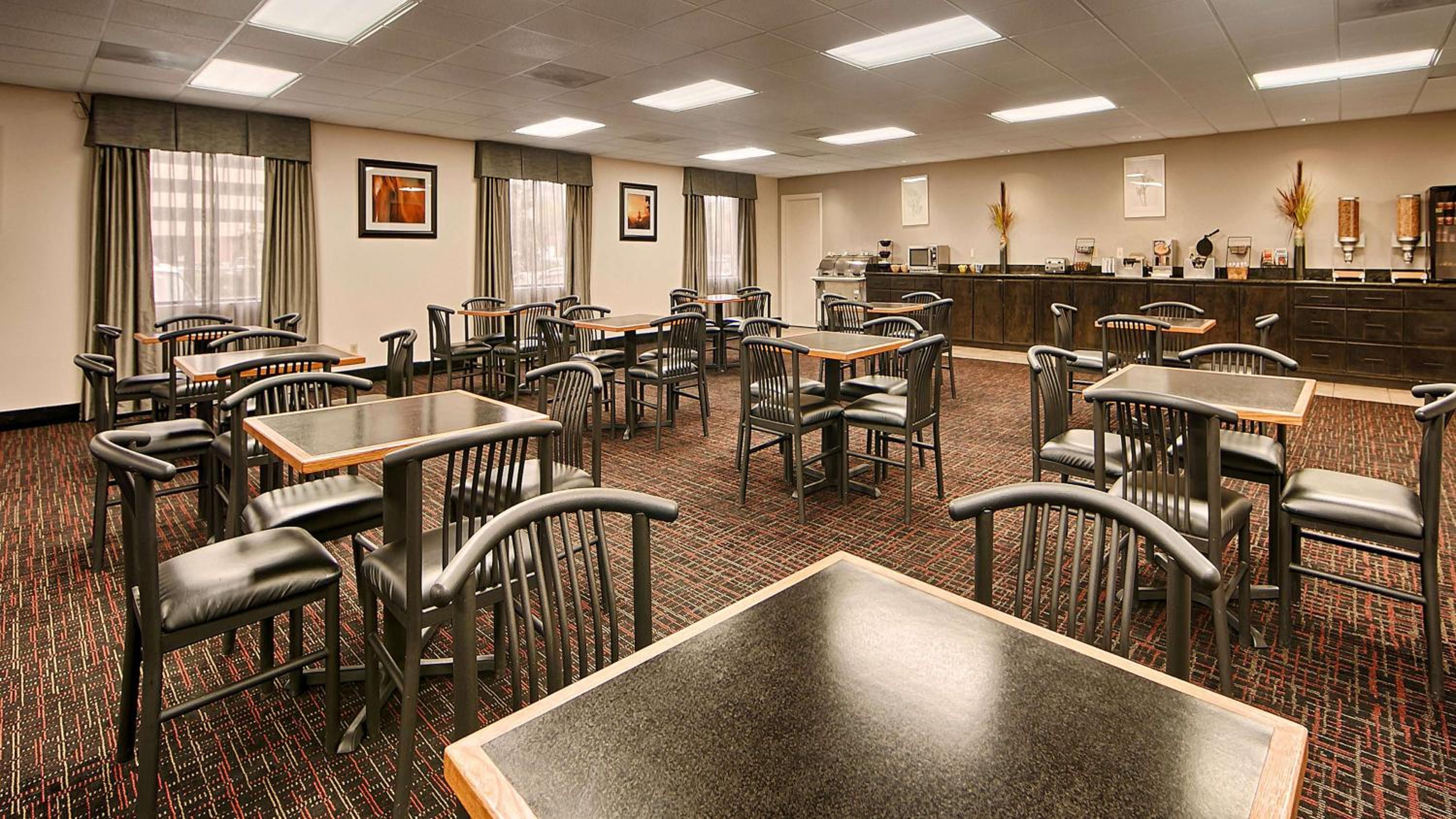 Start your day with a fresh breakfast offering a variety of options. The hotel also features a community kitchen, indoor pool, fitness center, on-site business facilities, 24-hour front desk, and guest laundry for a convenient and comfortable experience.