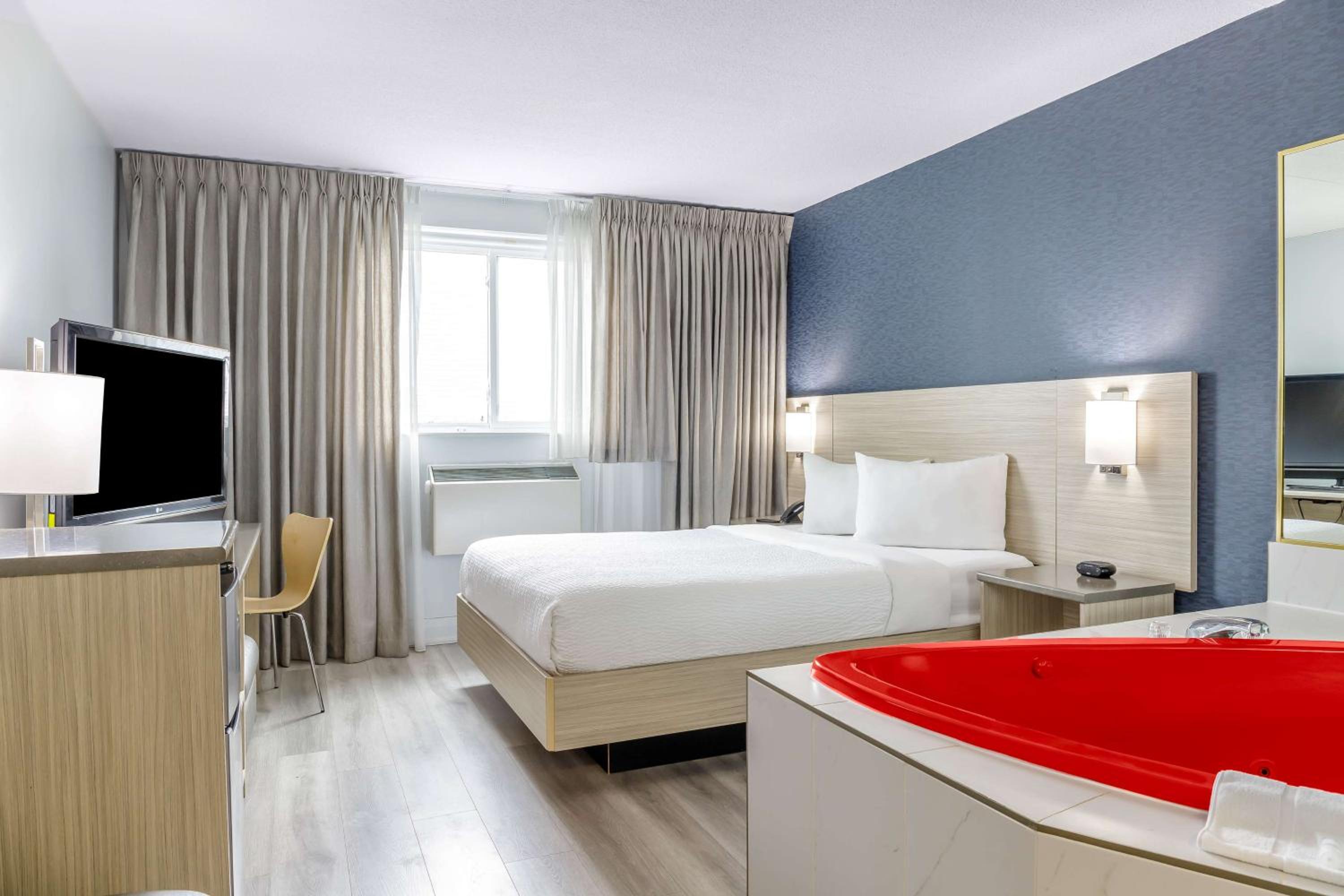 Experience comfort and convenience at our Niagara Falls hotel, just a short walk from the magnificent Horseshoe Falls. Relax in our spacious rooms equipped with Google TV and free WiFi. Each room features modern amenities including air conditioning and a private bathroom with a hair dryer.