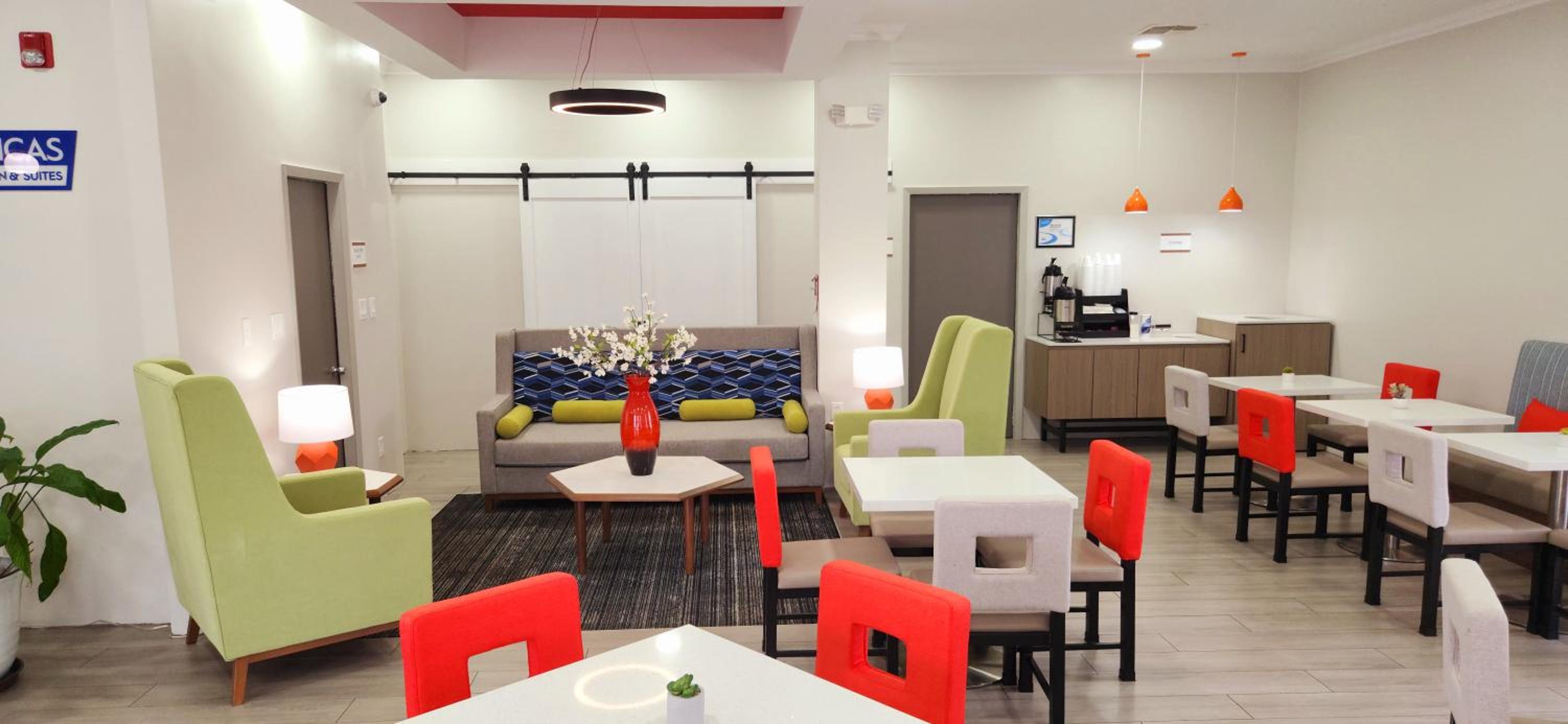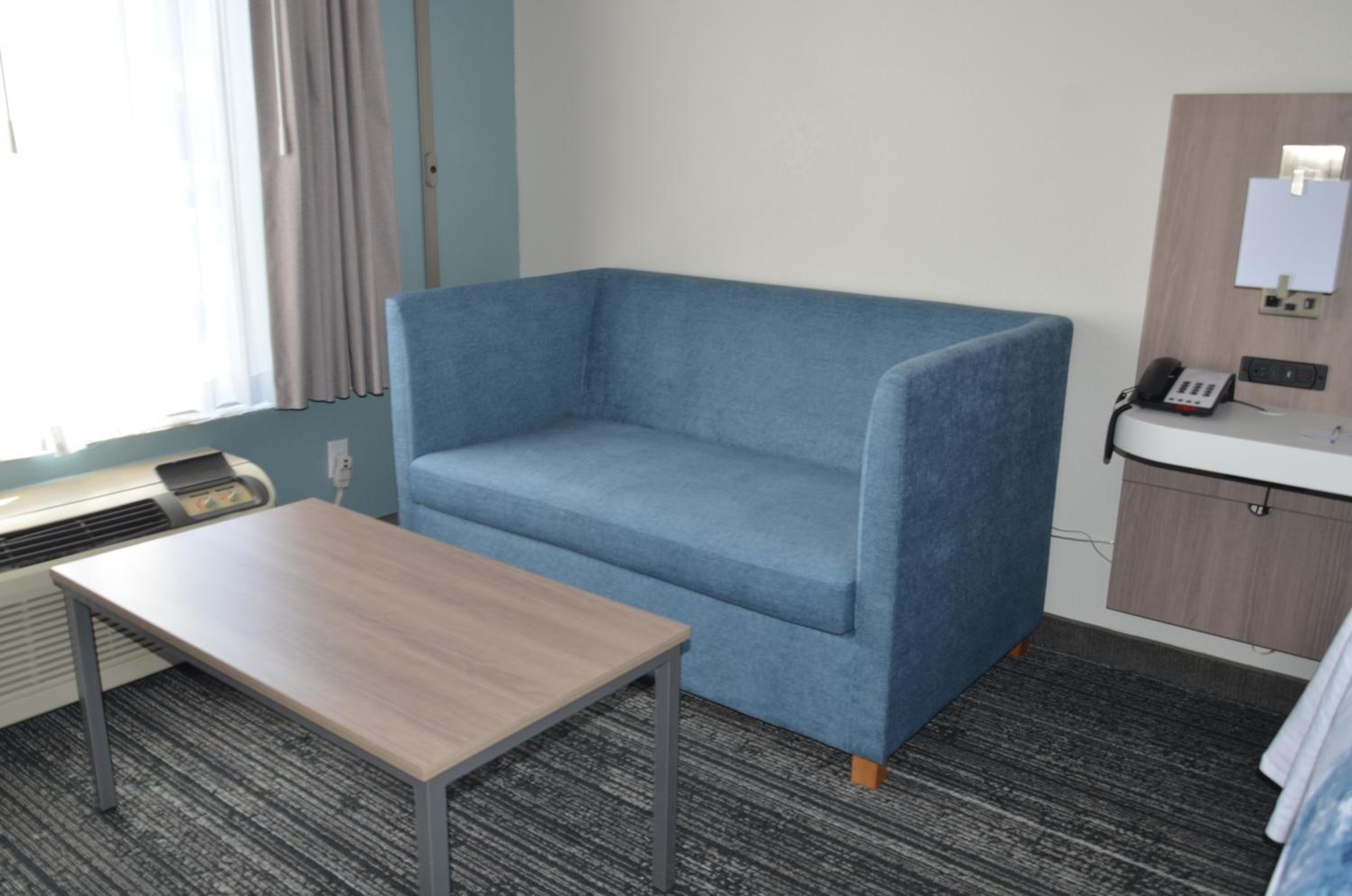 Each contemporary room is equipped with a microwave, refrigerator, and coffee maker for your convenience. Relax and unwind with satellite TV and a seating area, or upgrade to a room with a loveseat. Disability accessible rooms are also available.