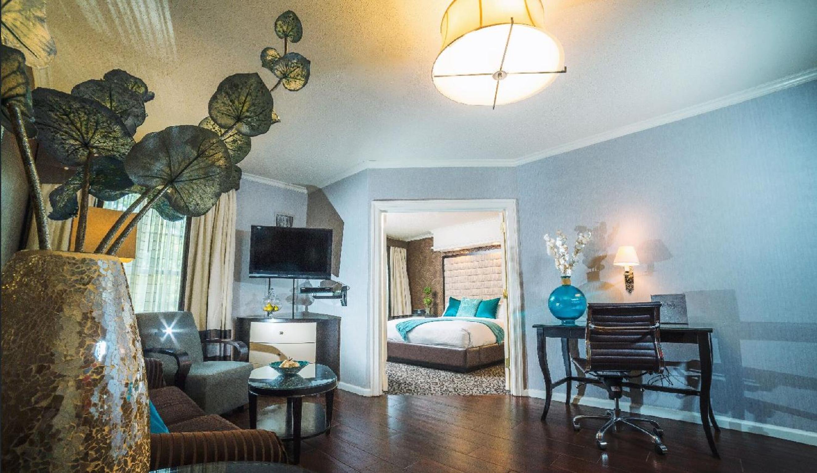 Start your day with a daily full American breakfast and savor complimentary dinners from Mondays through Thursdays at the on-site Bar and Lounge. Lounge by the outdoor swimming pool, explore the beautiful gardens in the outdoor courtyard, and unwind in your suite with flat-screen TVs. Additionally, take advantage of the 24-hour fitness center and on-site boutiques.