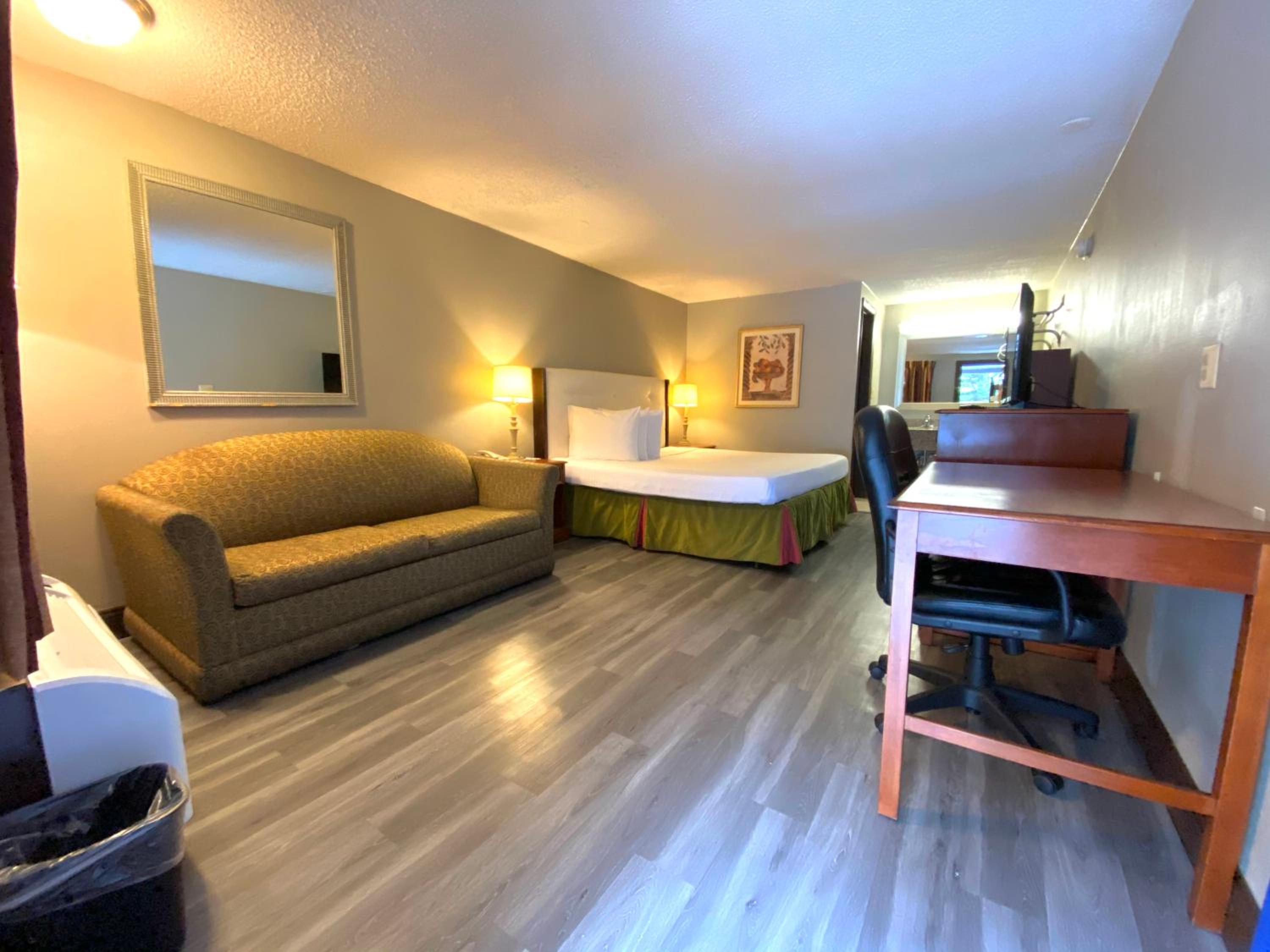 Each room at Knights Inn Laurel comes equipped with a microwave, refrigerator, cable TV, and free WiFi. The warmly decorated rooms with carpeted floors ensure a cozy stay for our guests.