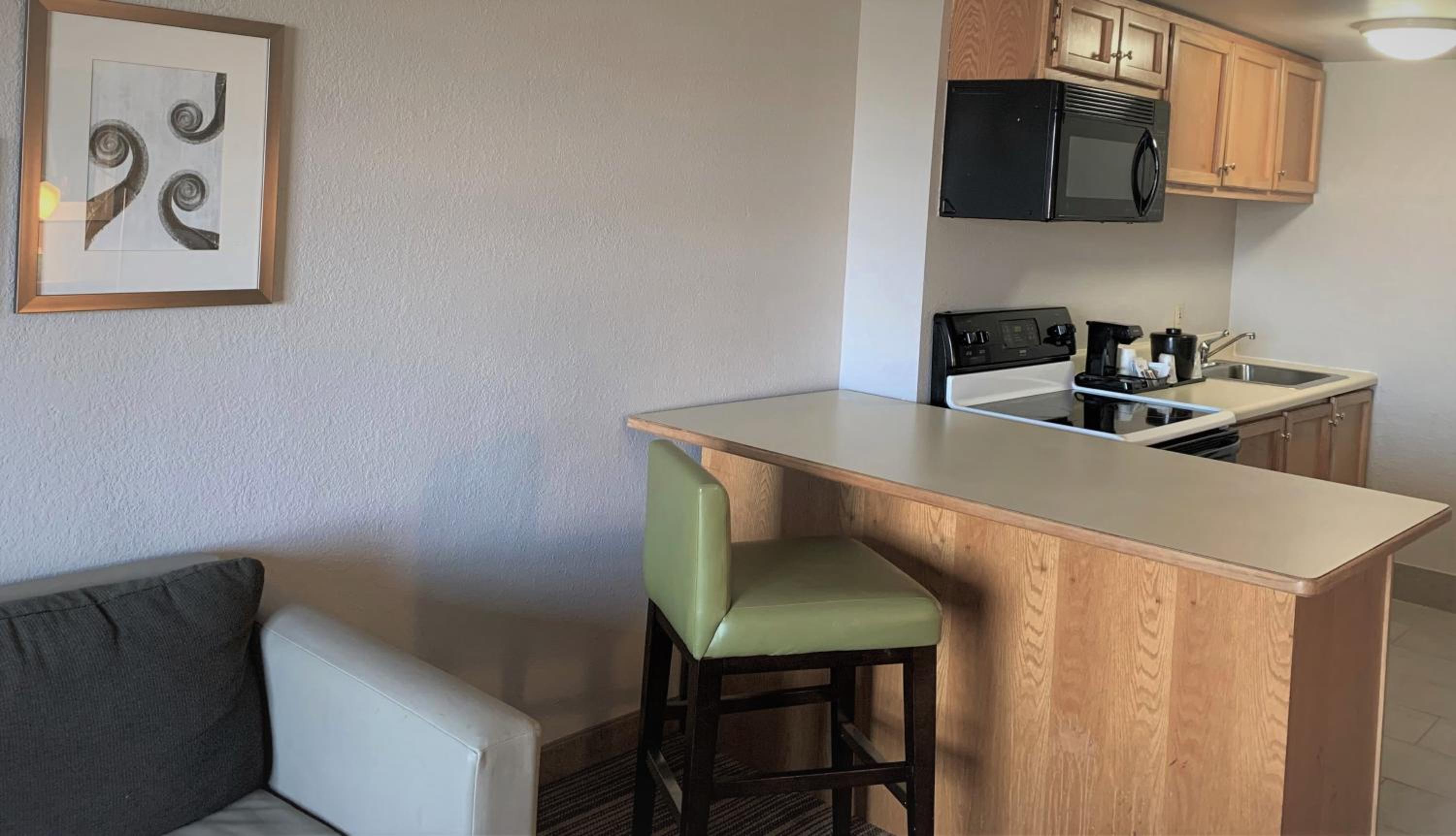 Modern Amenities: Enjoy a relaxing stay with a flat-screen TV, microwave, and refrigerator in every room. Stay connected with complimentary Wi-Fi and stay refreshed with in-room coffee-making facilities.