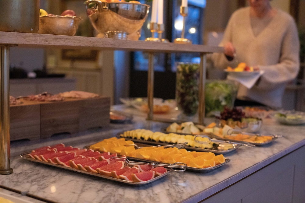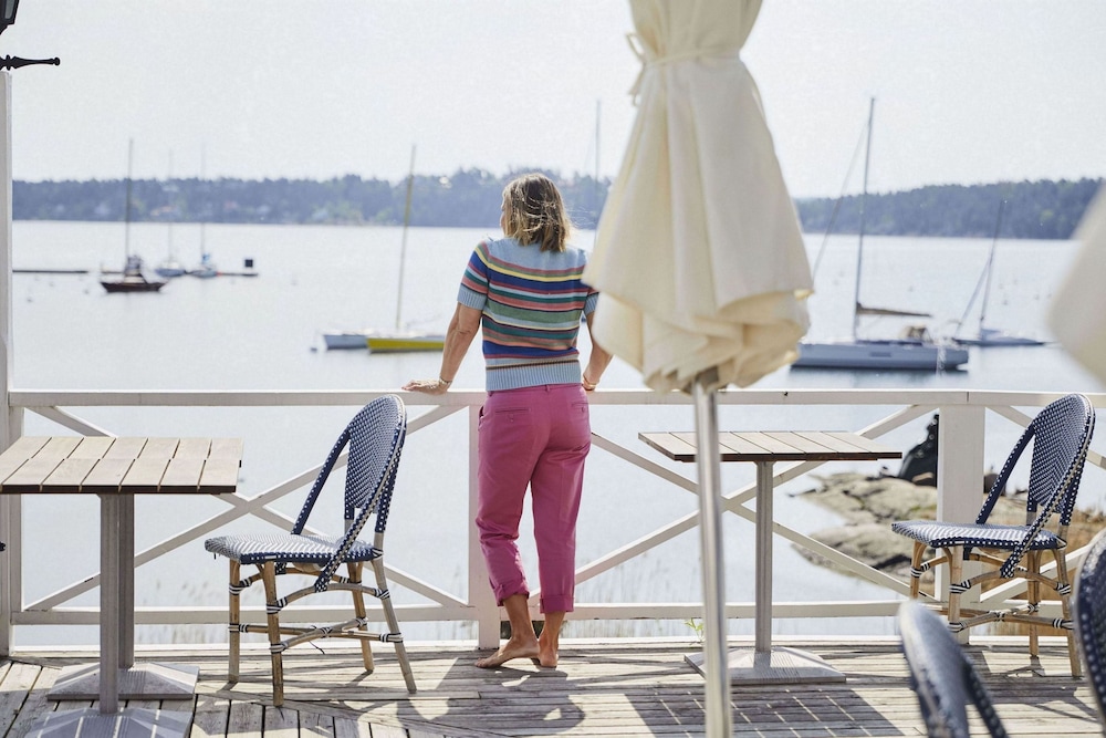 Bra frukost och skaplig mat i paviljongen som fungerade som matsal under sommaren. Fina rum med underbar utsikt över viken. Hotellet är mycket värt ett besök.