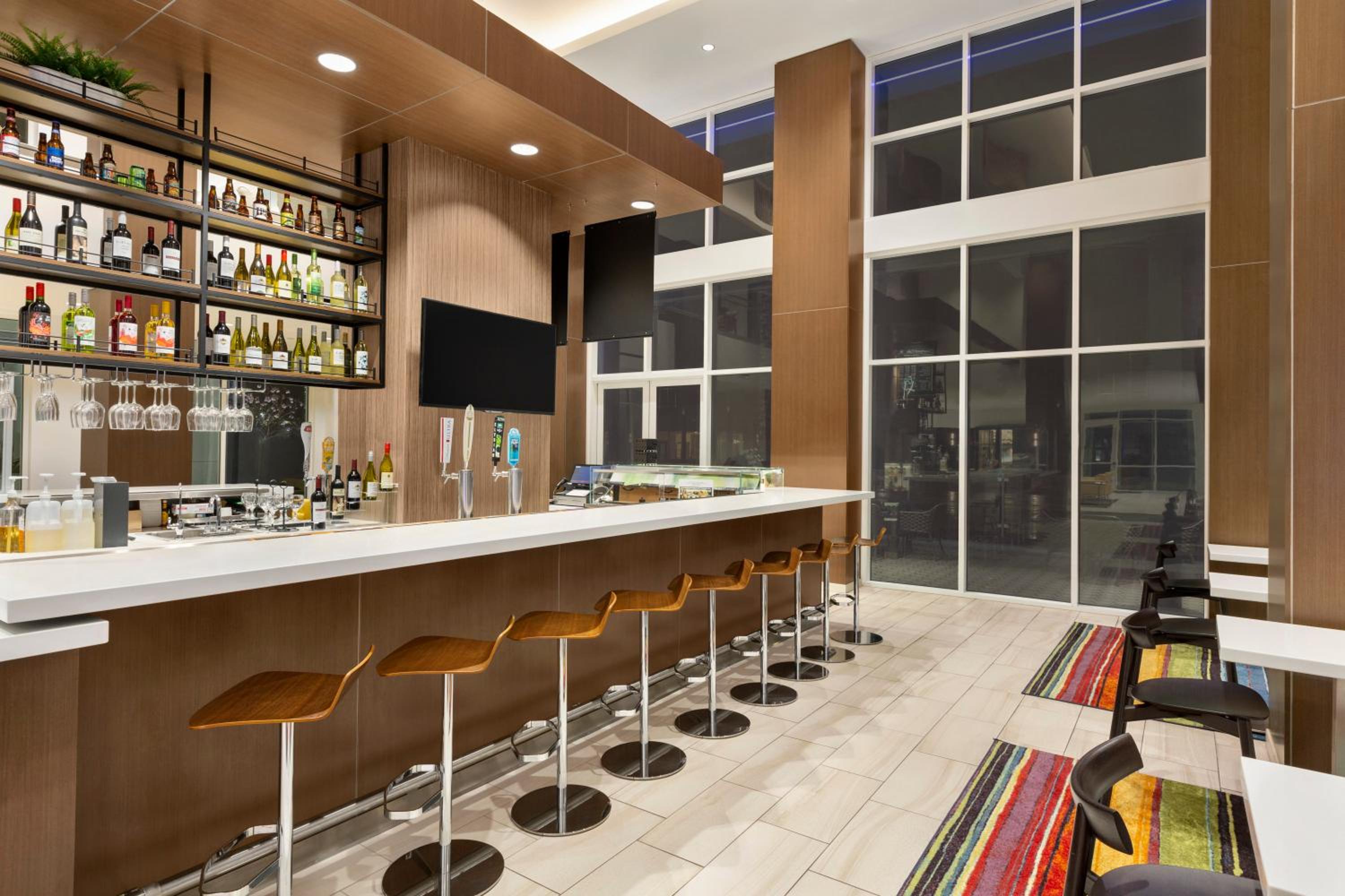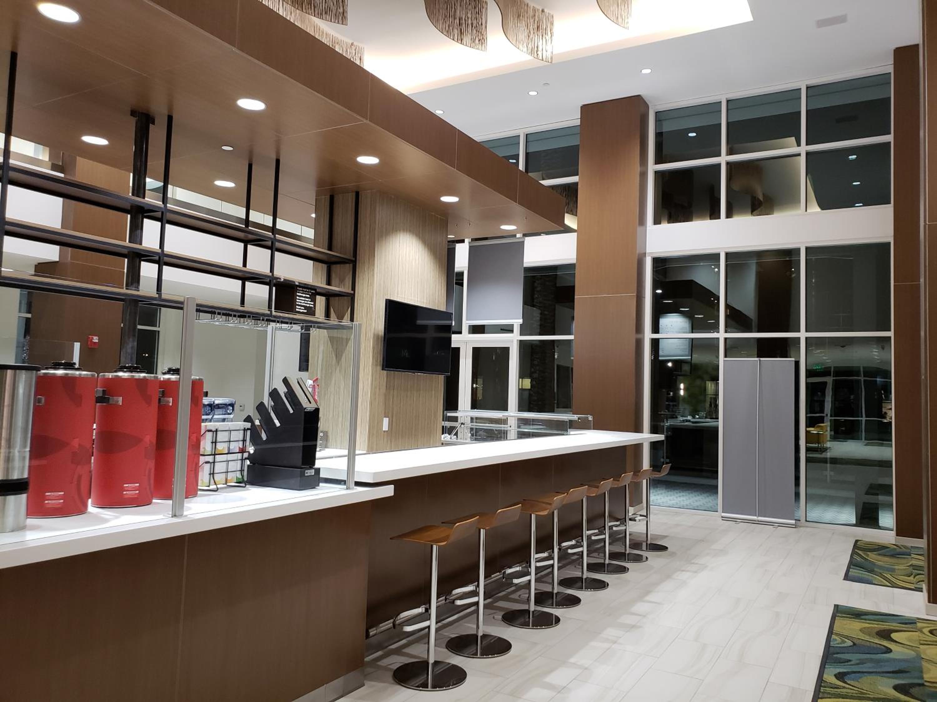 The lobby was spacious and very bright and inviting. The fact they had a Starbucks inside was a huge plus. This morning's breakfast sandwich was tasty.