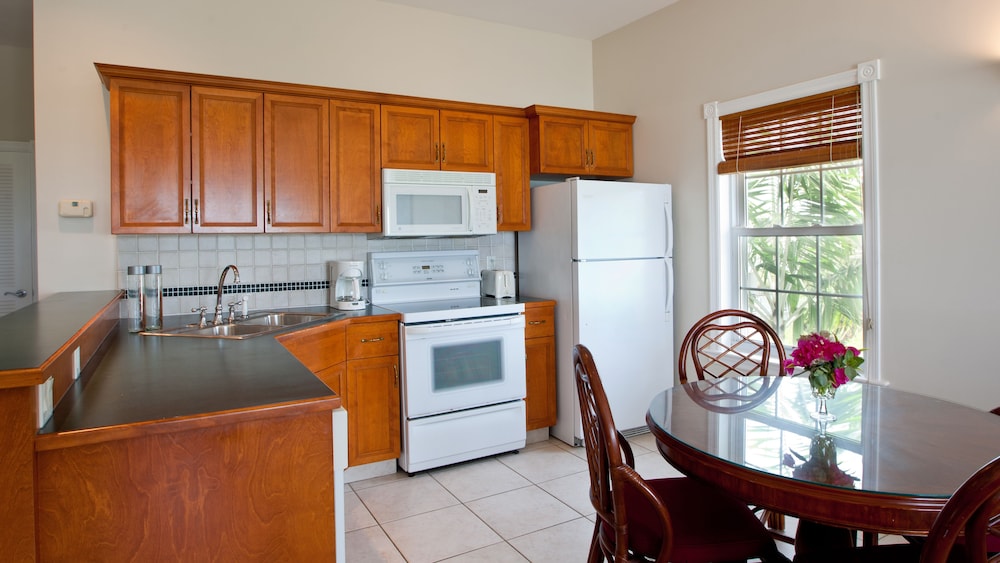 The room had a washer dryer, fridge, microwave, kitchen sink, a patio to sit outside, wifi throughout the resort and air condition in the rooms. The bed was comfortable. There was a dining table, a desk, and a sitting area. The hotel restaurant was closed for breakfast, but there were places nearby to eat (I recommend the Ritz Carlton for breakfast). The hotel restaurant has no a/c so it was hot. But the food was pretty good. The pizza was great. the drinks were good too. happy hour from 5-7. No food specials, but drinks were 50% off. The staff was very helpful. The beach is beautiful. The pools looked nice (we went to the beach since it was right there). Sunday night, there was a live singer. Our room was right by the front desk building. Furthest building from the ocean, but it wasn't that far and it was quiet. I would stay here again.