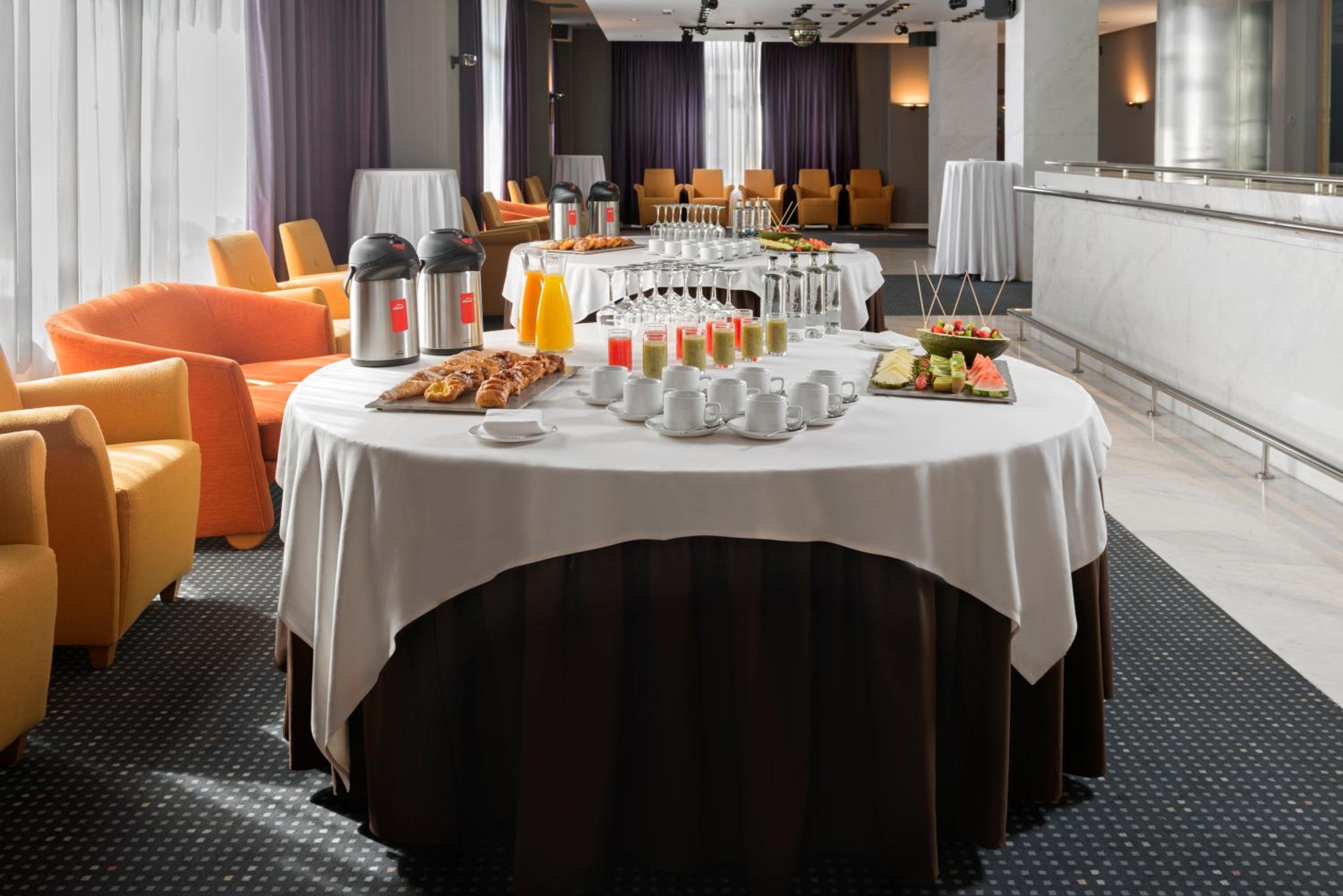 Indulge in a delightful buffet breakfast at Elba Business and Convention Hotel, dine at El Lagar restaurant for a taste of regional and international flavors, and grab a quick bite at the hotel's snack bar. Stay active at the fitness centre offering a gym, sauna, and massage services, along with squash facilities.