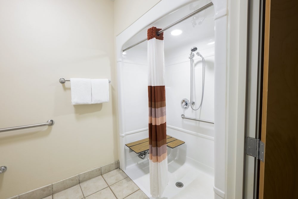 This is a terrible hotel, especially for the price I paid for this room, which was over $300 and that was after using $100 reward credit that I had. My husband and I checked in for one night. First, the room had a terrible smell - musty, damp. Someone from the front desk came up and offered to spray something but we didn’t want to risk that being worse. The room was handicapped accessible ( which we didn’t need) but set up poorly. The sink is outside of the bathroom, but there isn’t even a hook to hang a hand towel. There is a small metal shelf to put toiletries on but when my husband put his shaving kit on it, it came right out of the wall and broke. The lighting in the bathroom was so dim, it was hard to see. Terrible water pressure in the shower as well. The room was a good size and the bed was comfortable. The hotel staff was very nice, hence the two stars. I would never stay here again- my husband said that even if they offered us a free night here, he would never come back!