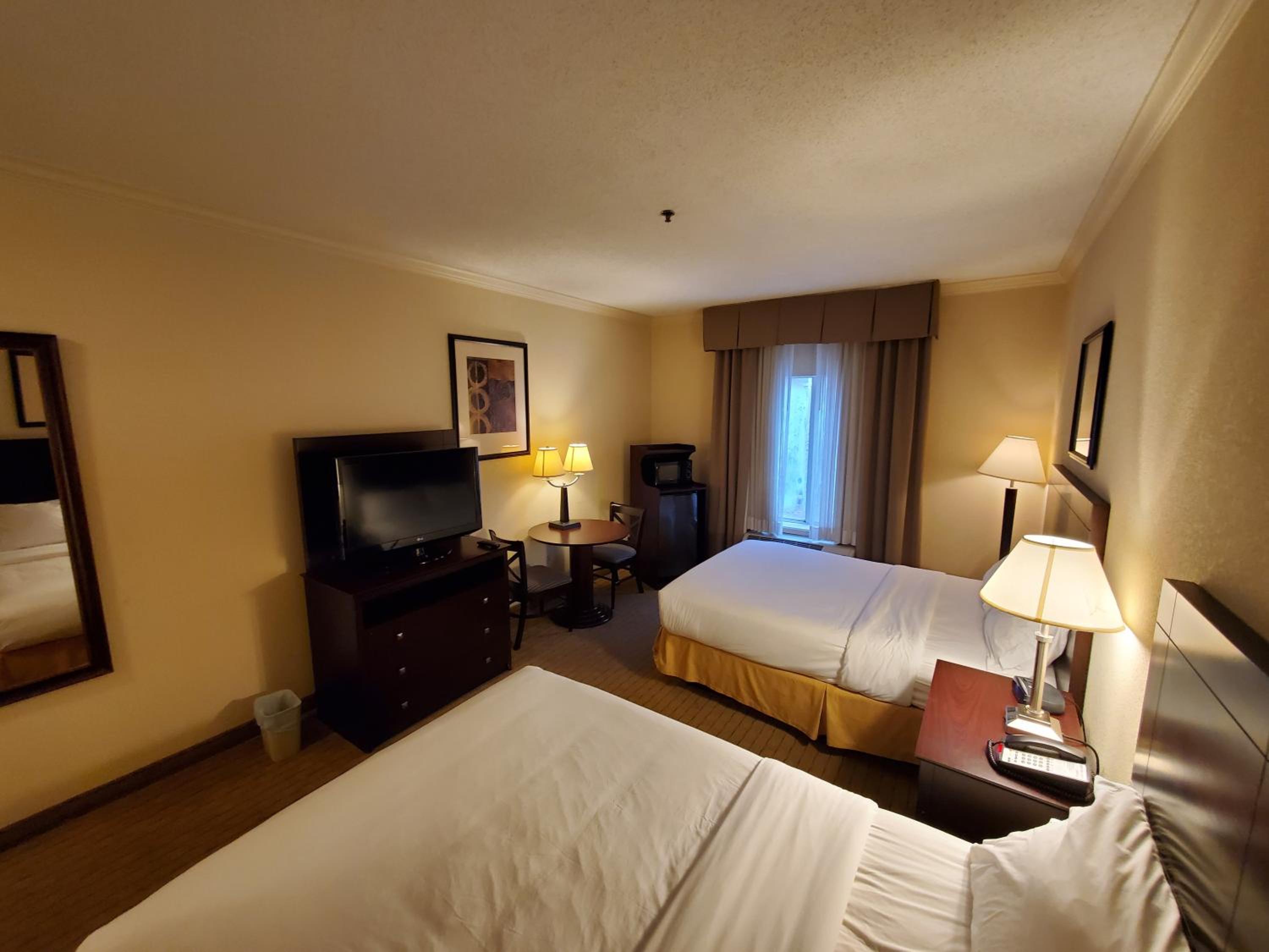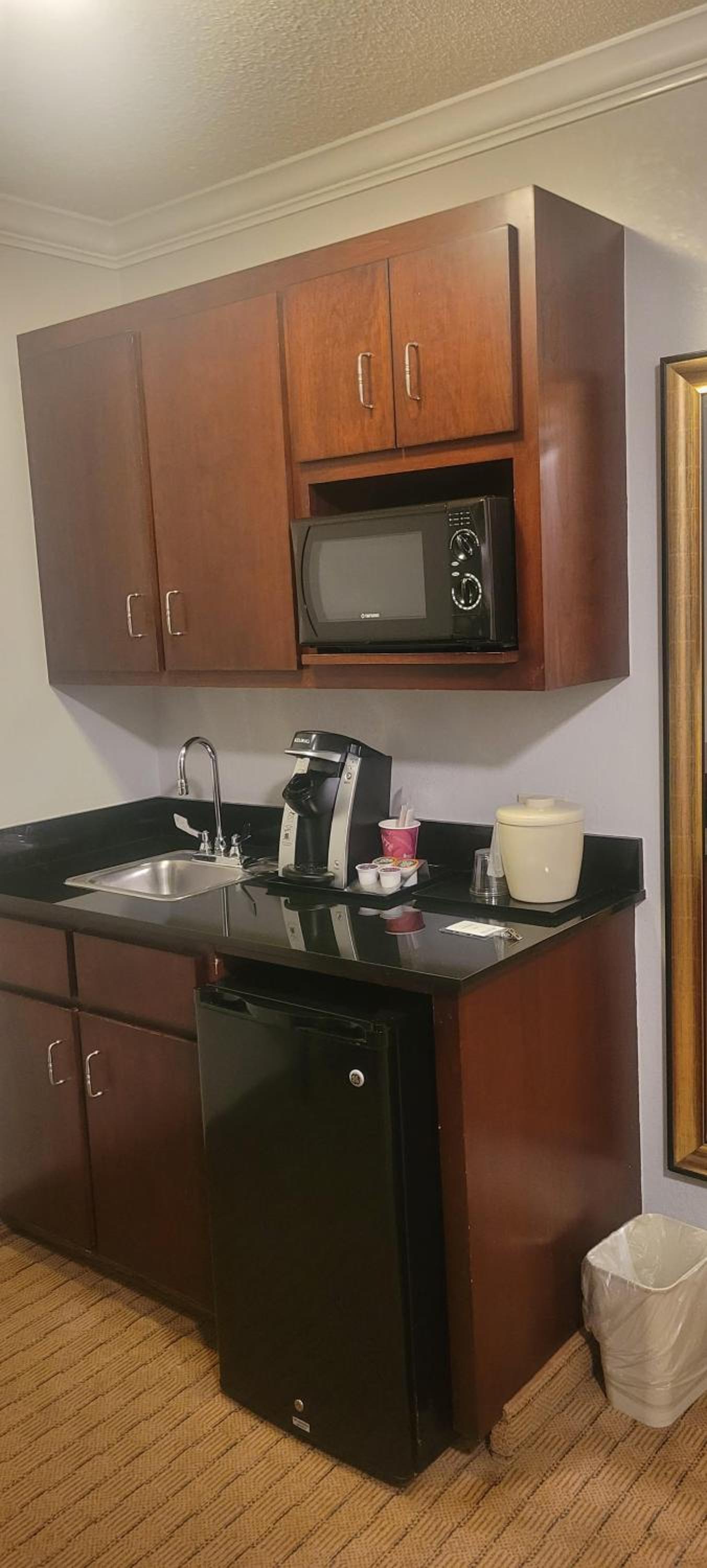 breakfast was soggy eggs with artificial cheese and apples and bananas. That was it. Hotel was dirty, the room looked like it wasn't clean, especially the floors. Bed was awful in the King suite. I paid extra for a better room and got very disappointed. We heard dogs barking all night and all day. Pool was unusable bc it was extremely cold water.