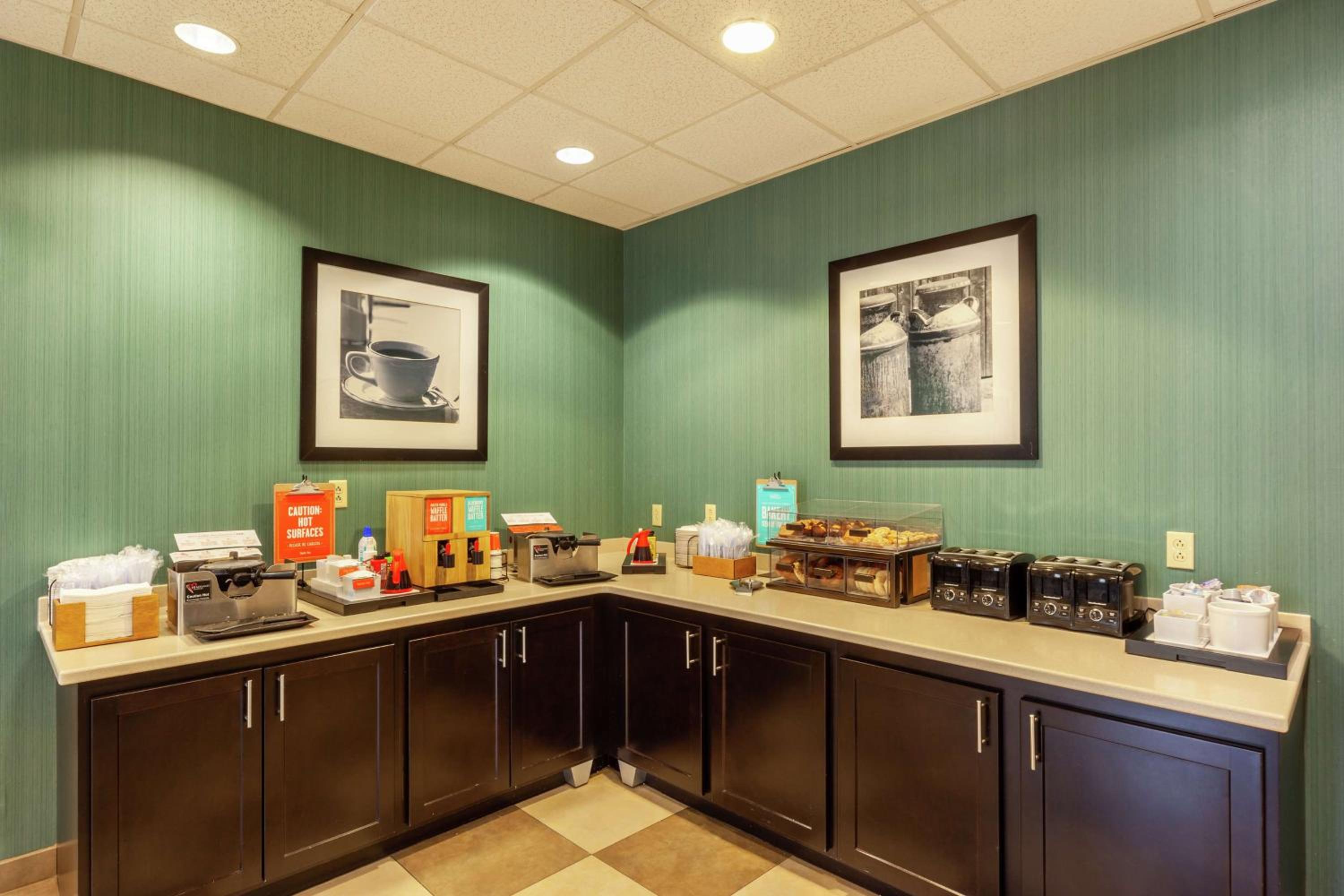 Great hotel. Recently renovated, very clean and welcoming. Nice lobby, breakfast area with 24 hour coffee. Spacious room, comfy beds.