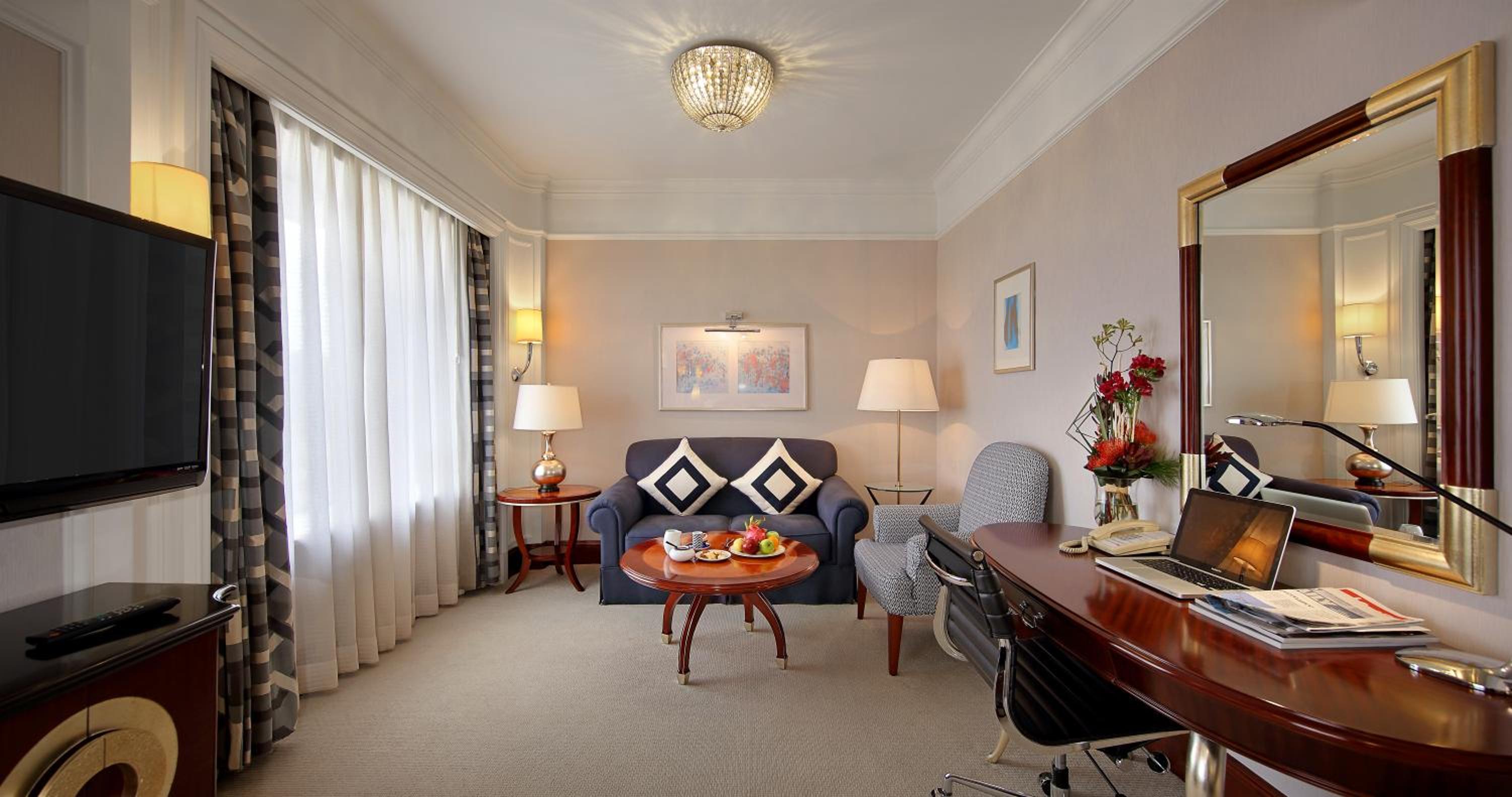Hotel Royal Macau offers a prime location beneath the iconic Guia Lighthouse, providing stunning views overlooking Vasco da Gama Park. The large windows in all guestrooms offer panoramic views of Macau City, creating a memorable stay for guests.