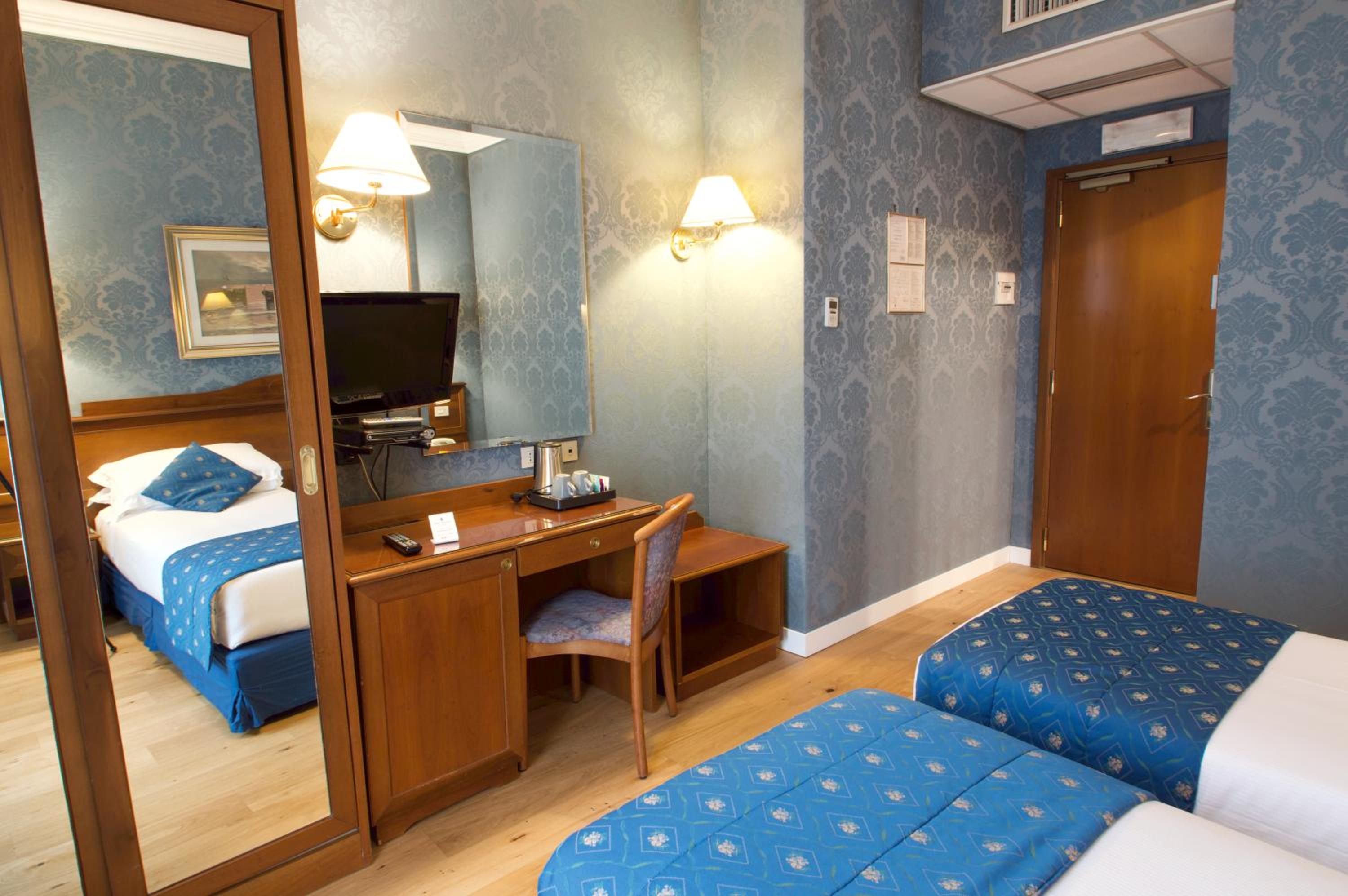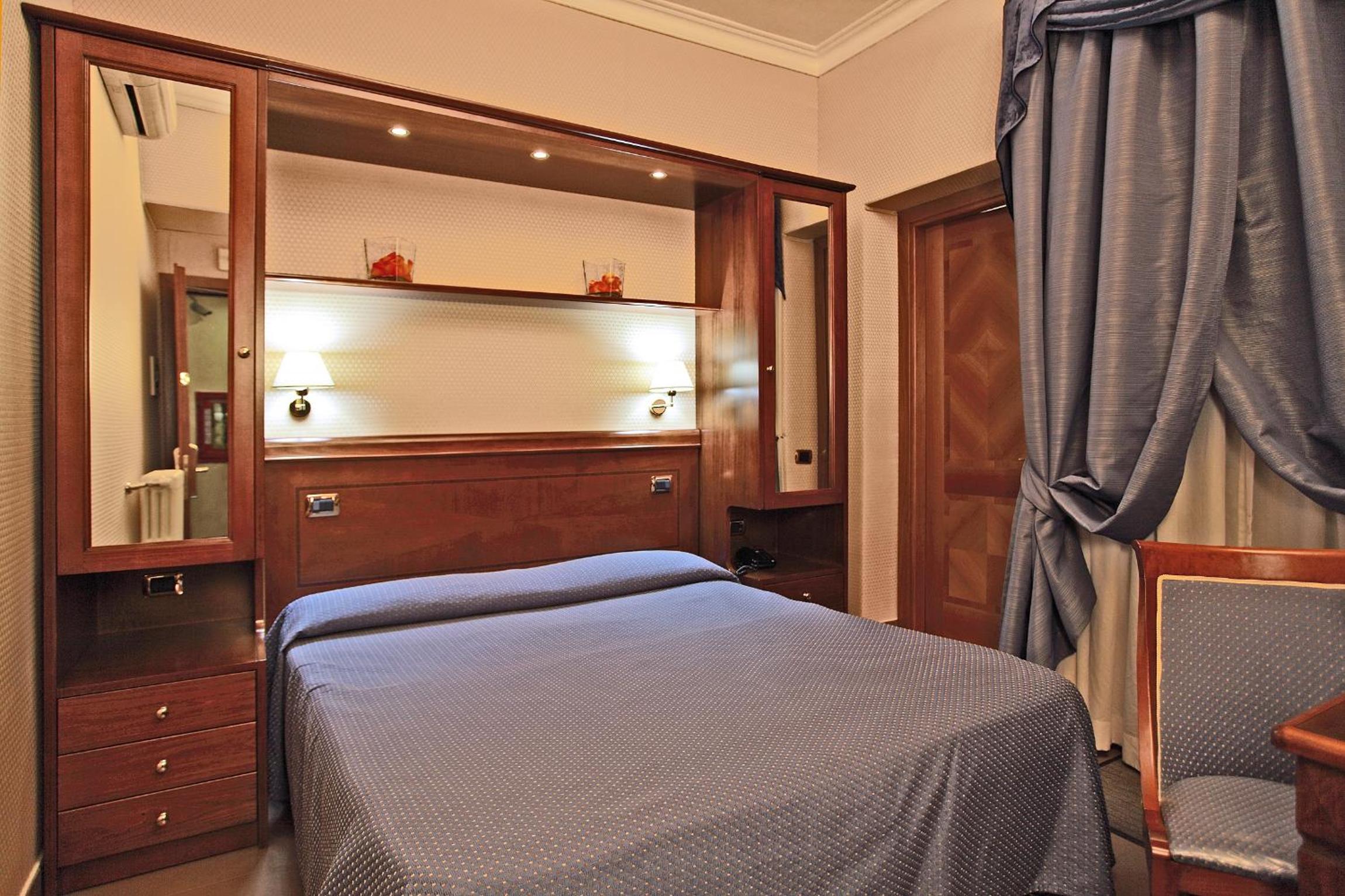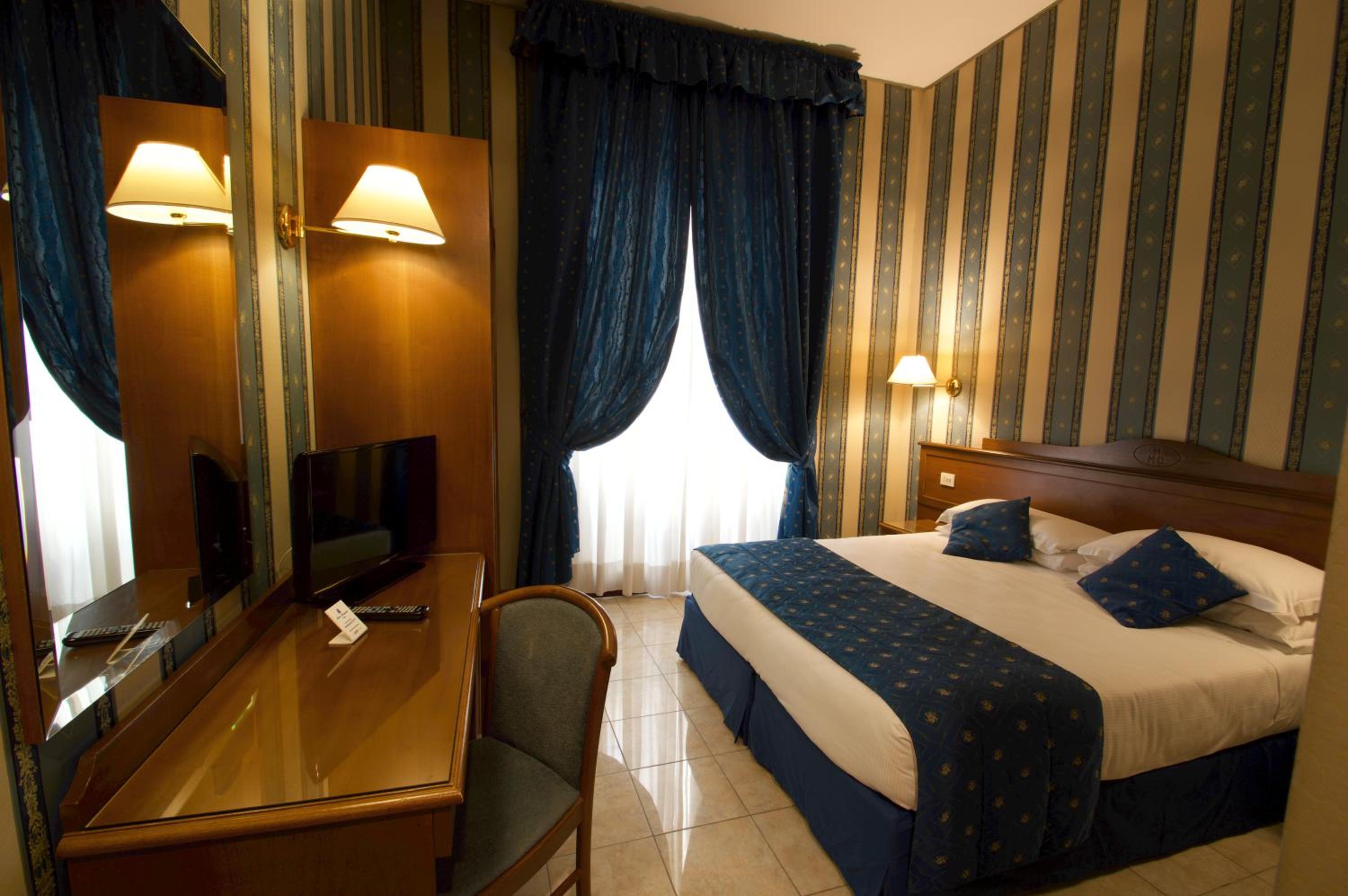 Hotel Montecarlo, just a short stroll from Rome Termini Train Station, offers classic-style rooms with modern amenities like air conditioning and free WiFi. The rooms provide comfort with satellite TV, en suite bathrooms, and LCD TVs with pay-per-view channels.