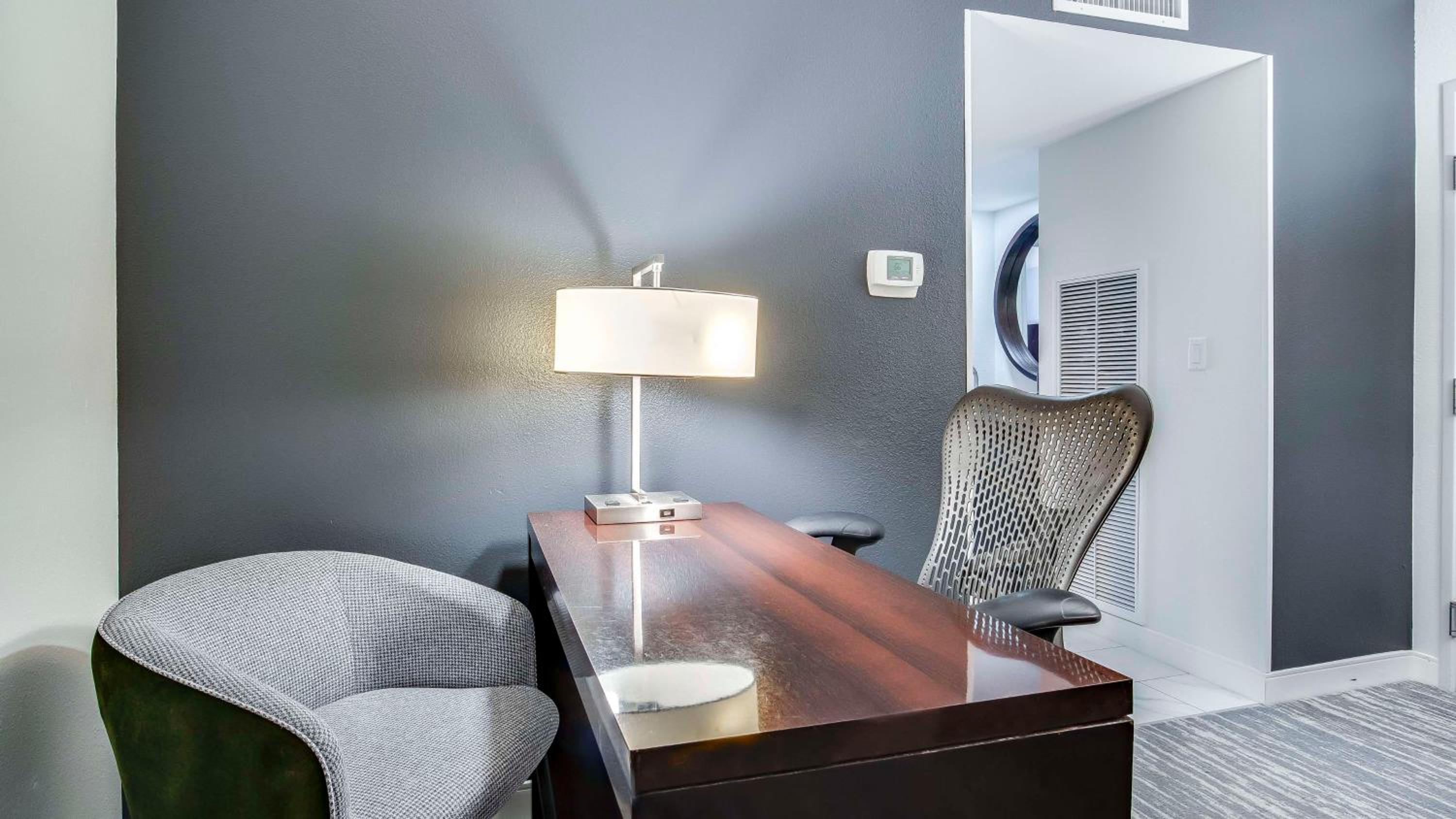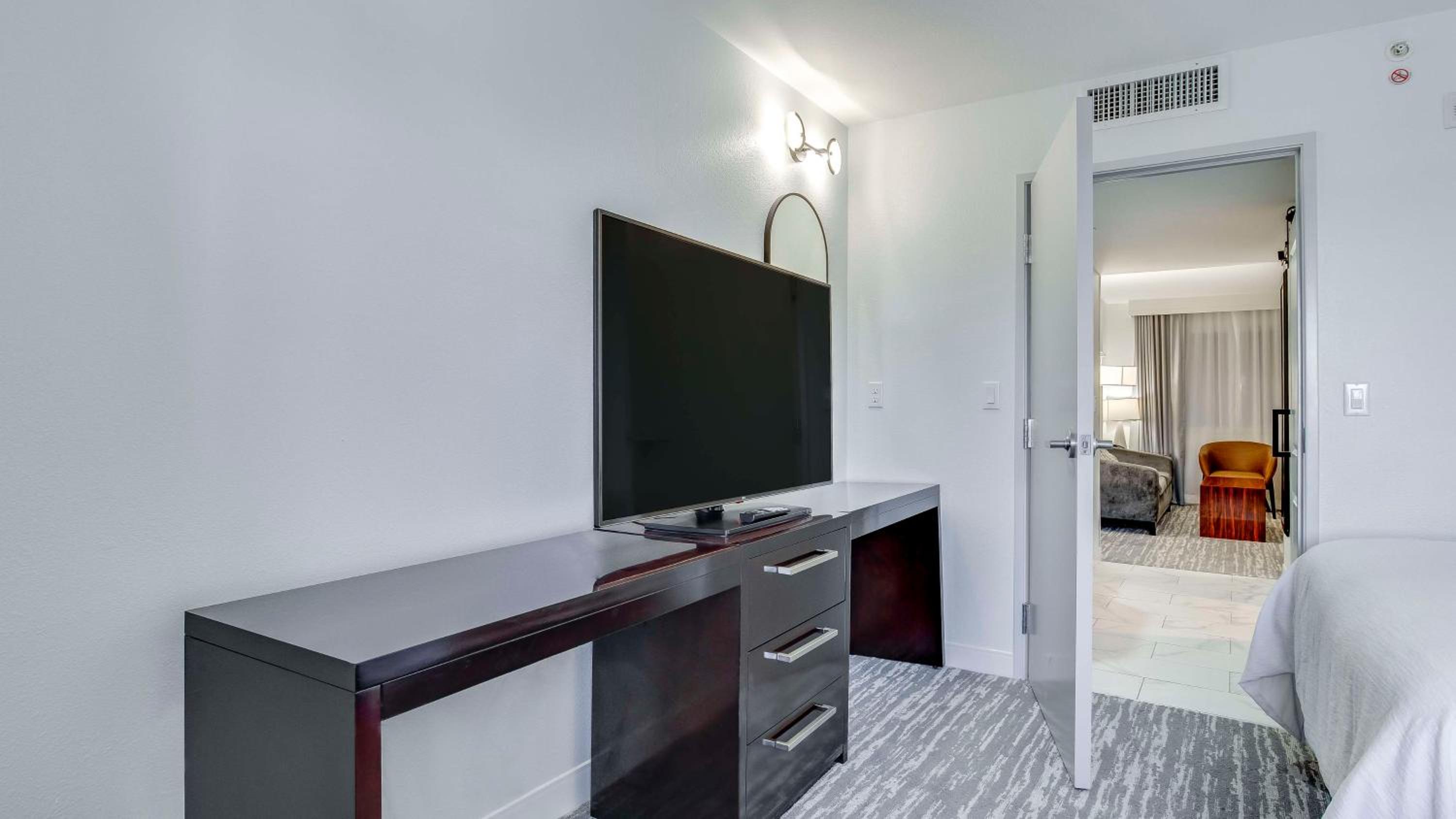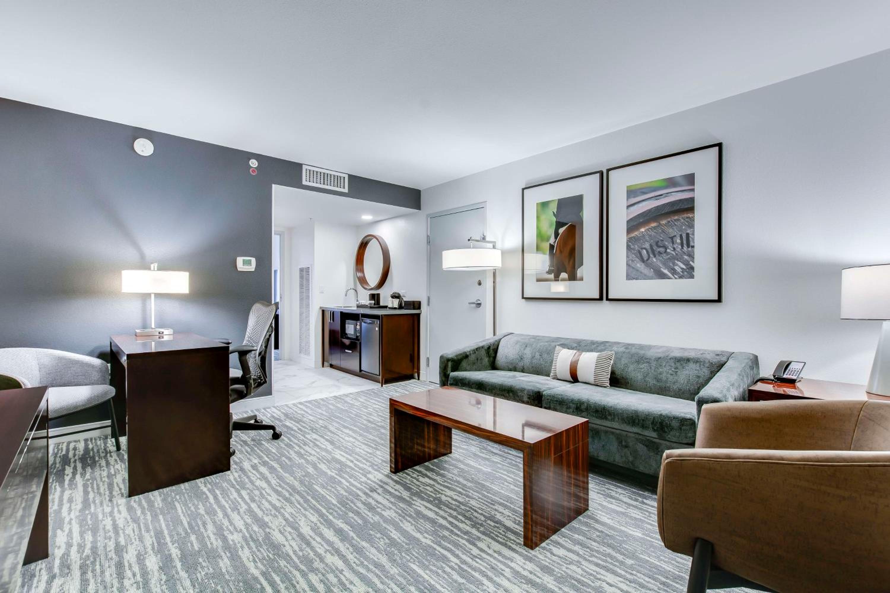 Located in the vibrant Hurstbourne Corridor, Embassy Suites Louisville offers spacious suites equipped with modern amenities like refrigerators, microwaves, and coffee makers. Enjoy free high-speed internet access, ample work areas, and premium Bloom Energy bath products during your stay.
