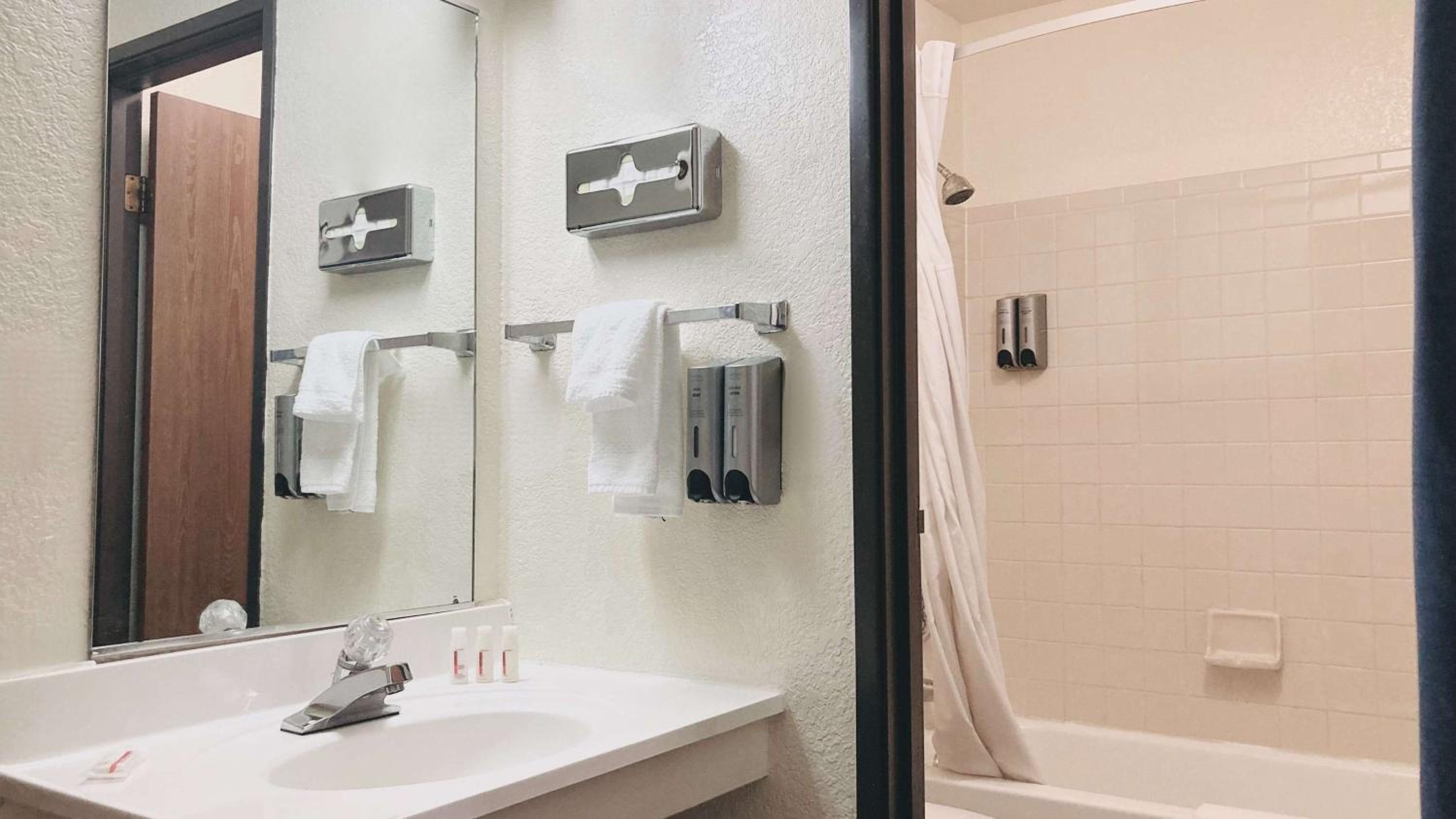 Bathroom door was very flimsy. Almost seemed like it would disintegrate when you pulled it open it wobbled so badly. Breakfast was minimal - hard boiled eggs, toast, bagel or English muffin with butter and jelly, cold cereal, that was about it. I think they had a waffle maker. Would have liked more options. Even donuts would be a good addition. Again, about what you'd expect from a budget hotel.