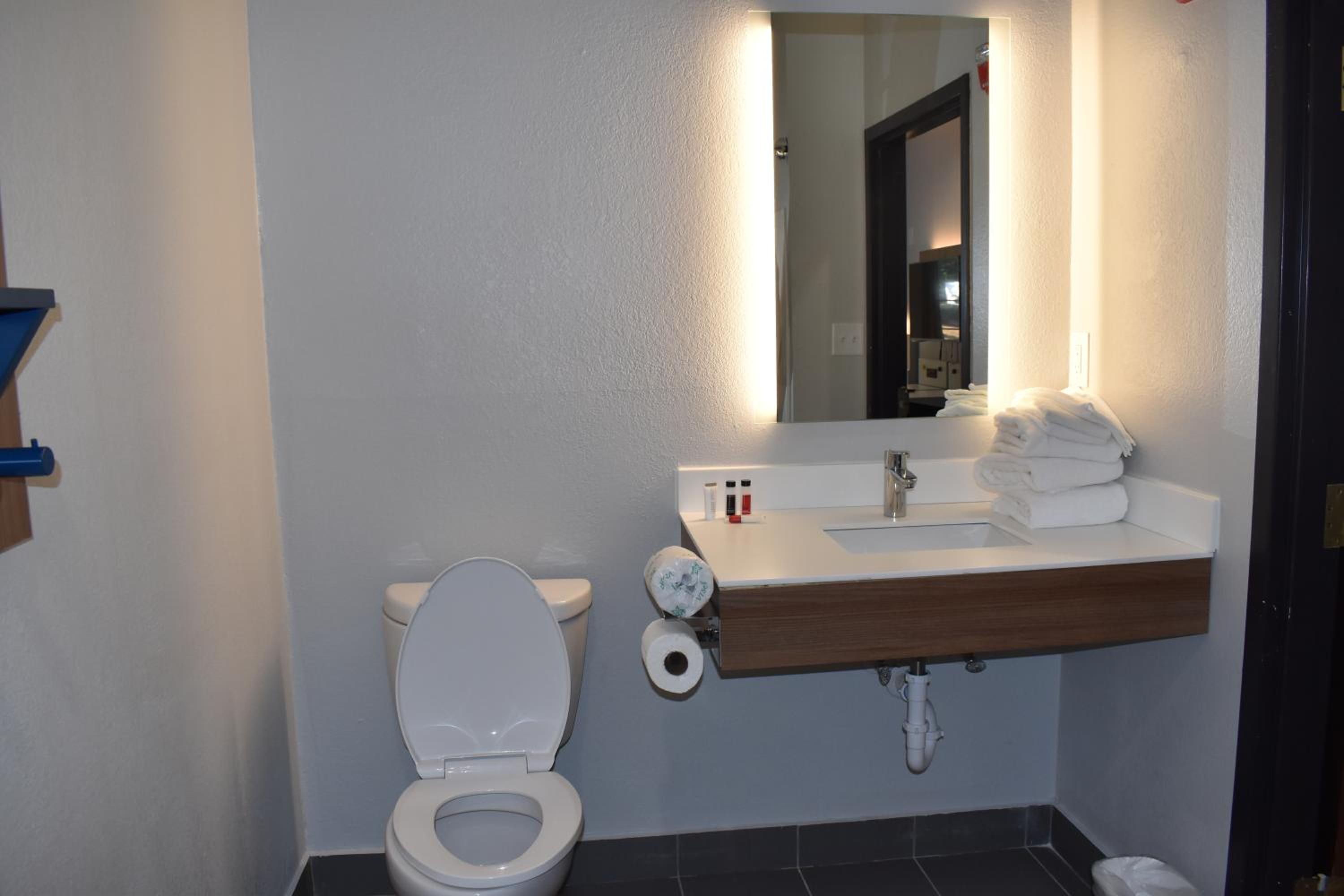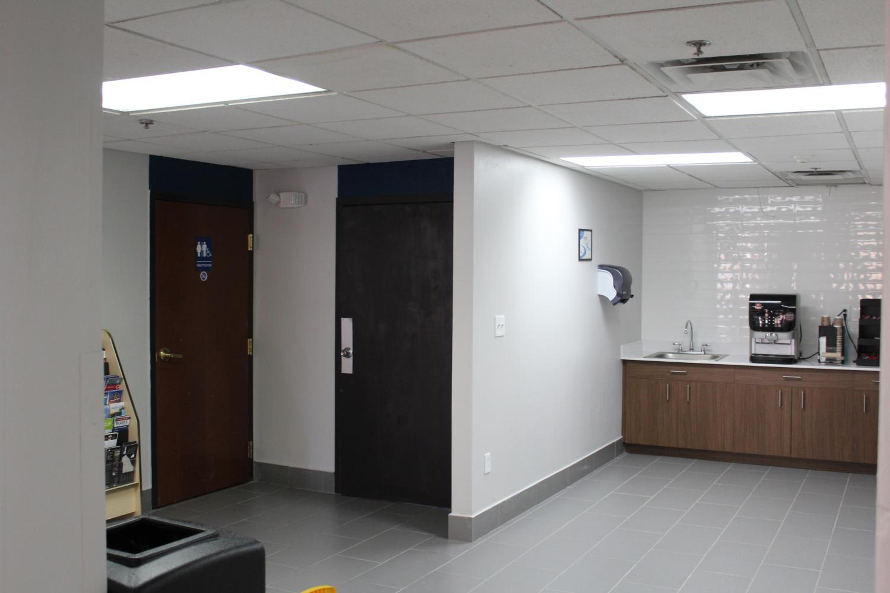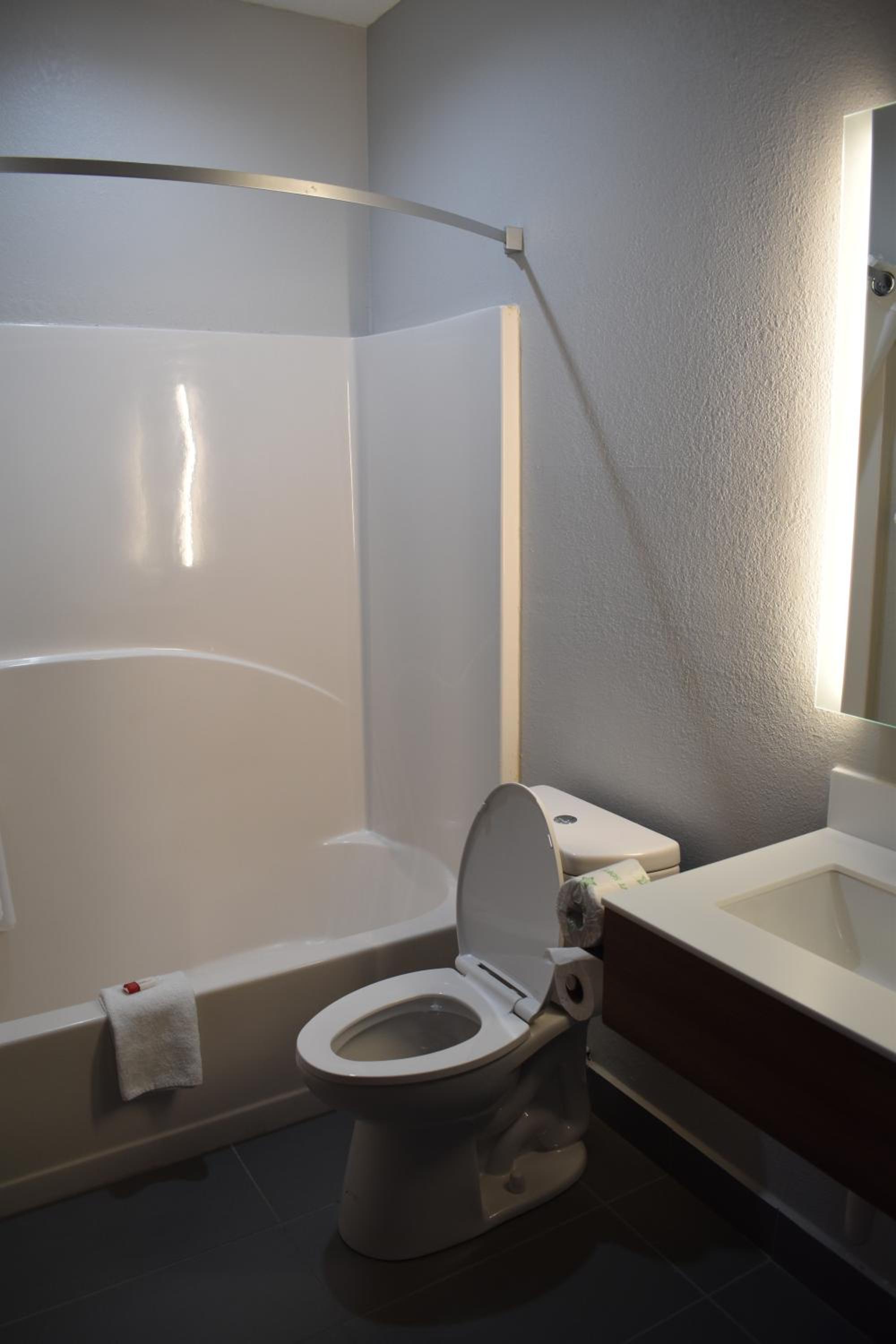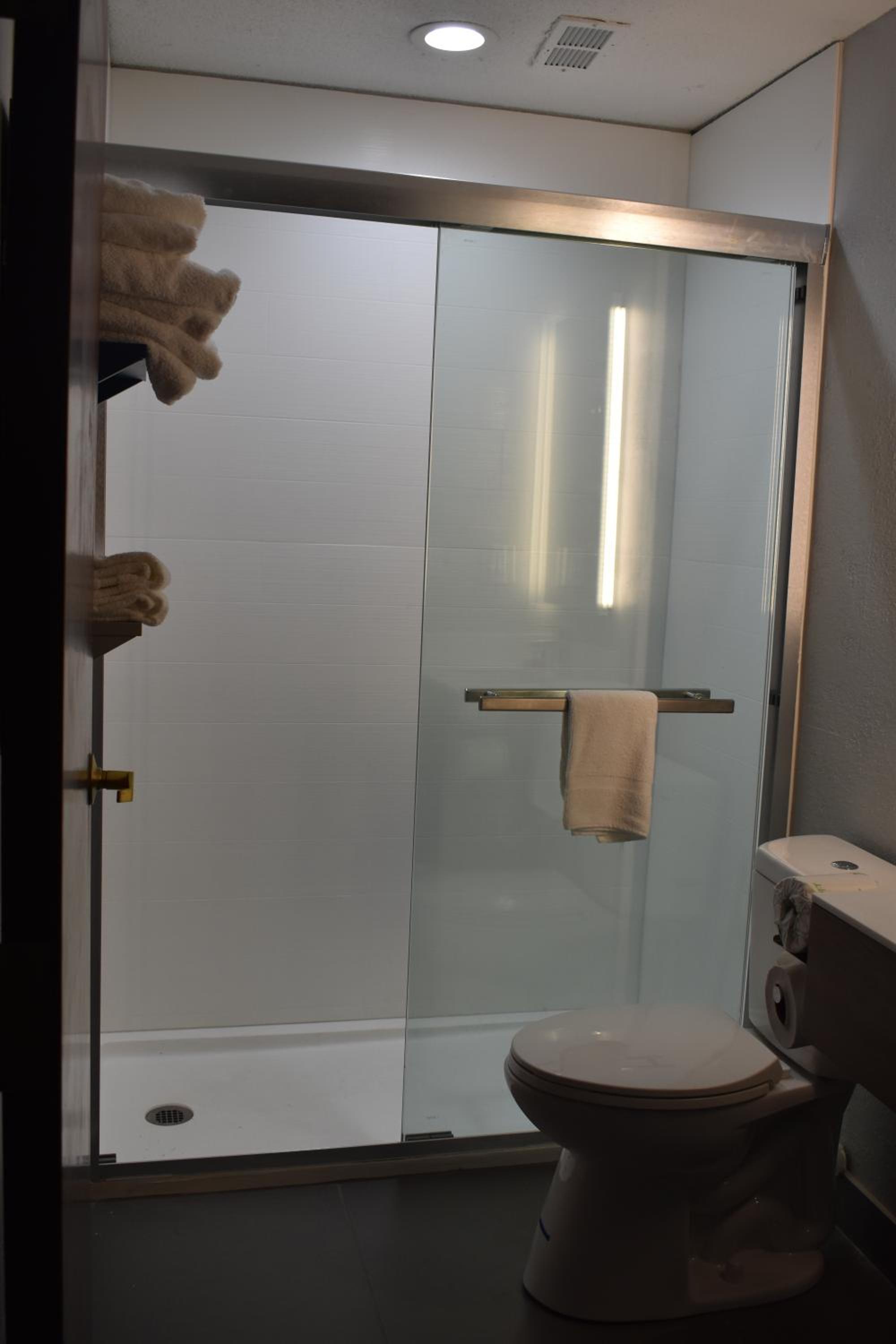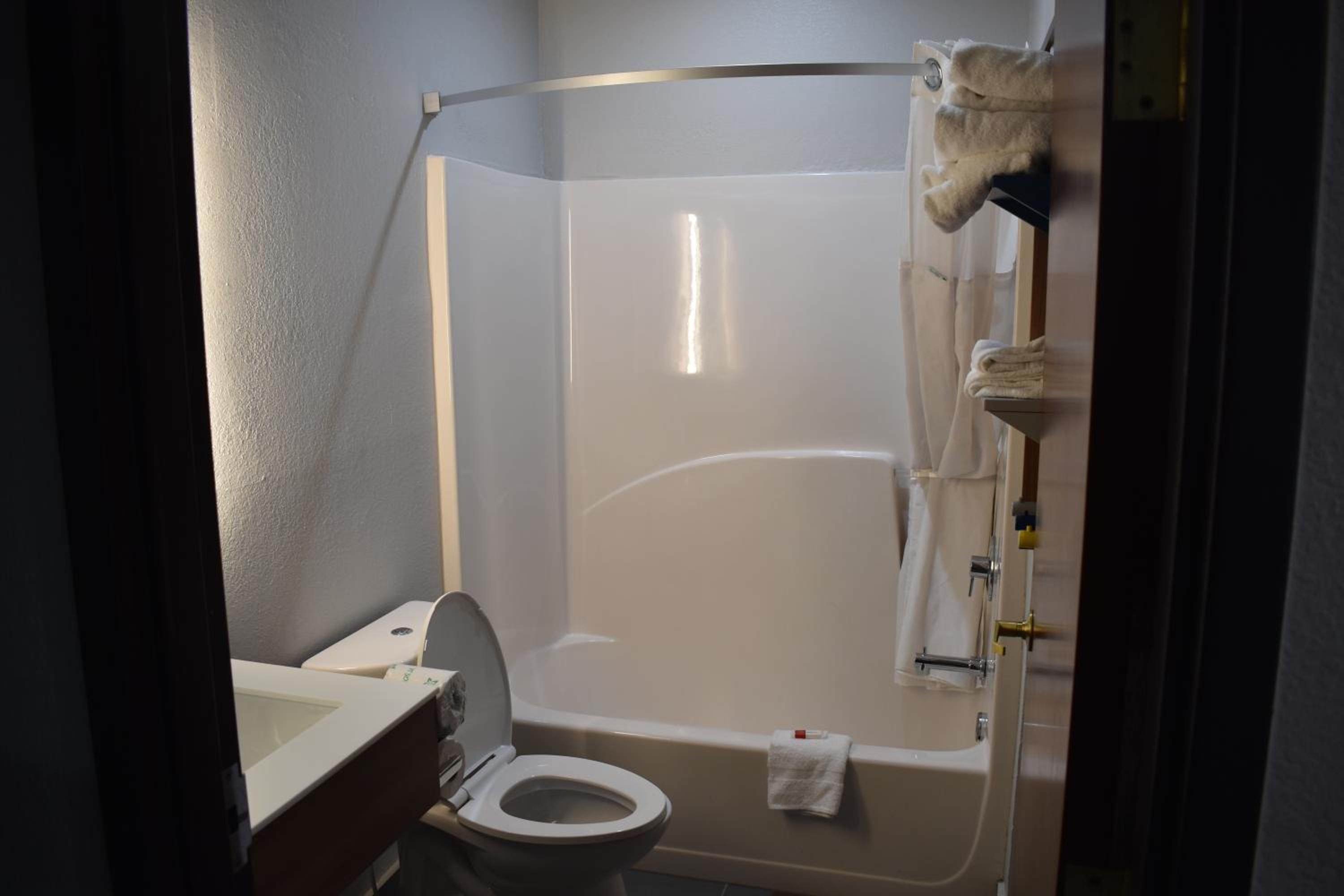 Friendly staff. ADA room was able to fit 2 full size mobility scooters while leaving room to walk. Bathtub had several handrails. Only negatives were no rail at toilet and no shower stall.