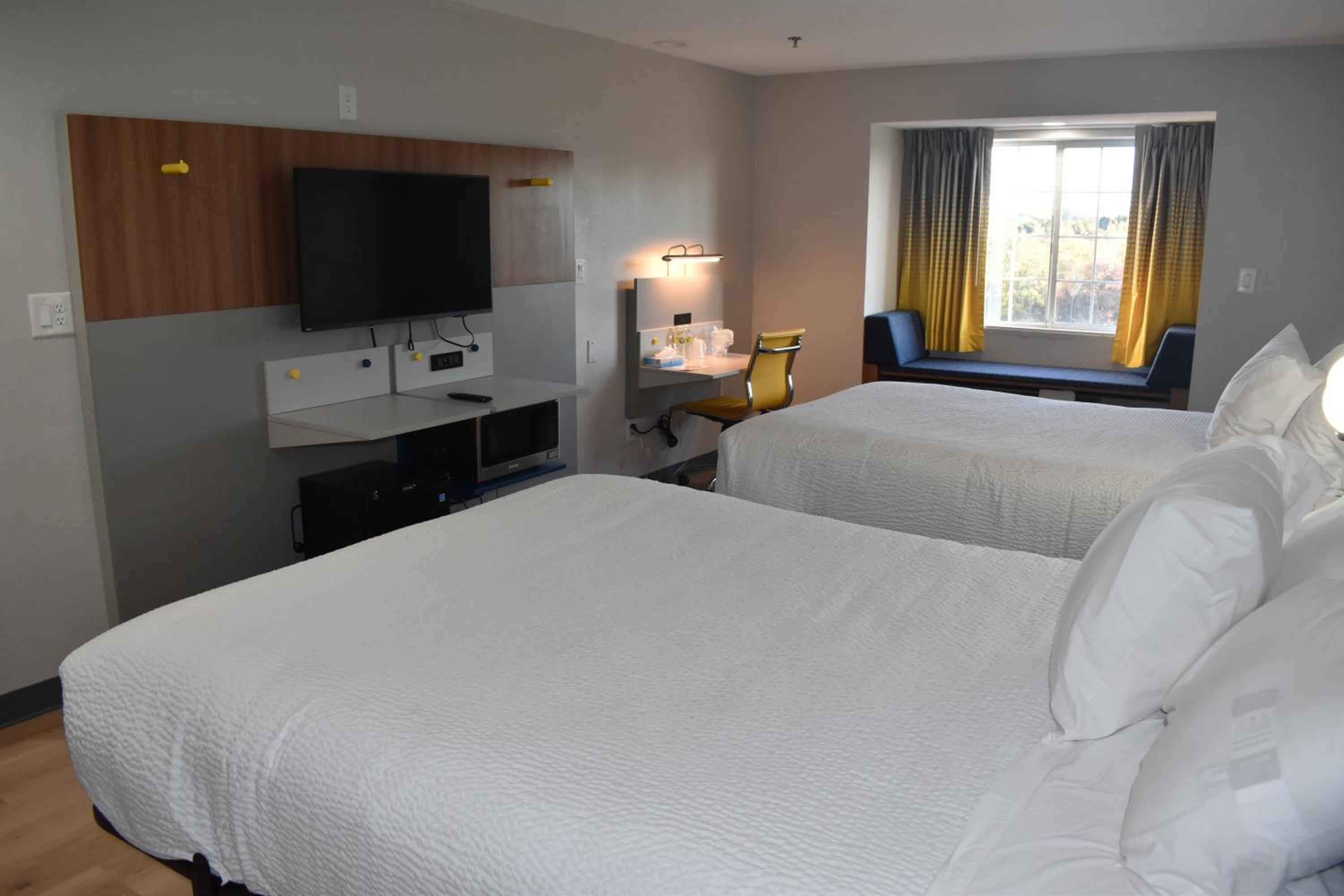 We stopped here with our dog late at night to break up a long drive home from vacation. When we got to our room we found it was gross. The floor was sticky, bed spread was covered in stains, the pillow and sink had hair on them and the room smelled. We went back to the lobby, the employee was walking around with no shoes on. We explained the condition of the room, she offered us to move or a refund. We chose the refund obviously. We received the refund for the room 2 weeks later, but are still fighting for the pet charge. The hotel refuses to give that refund. They are literally stealing our money and every time I call they are rude, nasty and lie. I have tried calling Wyndham but they say evening is handled by the hotels. I would never stay at microtel or Wyndham again.