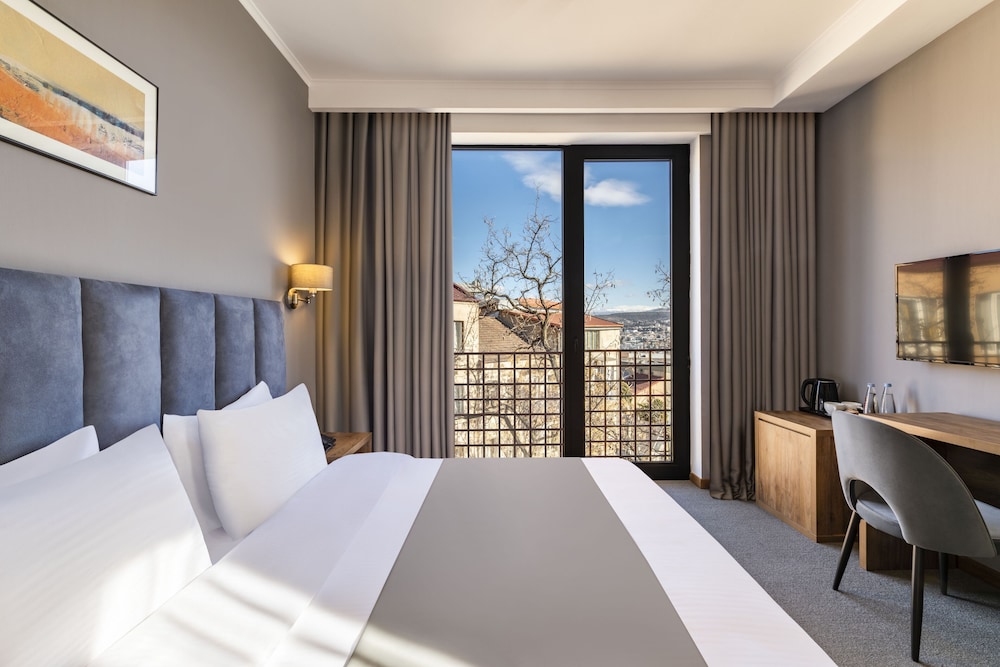 Hotel location is great, walkable to Rustaveli Avenue. Staff were very helpful and friendly. The hotel room could be improved: The bathroom had a damp smell, the curtains have come off on a few hooks so the curtains don’t block out the daylight/sunlight. Rooms look a bit dated and could do with an update.