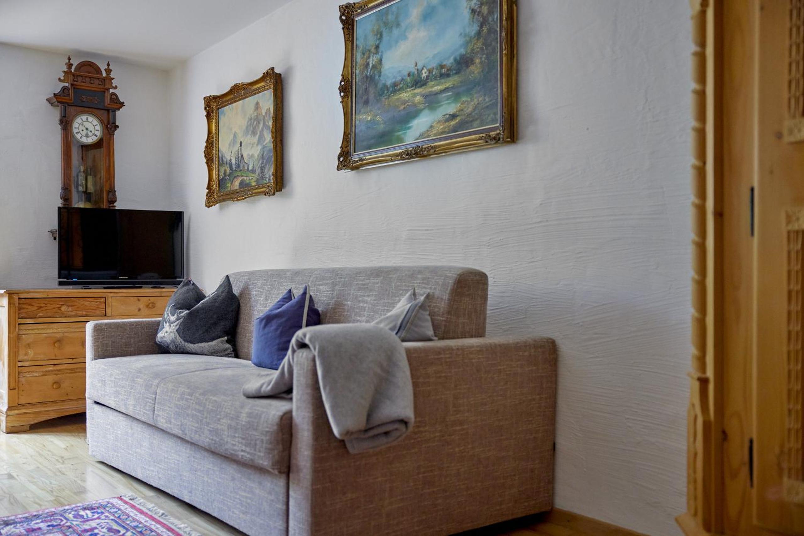 Gemütliche Wohnung mit allem was man braucht. Das Restaurant ein Stockwerk tiefer war super. Dass der PArkplatz direkt vor dem HAus ist auch. Es hat einen guten Skiraum.
