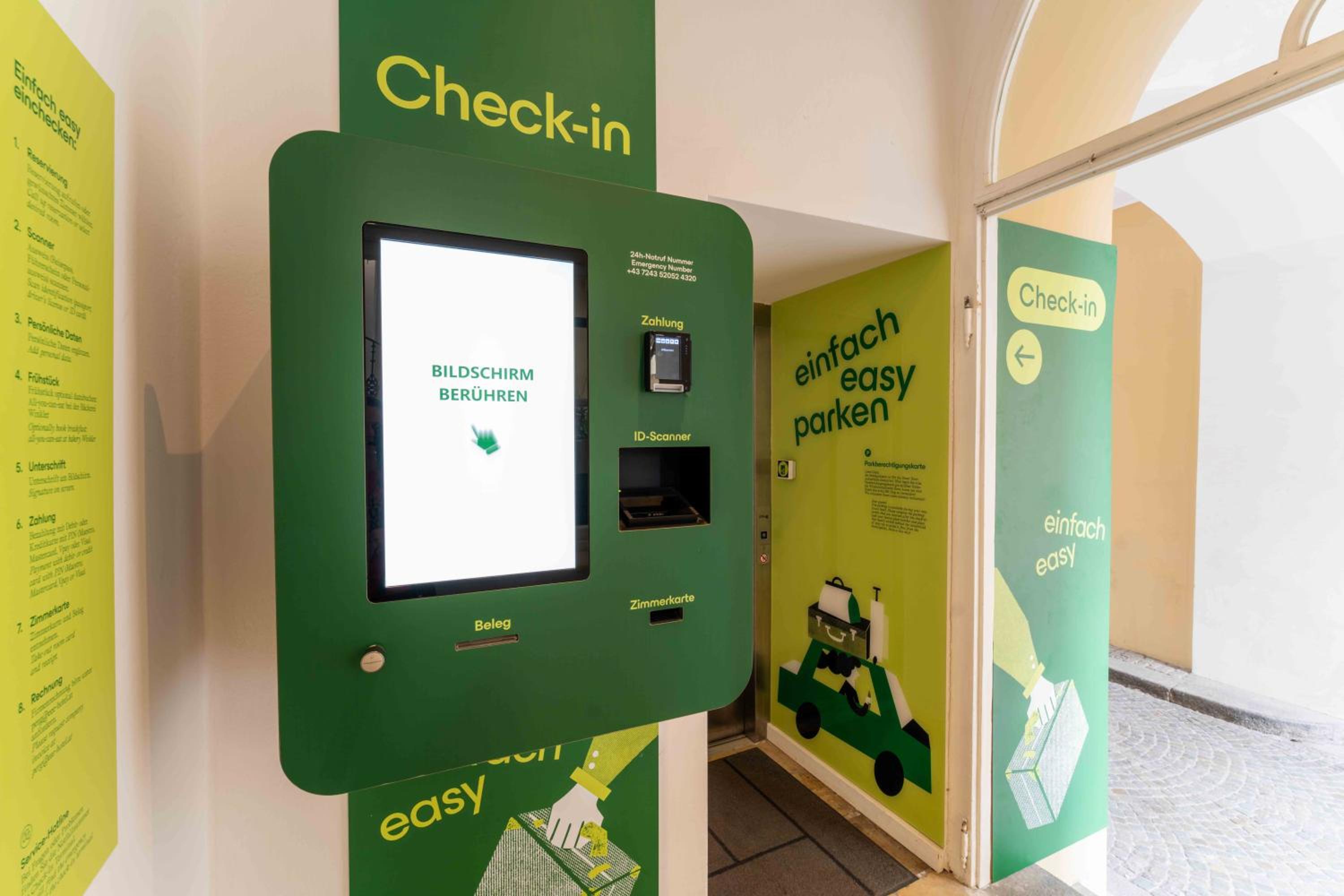 einchecksystem unübersichtlich u schwierig schlechtes licht beim automaten konnte erst nach anruf meine zimmerkarte erhalten keine info übers frühstück wenn ich gewusst hätte das das frühstück in der tollen bäckerei gegenüber ist hätte ich es genommen