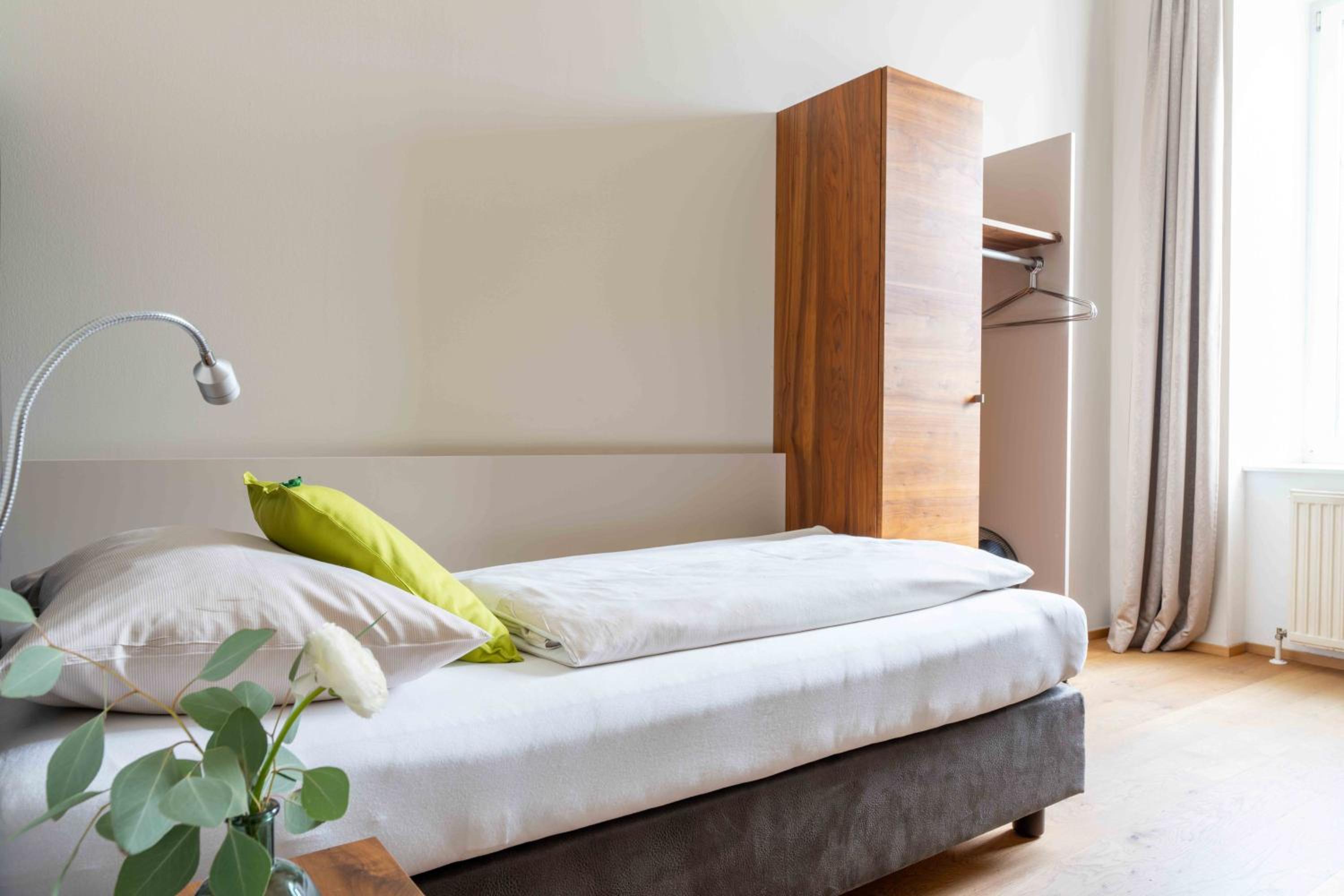 Gute Parkmöglichkeiten, einfacher und schneller check-inn, gutes Frühstück beim Bäcker gegenüber