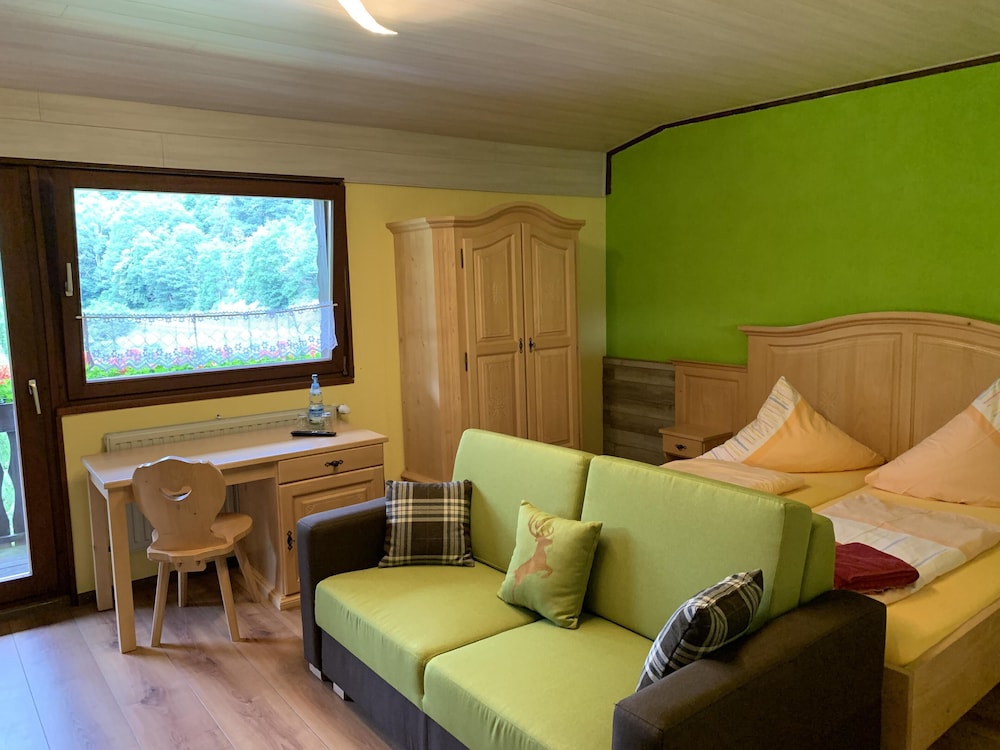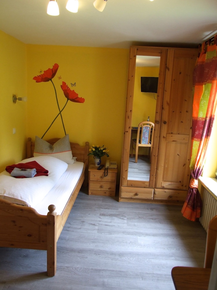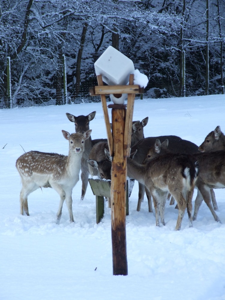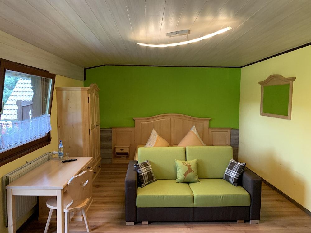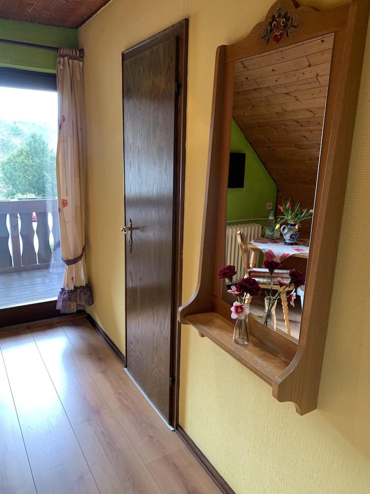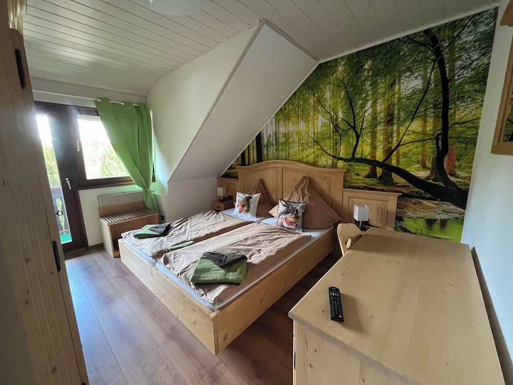 Nahe einer Heilquelle und inmitten schöner Wälder gelegen, konnten wir hier ein paar schöne Stunden erleben. Ein schönes Zimmer mit tollem Blick, freundliches Personal und die vielen Rehe am Haus ließen uns eine schöne Zeit erleben. Vielen Dank auch noch einmal an den Senior für das Frühstück und die tollen Gespräche.