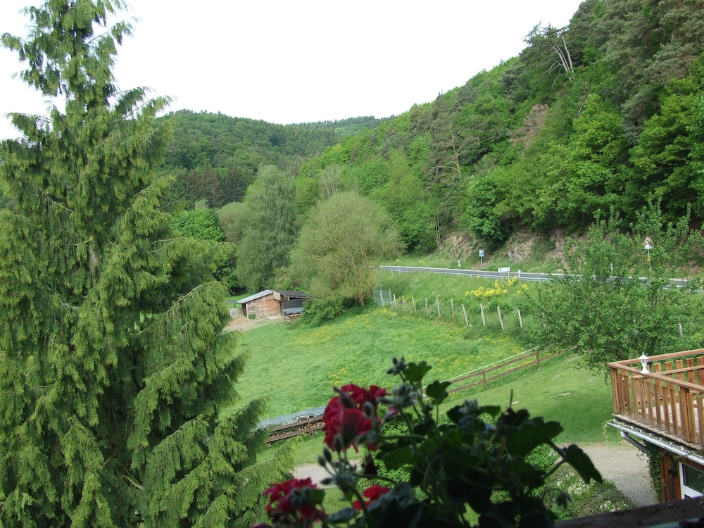 Take in breathtaking views from the terrace of Hotel Forsthaus in Volkesfeld, providing the perfect backdrop for relaxation and tranquility.