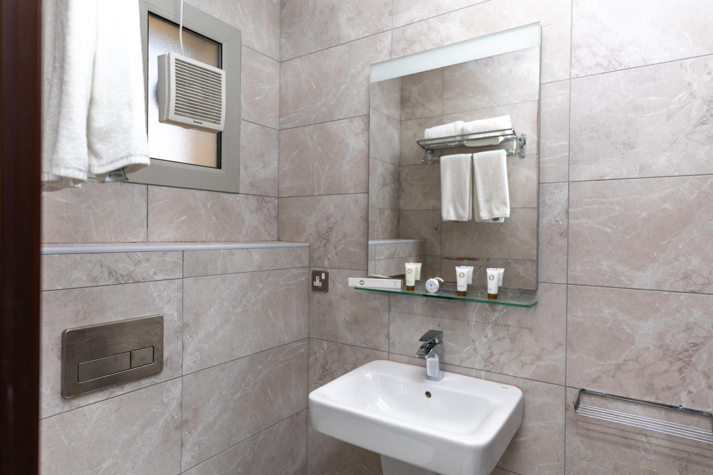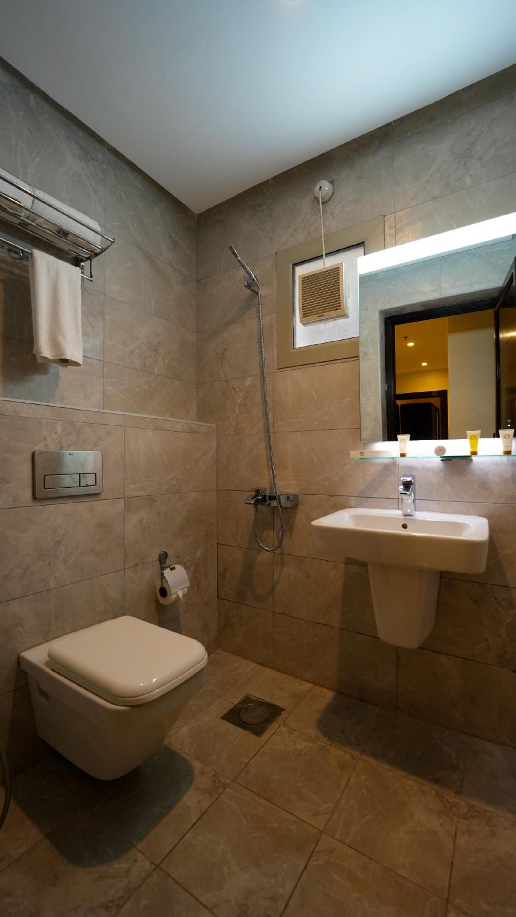 الاضاءة في الحمام ضعيفة كذلك الحمام الثاني المشترك لايوجد فيه دش استحمام وكذلك الغلاية الكهربائية يوجد بها تسريب
