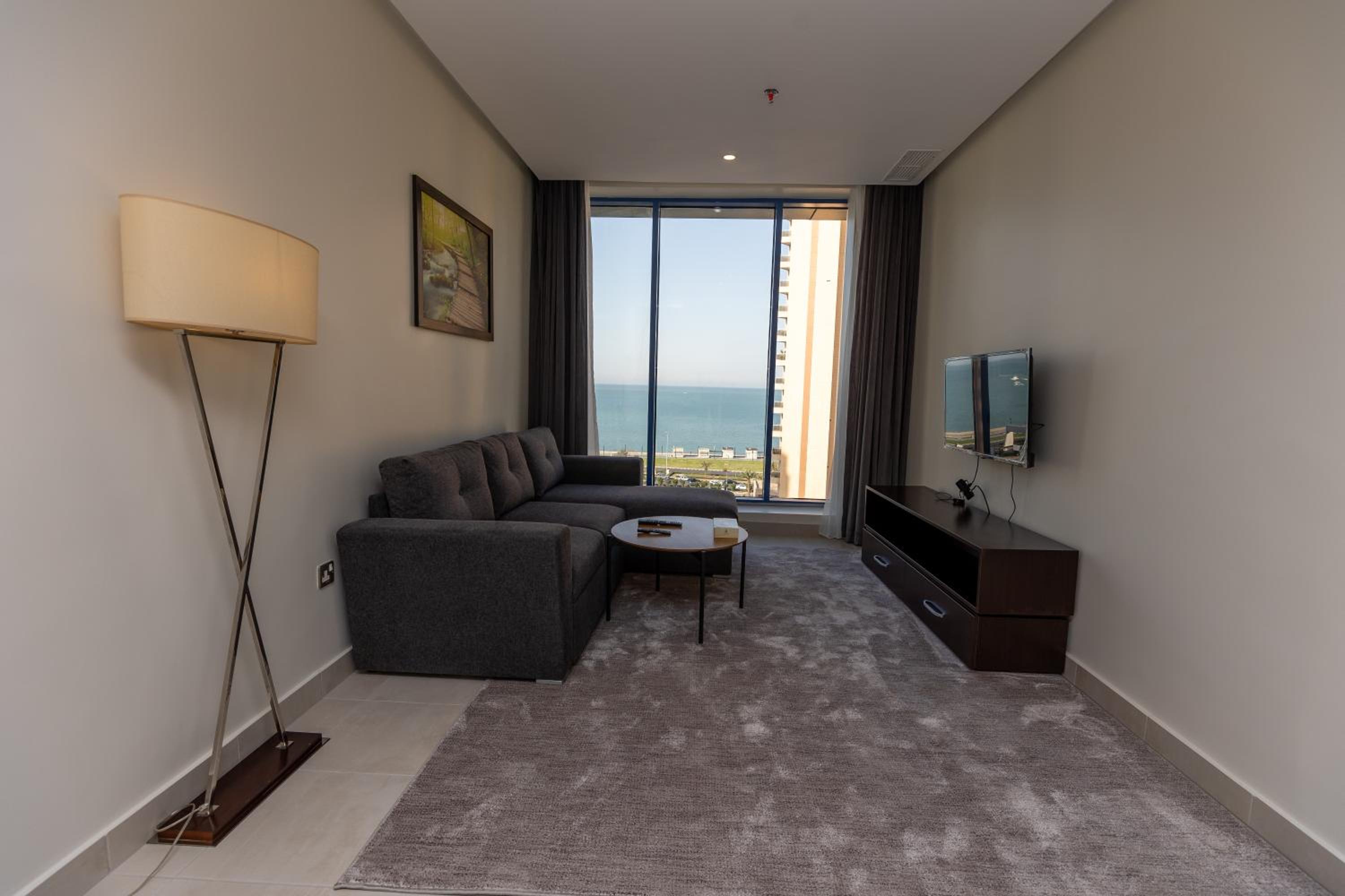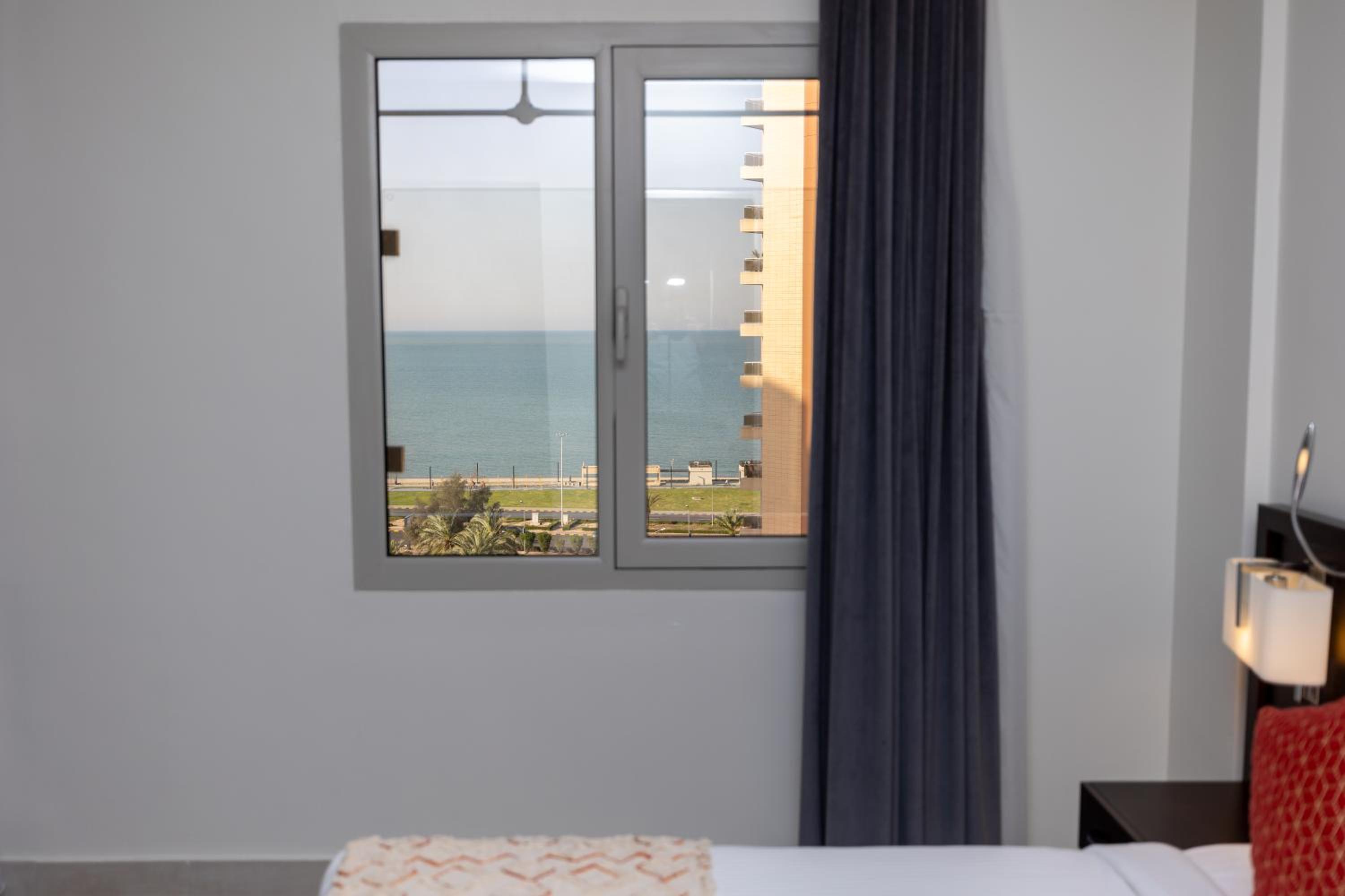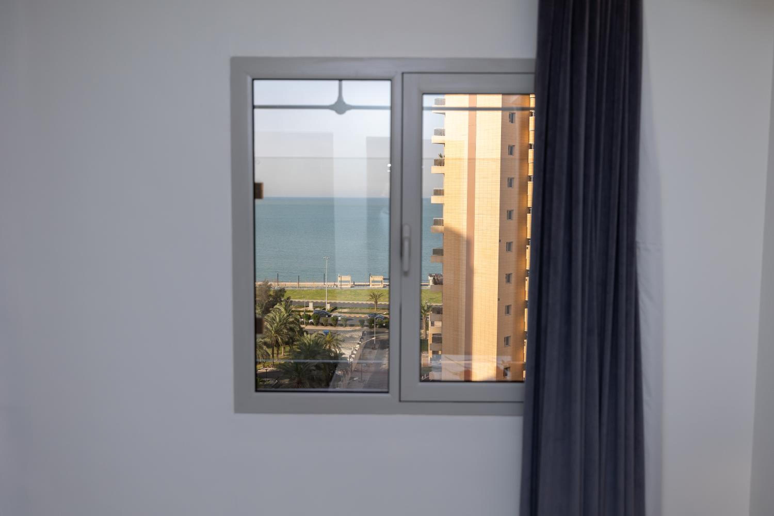 الموقع في مكان هادئ قريب من الشاطئ وابراج الكويت