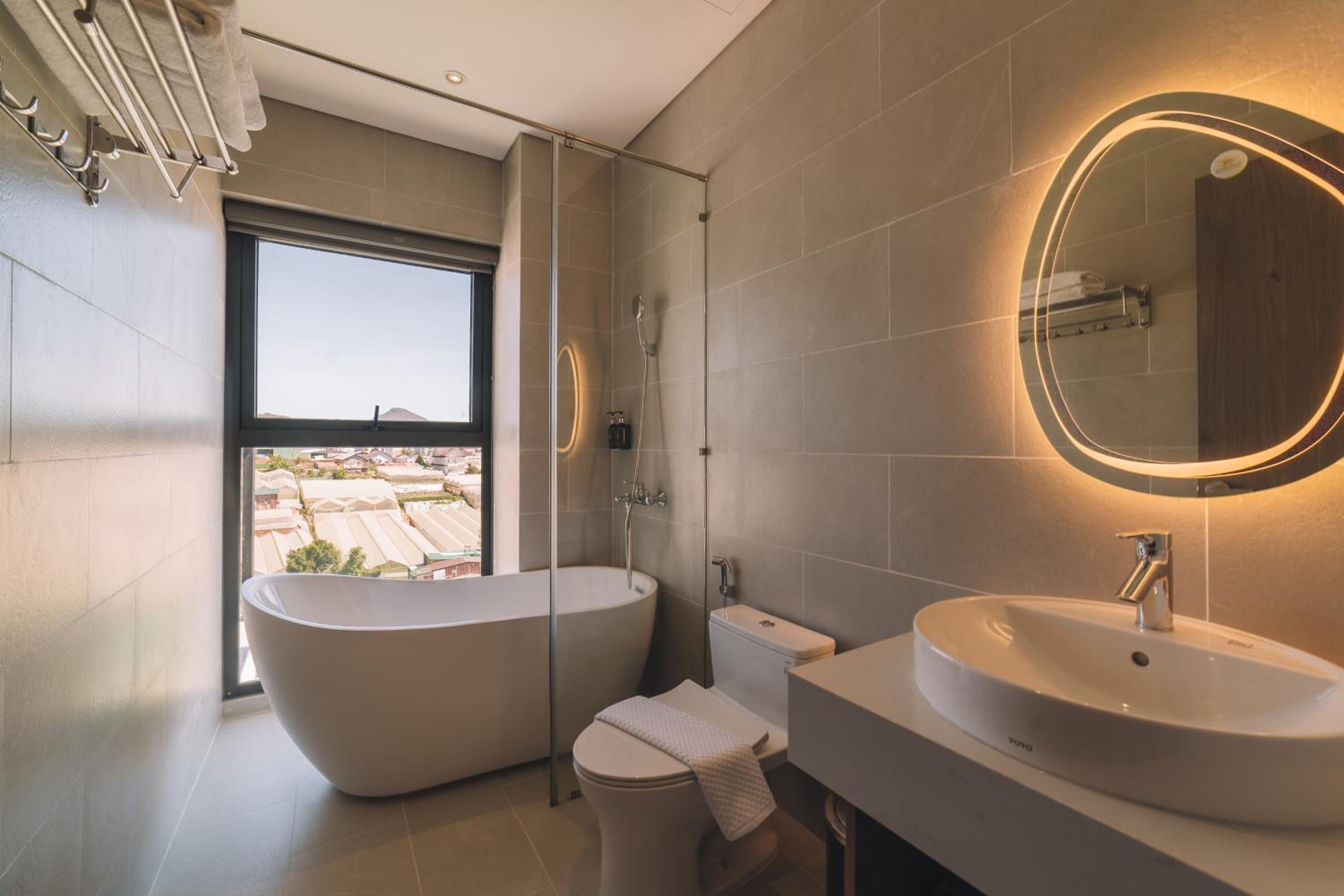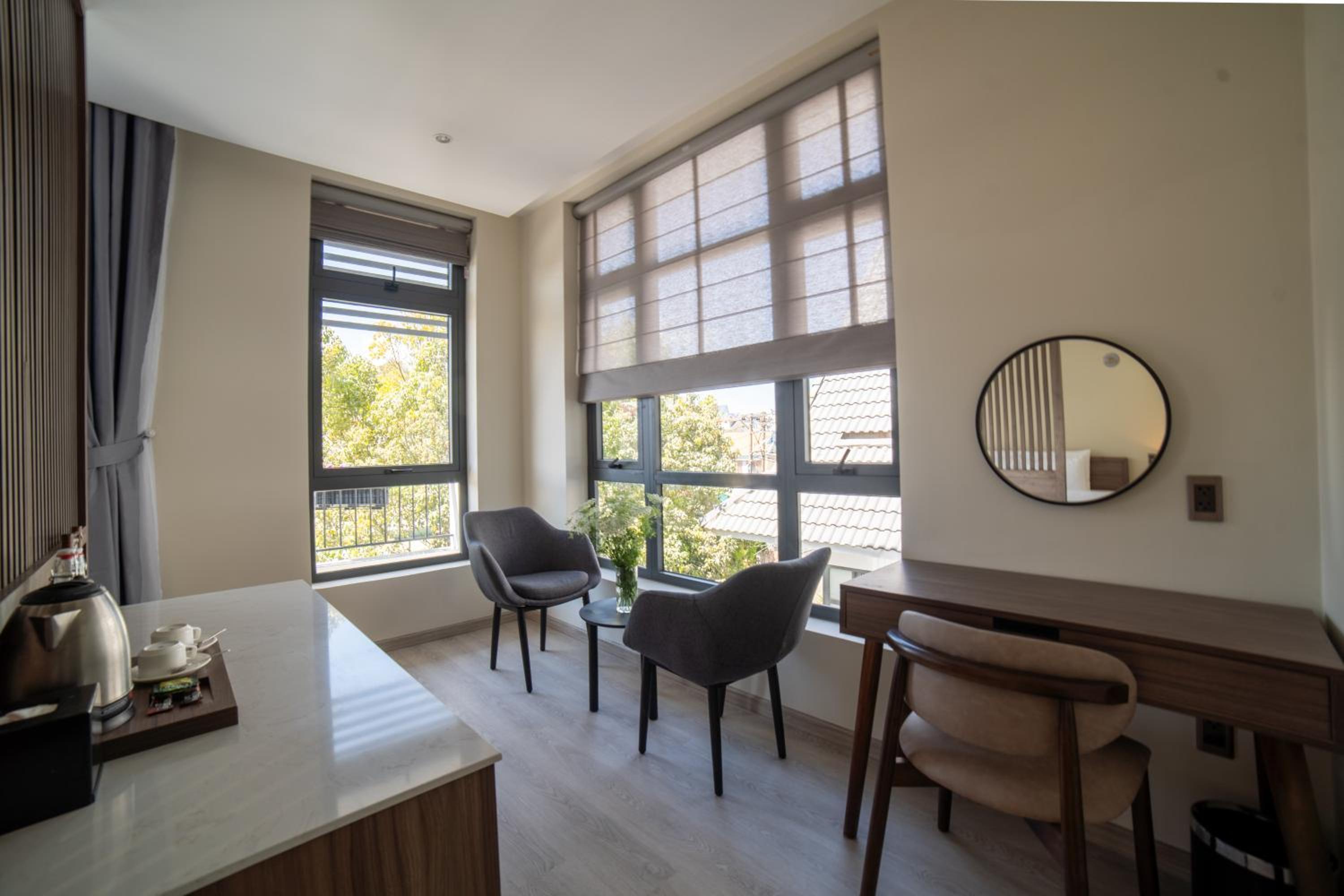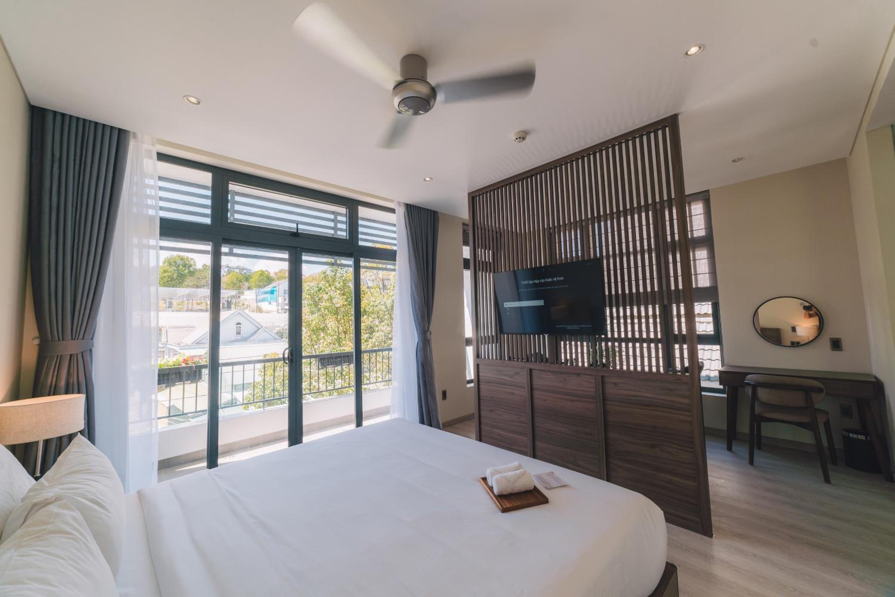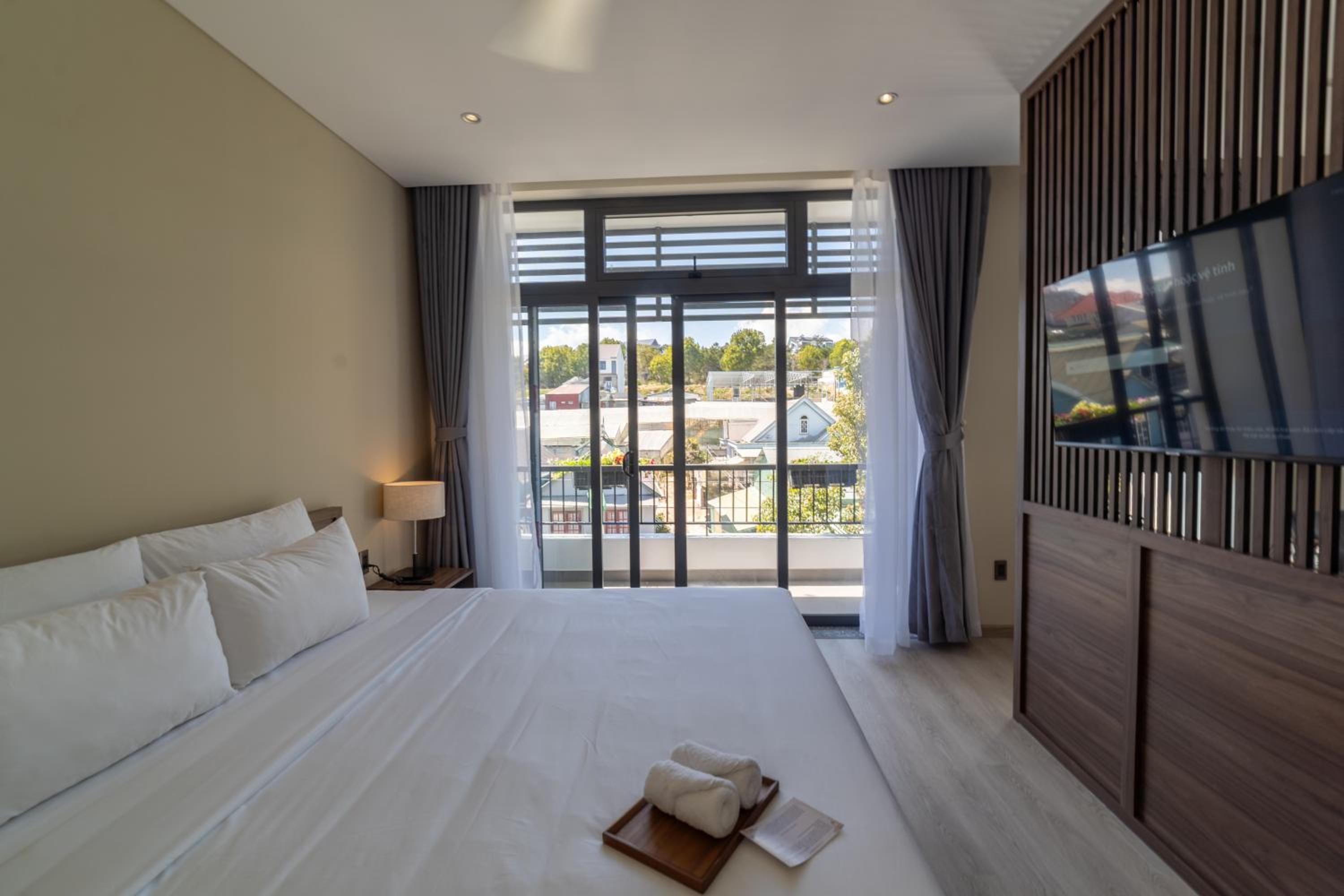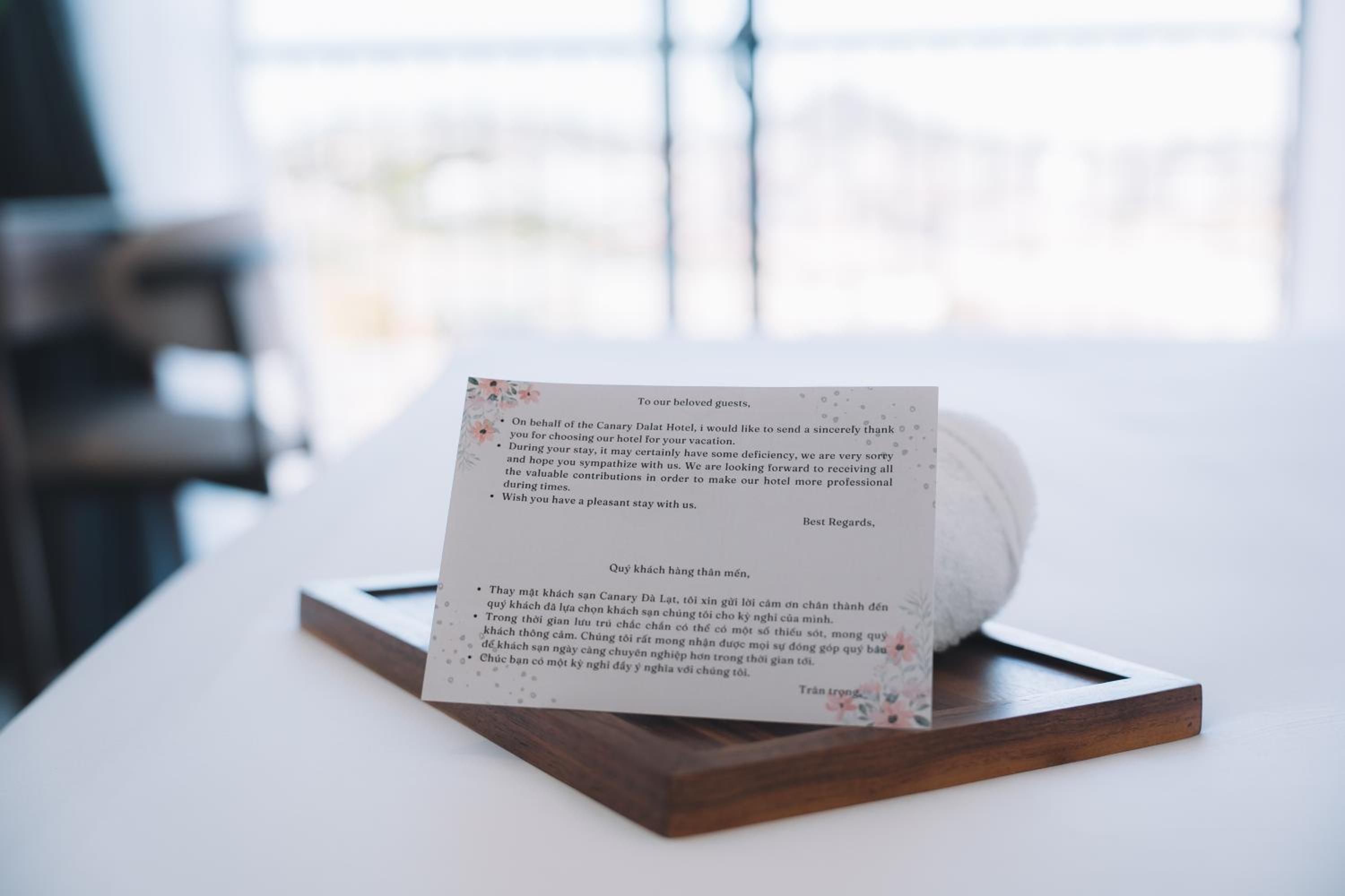 This was a beautiful hotel. The building has so many precious embellishments like flowers and plants everywhere and a koi pond. The walkways are beautiful. The rooms are very modern and updated. The views of Dalat are fabulous. The breakfast buffet was perfect for our family of 5. We loved our stay here. The staff were so kind and helpful. This hotel is off a quiet street in Dalat. What a wonderful experience for the whole family. Thanks Canary Hotel!!