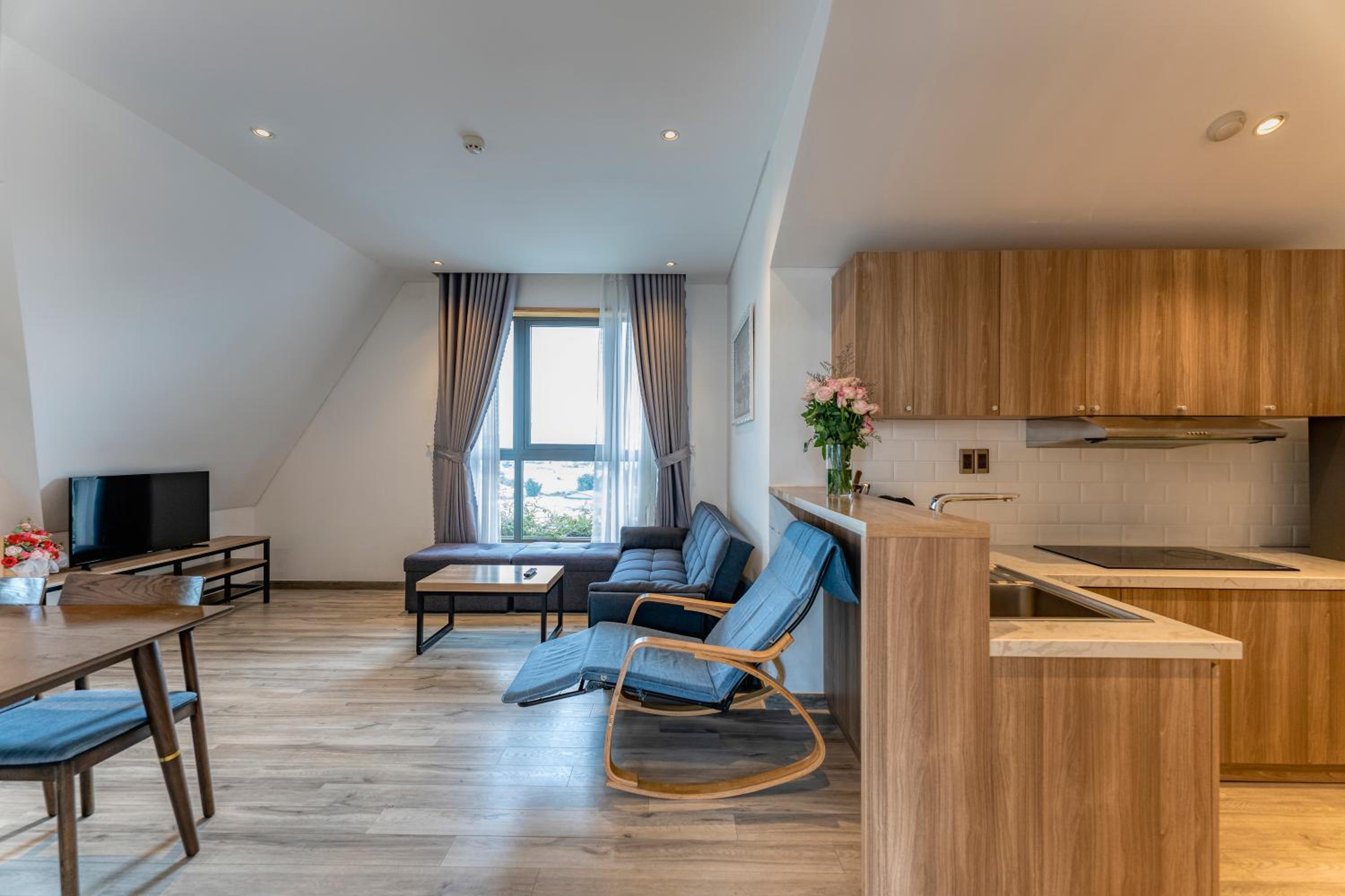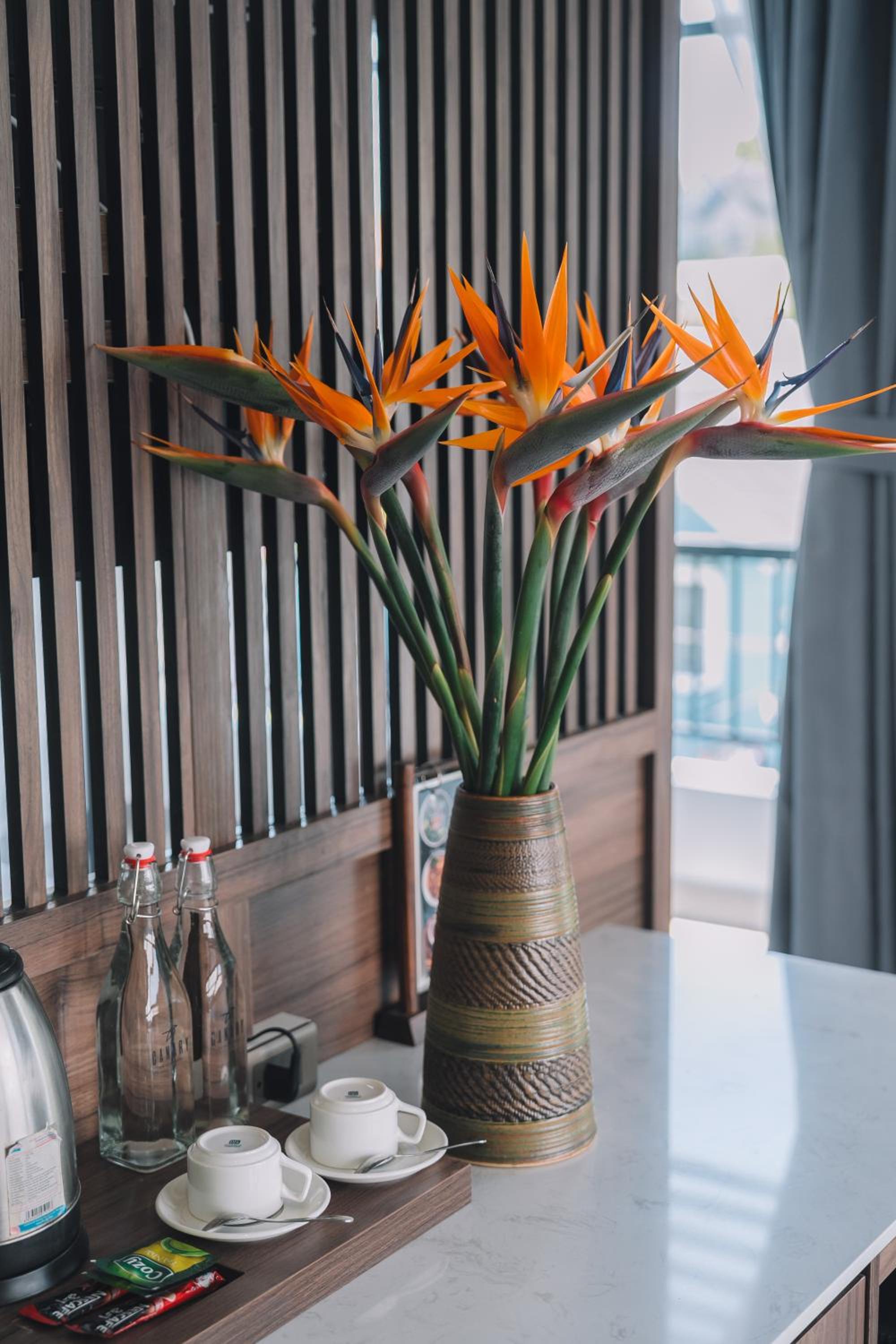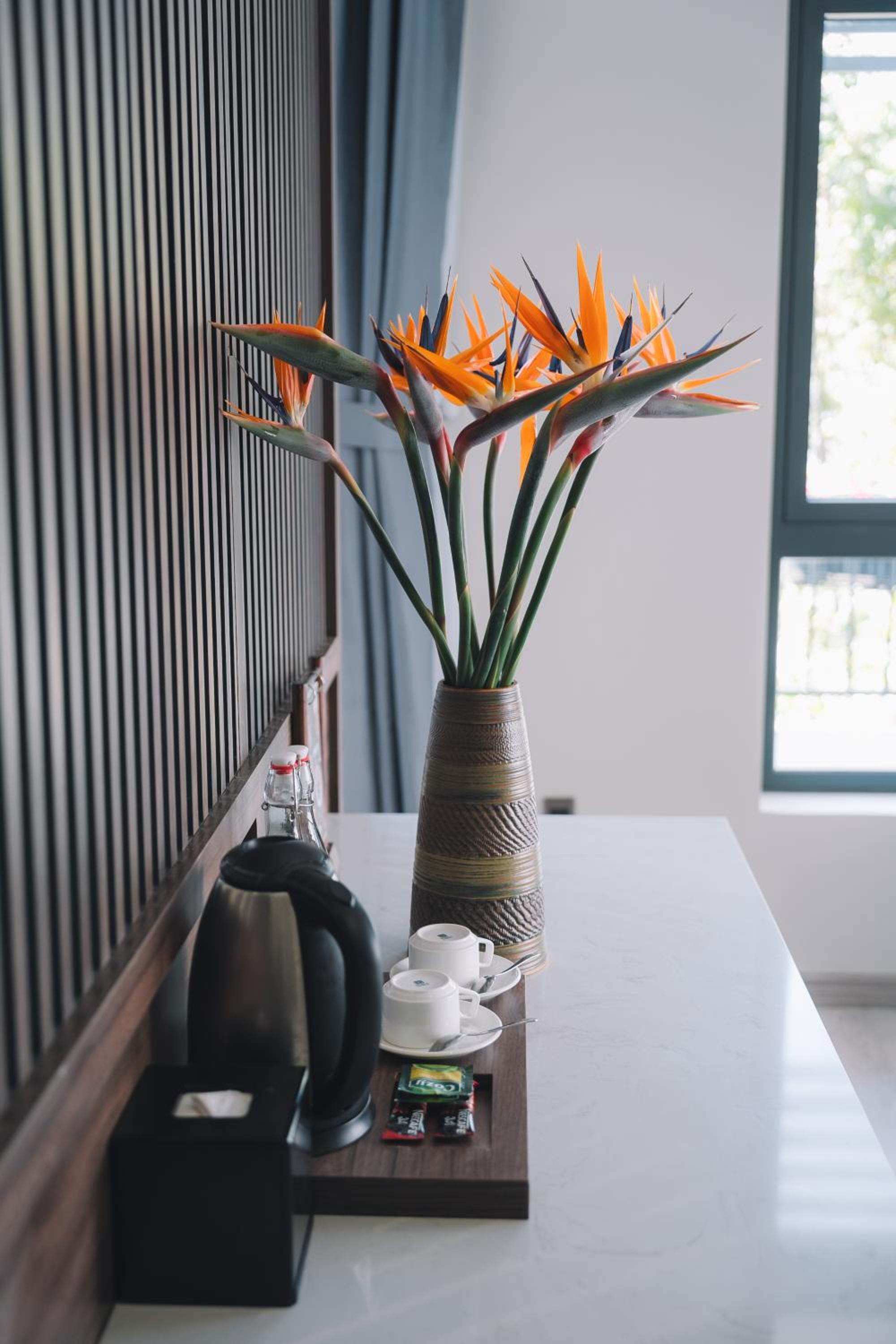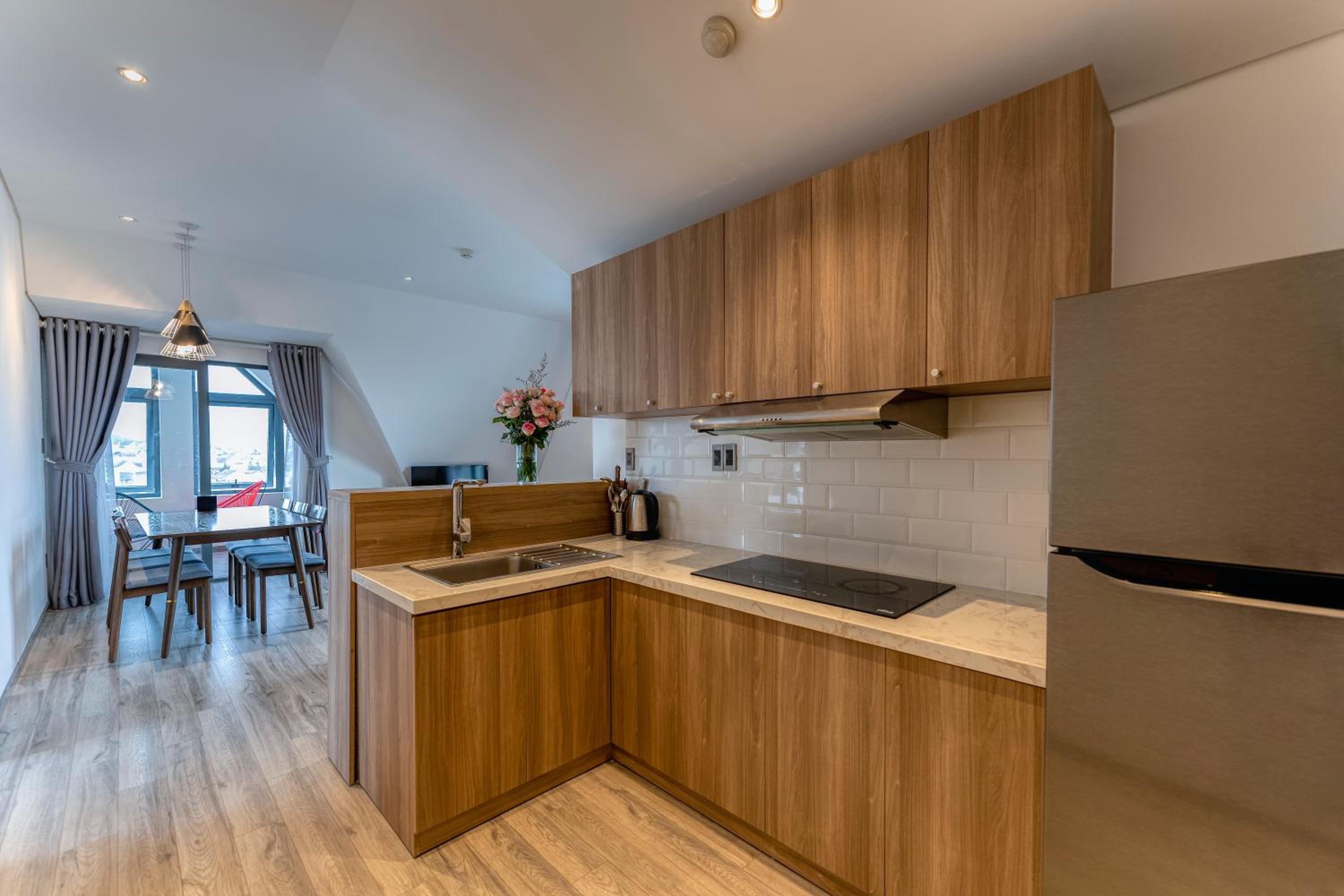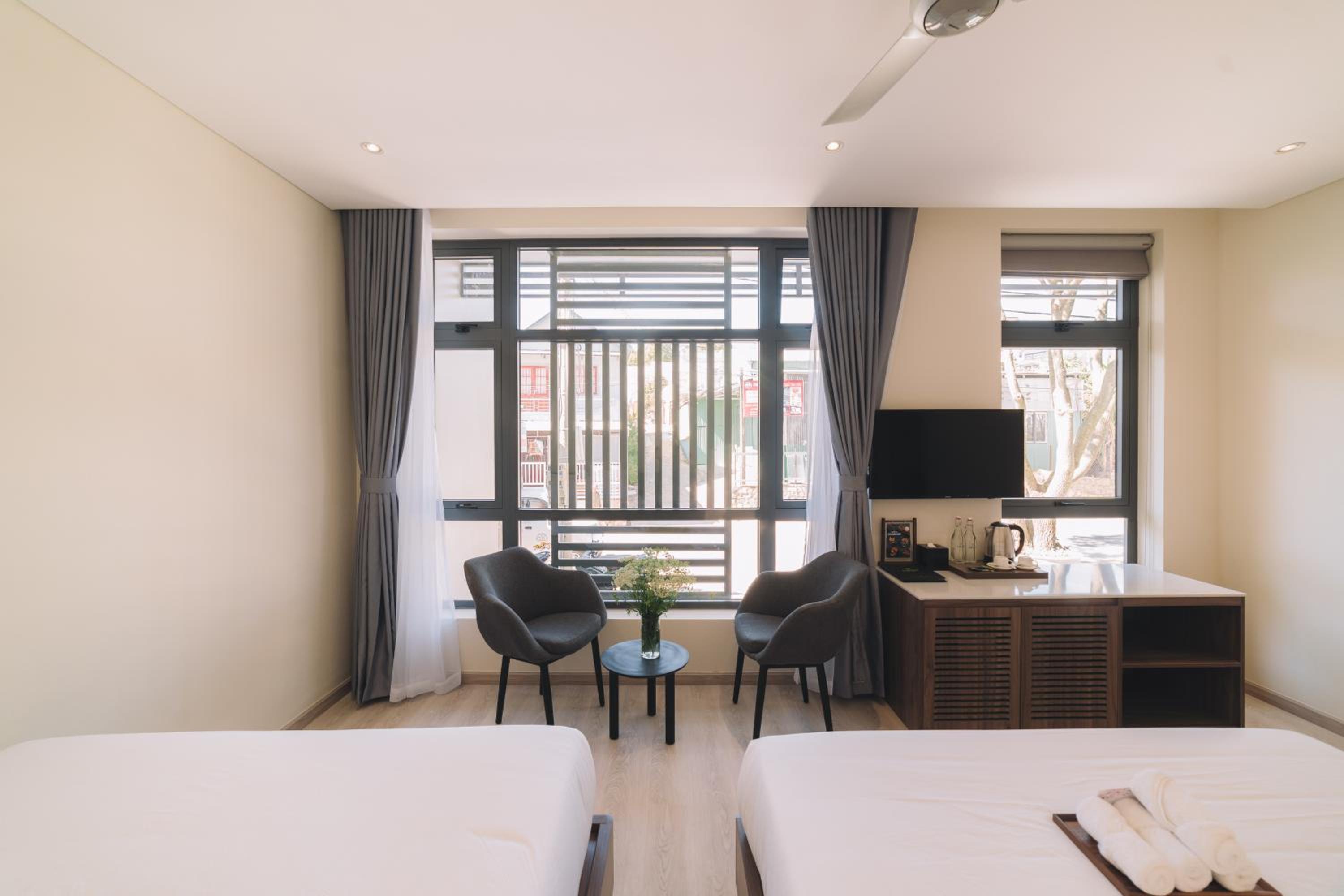 This was a beautiful hotel. The building has so many precious embellishments like flowers and plants everywhere and a koi pond. The walkways are beautiful. The rooms are very modern and updated. The views of Dalat are fabulous. The breakfast buffet was perfect for our family of 5. We loved our stay here. The staff were so kind and helpful. This hotel is off a quiet street in Dalat. What a wonderful experience for the whole family. Thanks Canary Hotel!!