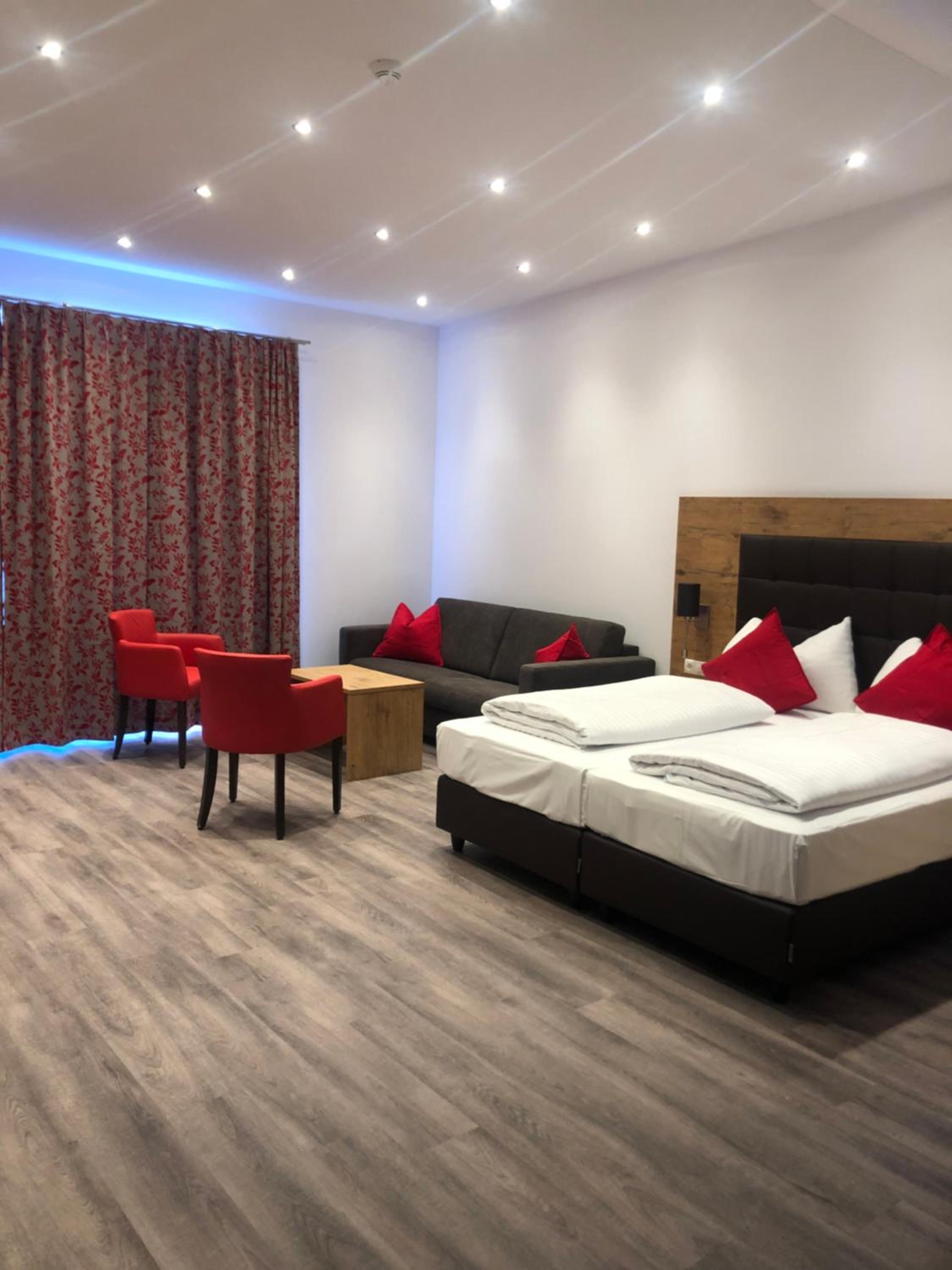 Ystävällinen palvelu, siisti huone ja tilava kylpyhuone. Hotellin pihalla autopaikkoja. Tunnelmallinen ravintola, jossa söimme hyvät schnitzelit ja omenastruudelit. Hotellissa on myös baari. Aamiaistuotteiden valikoima oli riittävä ja tuotteet laadukkaita.