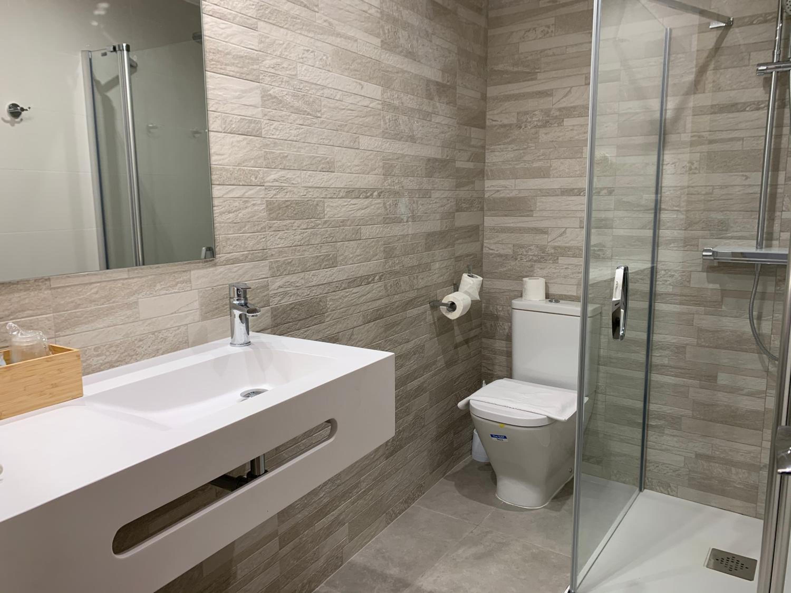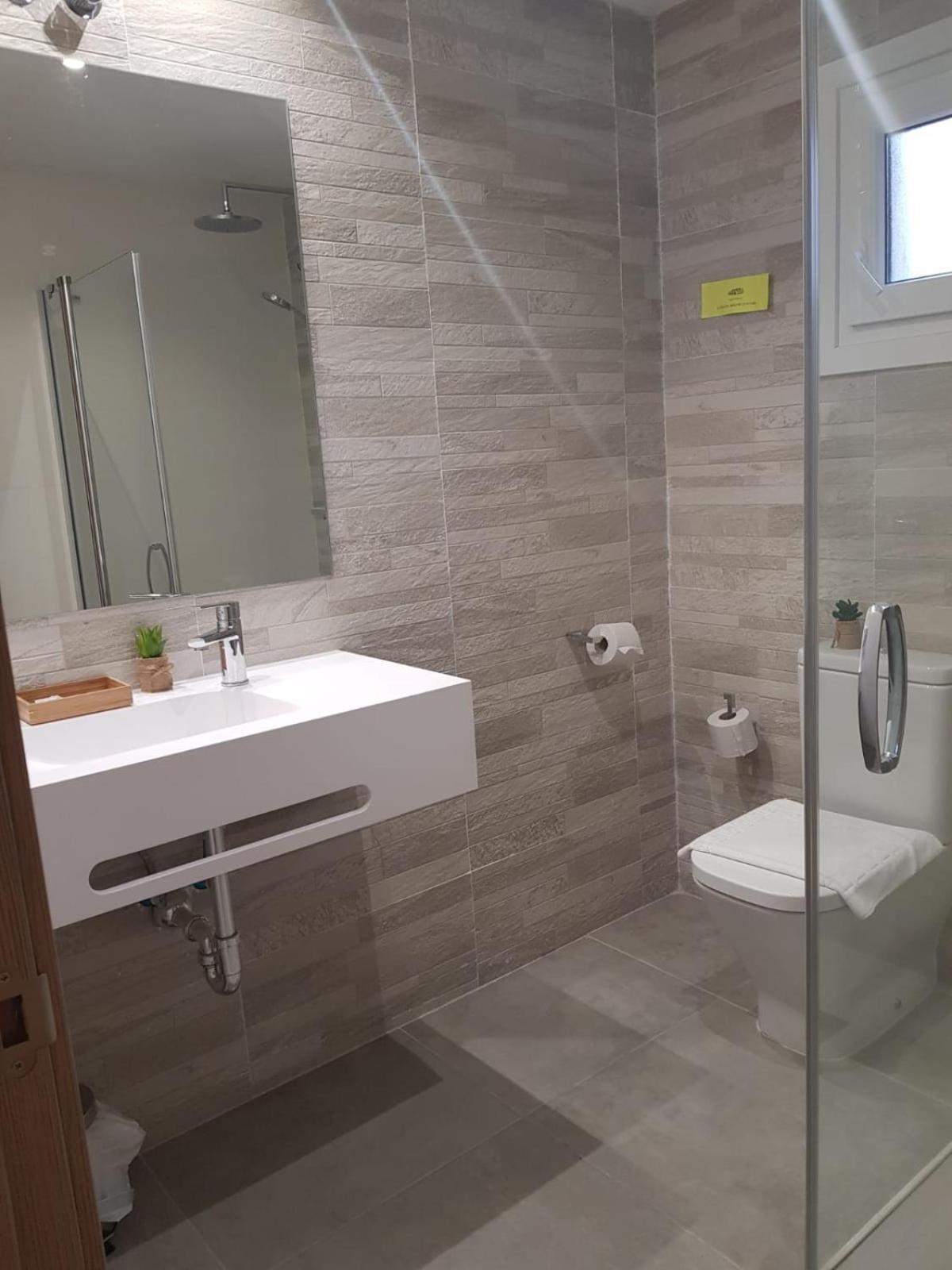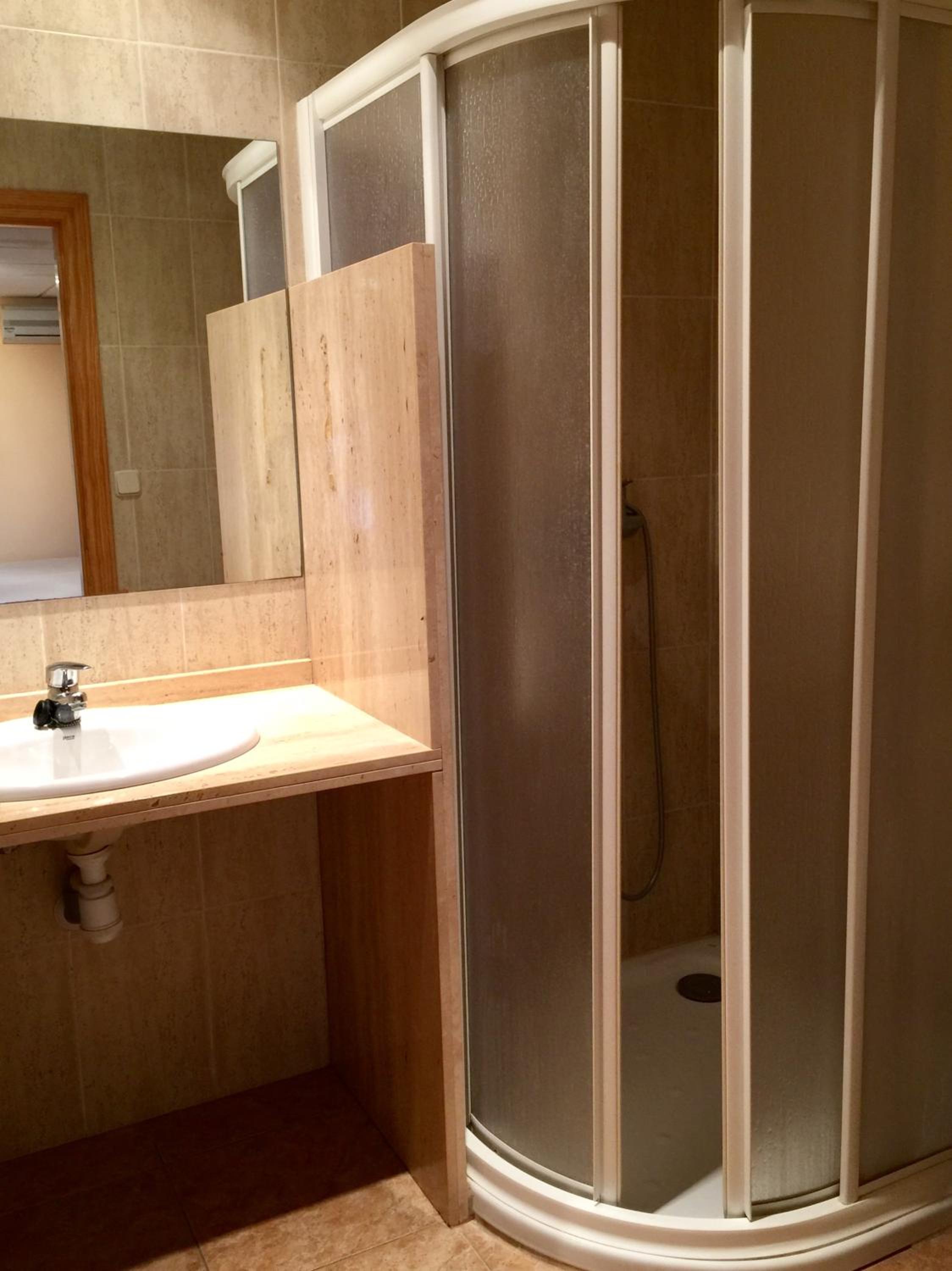 En la ducha se salía el agua en el suelo, creo que no tiene suficiente desnivel.