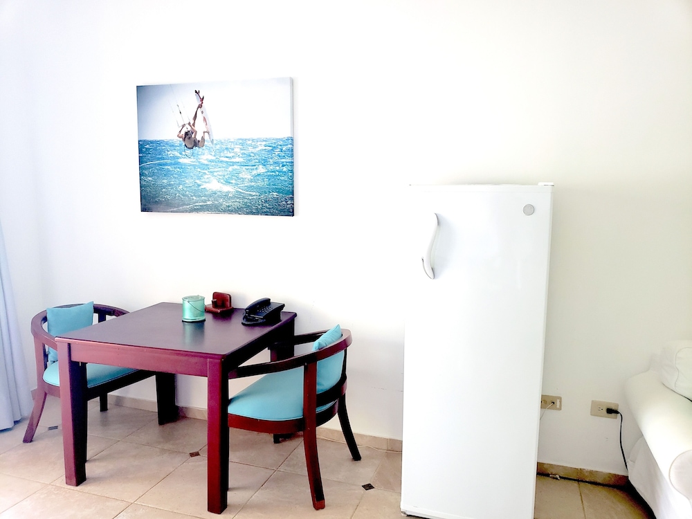 For a kitesurfer, this location is ideal. Ground floor, right at the beach, with a sheltered patio. AC, fridge, and stove were all working, the unit has a safe (but in any case the setting feels very secure...I left my gear outside day and night with no worries). Internet is working most of the time (about as good as it gets in DR), which also enables Netflix on the TV. The photo with this review is looking out of the sliding door across the patio and out to the beach. I would return to this unit for sure.
