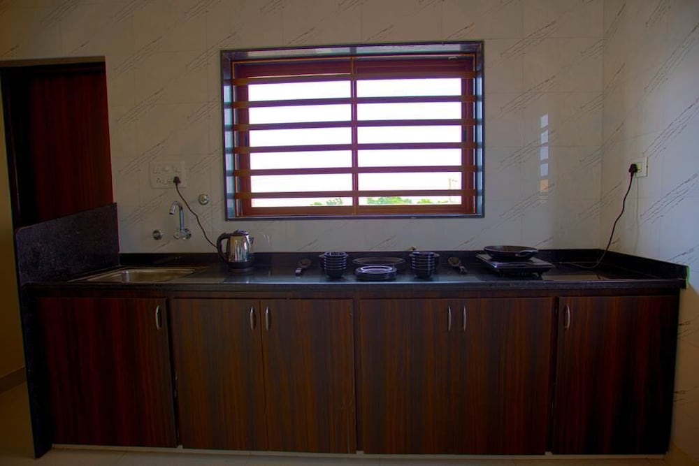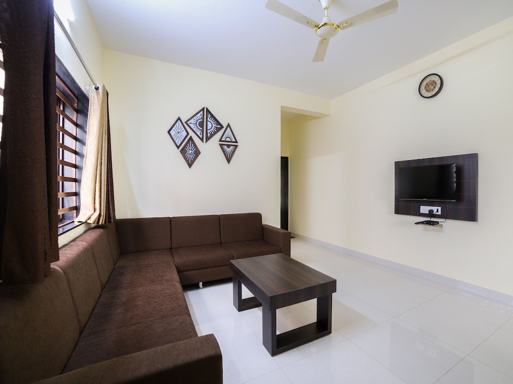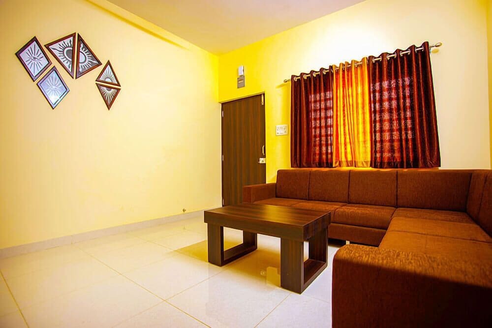 I booked in here as it was supposed to be close to the train station (before I had booked a car and driver so the reason was no longer balid), however it was not as close as posted on the site. I believe a road might have been closed off, so a vehicle is necessary to get there, in the middle of a residential area. There was a kitchen but no cutlery or other, breakfast was included which was Indian with toast and it was fine. The sofa was hard, the place seemed to be furnished as cheaply as possible. I wouldn't stay there again nor recommend it. Price of Rs.2520 was about right for this property.