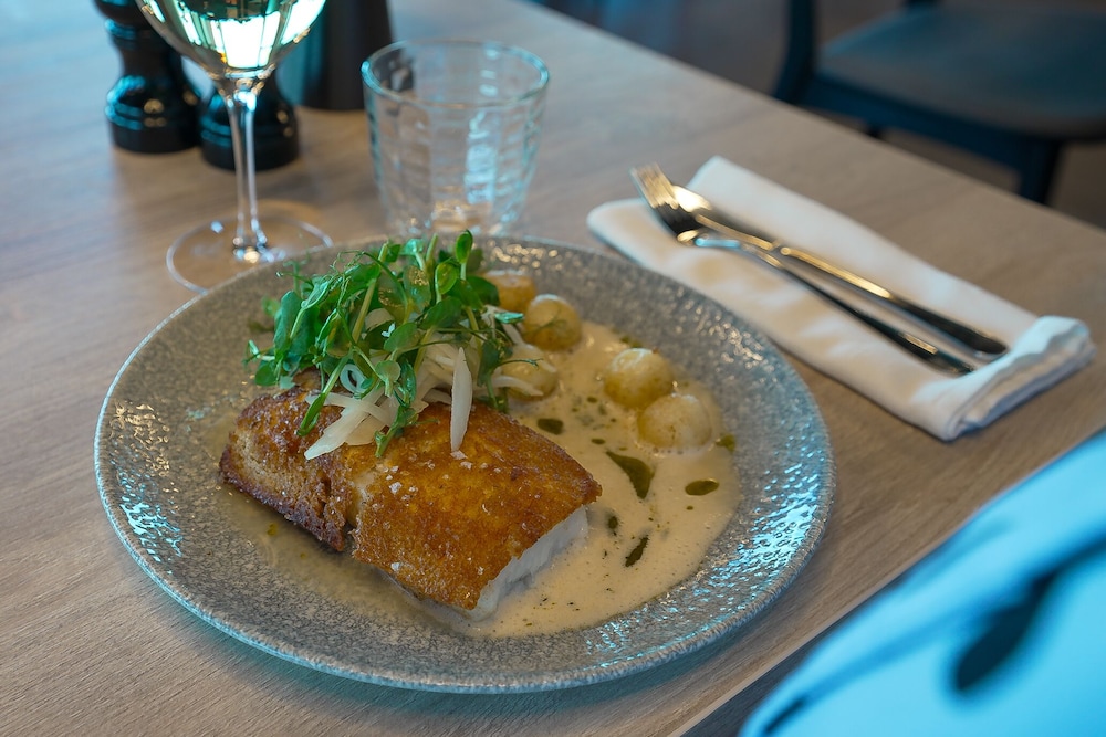 We are very happy with our stay in Hotel Hvide Falk. The hotel is in a very convenient location for activities. It is right next to Albatros Arctic Circle which provides lots of tours in the area. It is also 10 mins walk to yellow trail trailhead. Our room is facing the ocean and we enjoyed to see the view and whales in the bay. The hotel restaurant is top notch. Very well prepared food with appropriate potion. Front desk was very helpful with questions and calling taxis. There is also a grocery store in a few minutes walk distance.