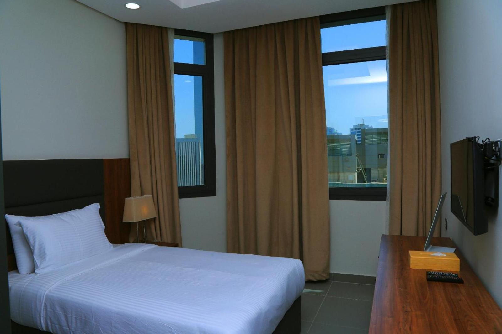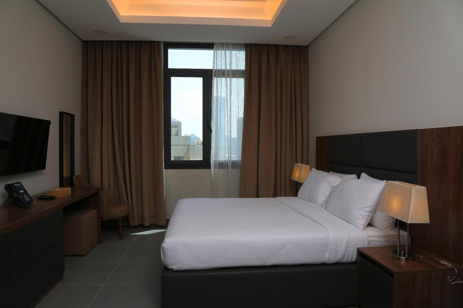 Our friendly staff, fluent in both Arabic and English, are ready to assist you in planning your perfect stay. Relax in rooms equipped with modern amenities, including flat-screen TVs, kitchens, and some offering breathtaking city views.