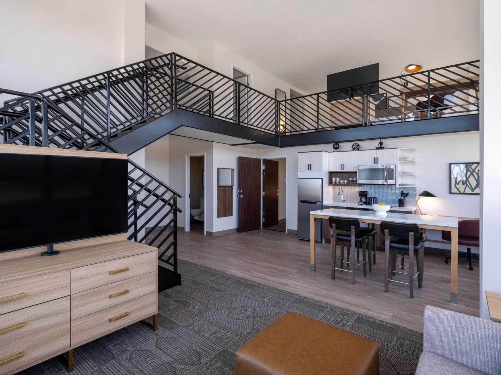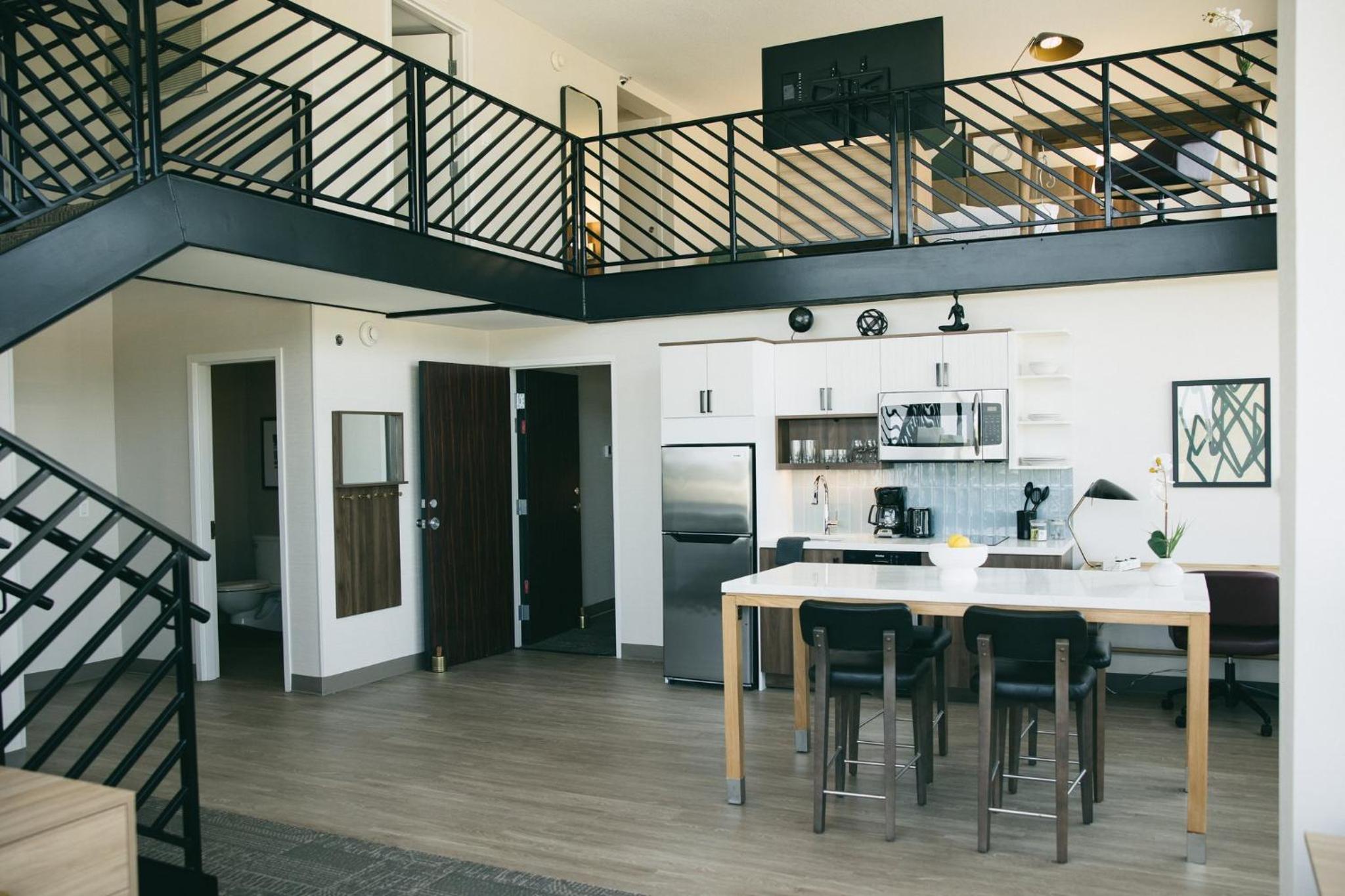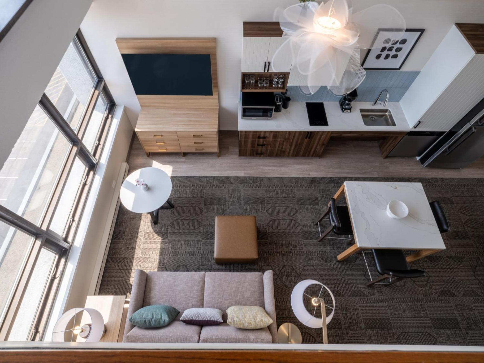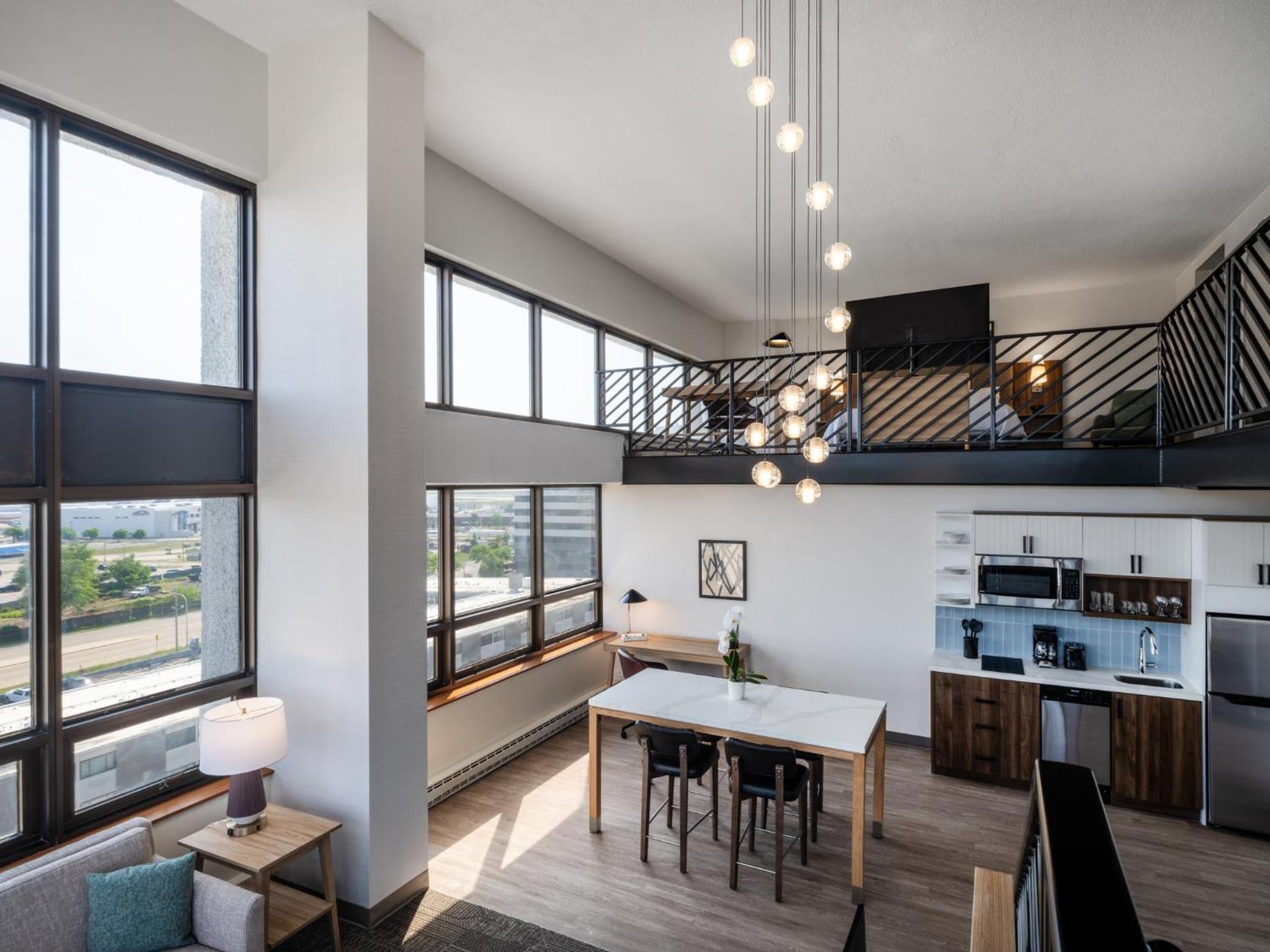 Our king studio was very clean with a comfortable bed, pillows and nice linens. The kitchenette was clean and useful. Just wish there had been a kettle but kind staff at front desk got hot water from the coffee bar for me. Only a shower, which was fine with us, but if you want a bathtub make sure one is included in description. Did not have the included breakfast due to early flight. Walls are lovely soundproofed but windows are old. Fan on AC worked great to cover road noise. Staff at front desk superlative and helpful. The ORD MMF with the rental cars is a 15 min walk from hotel. Very useful!