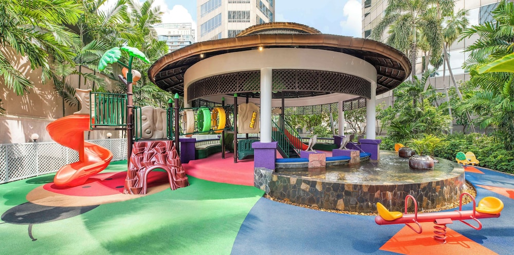 Friendly service, excellent breakfast with Asian/European/American options, clean and spacious rooms, the pool area is an oasis incl playground, tennis court, garden, shopping and eating facilities around the corner, free hotel shuttle to BTS station Chit