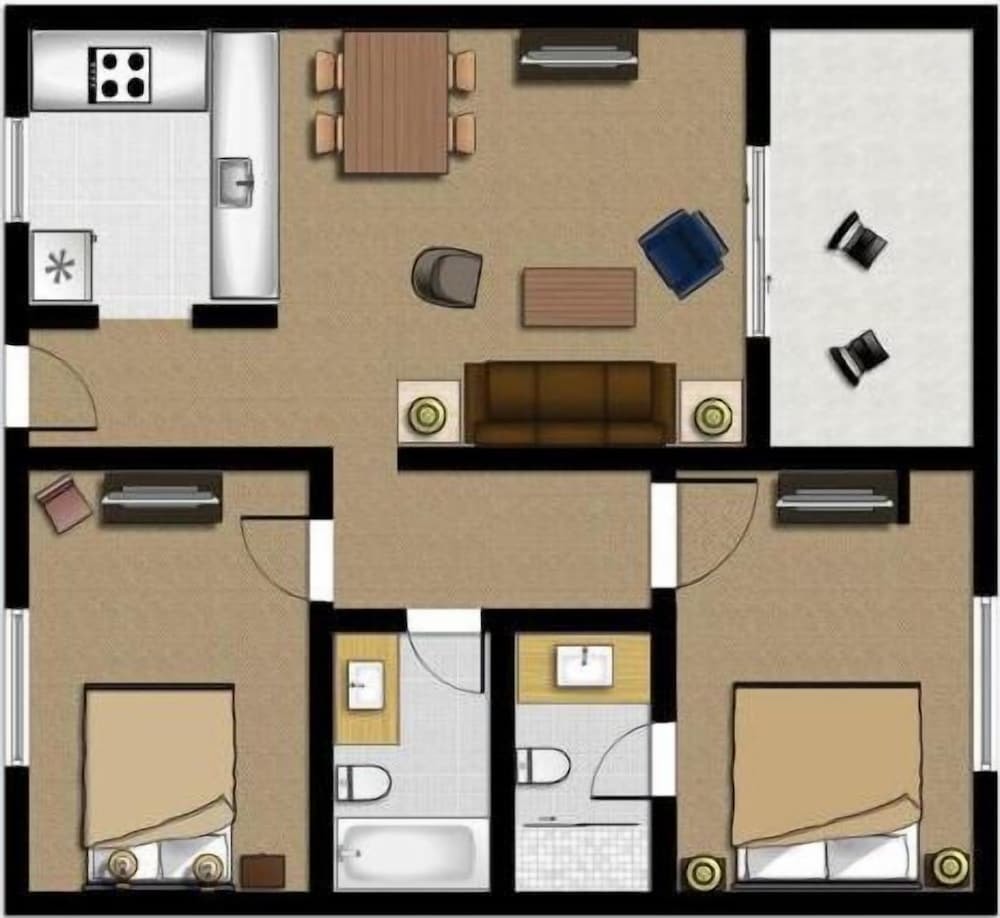 Each of our 60 spacious guestrooms features kitchens with refrigerators and ovens, private patios, and 55-inch flat-screen televisions with satellite programming. Enjoy complimentary wireless internet access throughout the property, ensuring you stay connected.