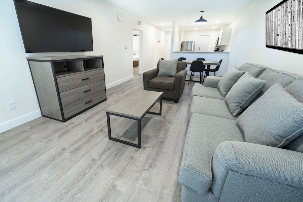This hotel looks like it’s had a beautiful remodel. The hotel was very nice and the lobby was a perfect gathering spot. The staff was very friendly. Our room was awesome!!! We had a two bedroom two bathroom with a full kitchen, dining area and living room area. It also had a cute back patio! I wish I could have stayed longer!