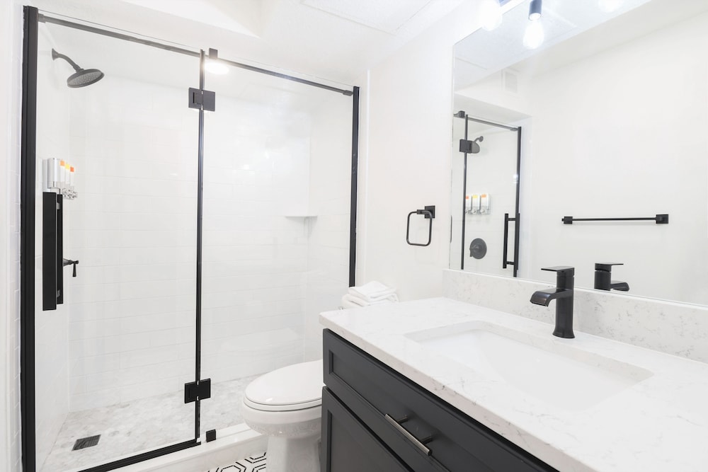 amazing renovation of old motel. issues with lighting, floor needed mopping from heavy dust, but otherwise clean. main issue was that the AC unit/ heat pump was located directly (within 1.5 feet) of you head when you sleep. unit should have been located away from head of bed. it was unusable at night and there were no operable windows in the bedroom.