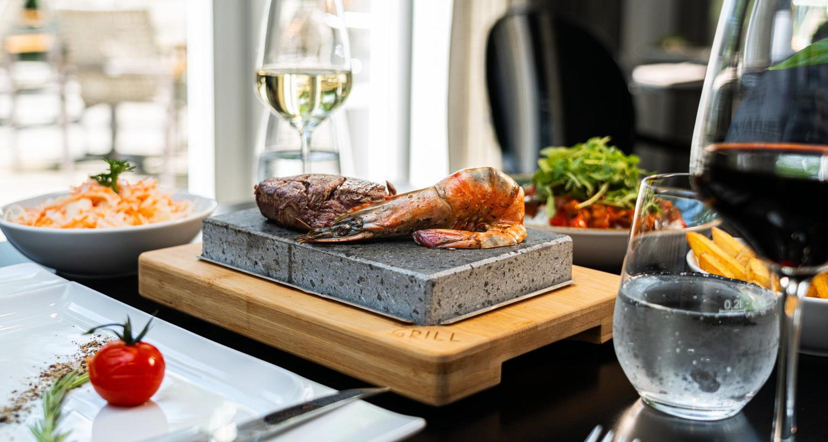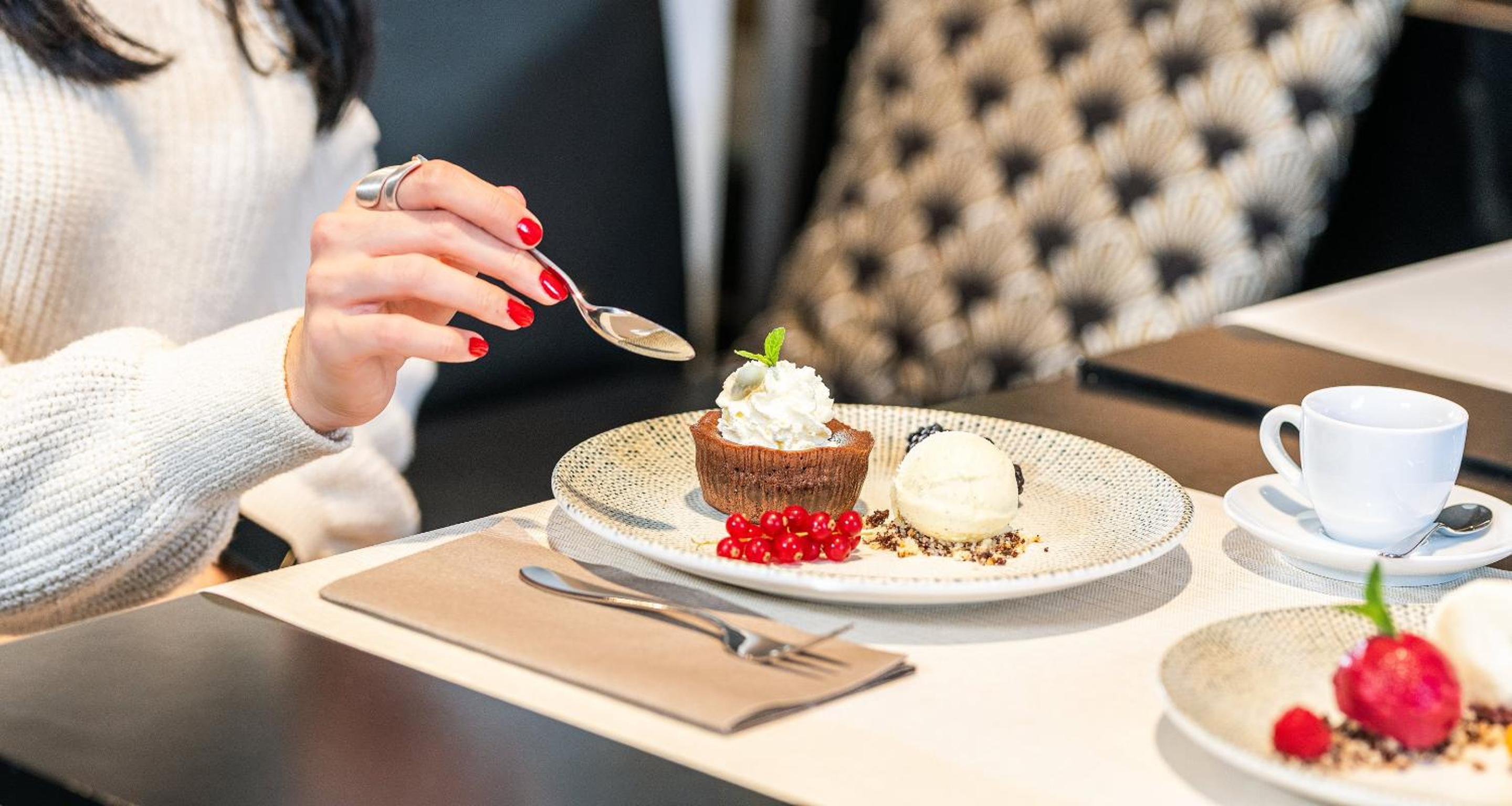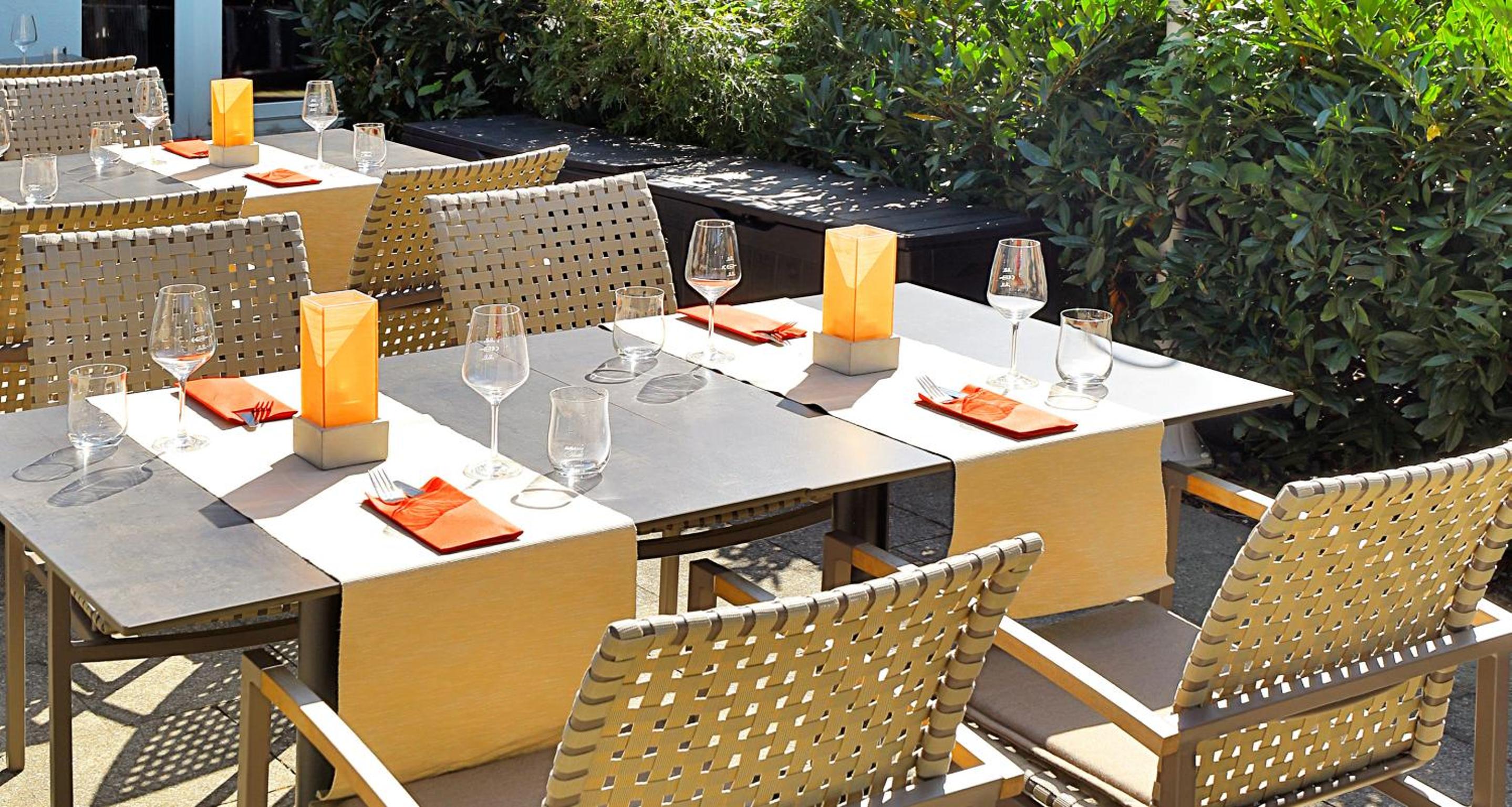 Indulge in seasonal and international cuisine at our restaurant with a terrace. Pair your meal with a selection of fine wines for a delightful dining experience.