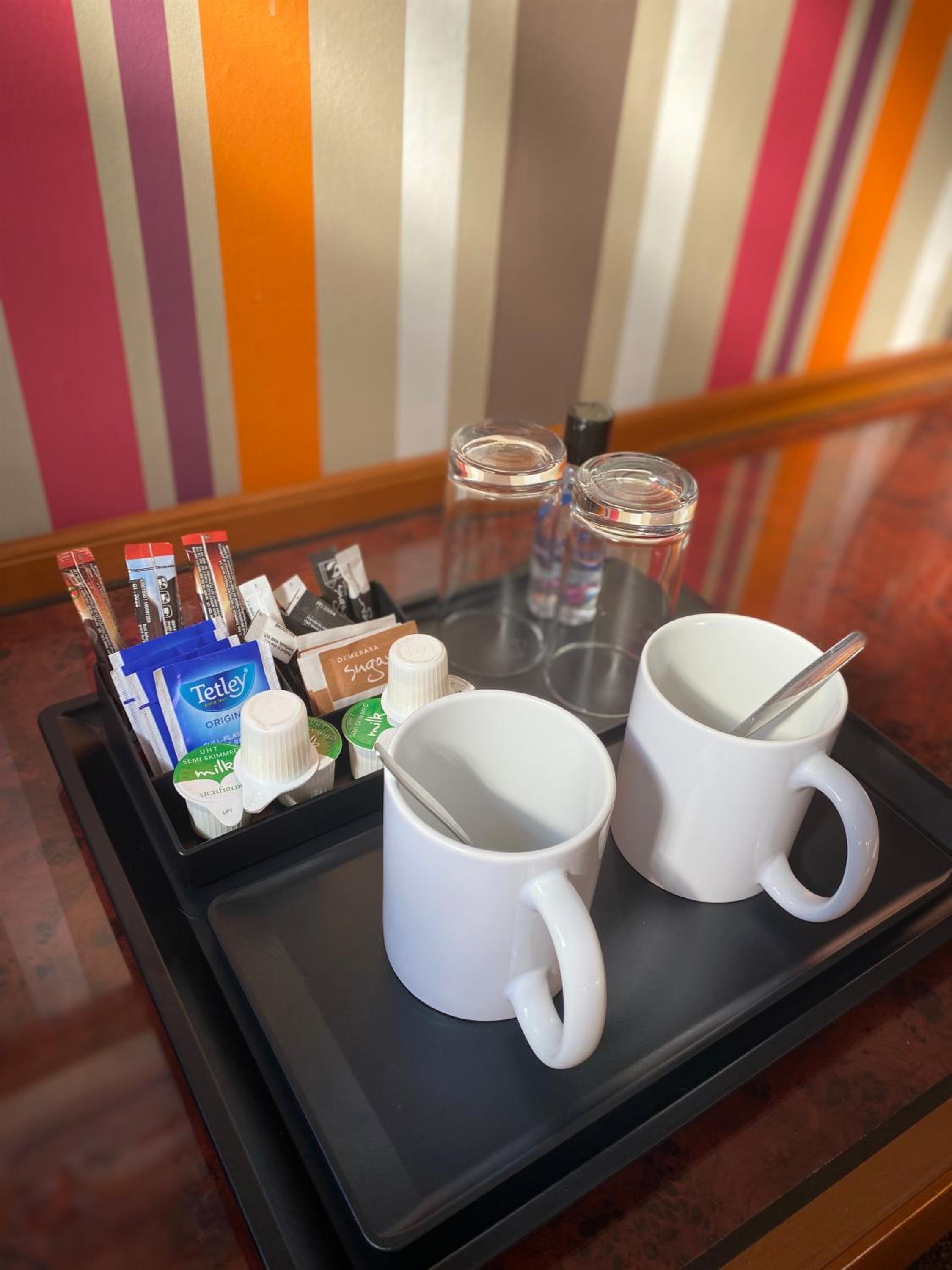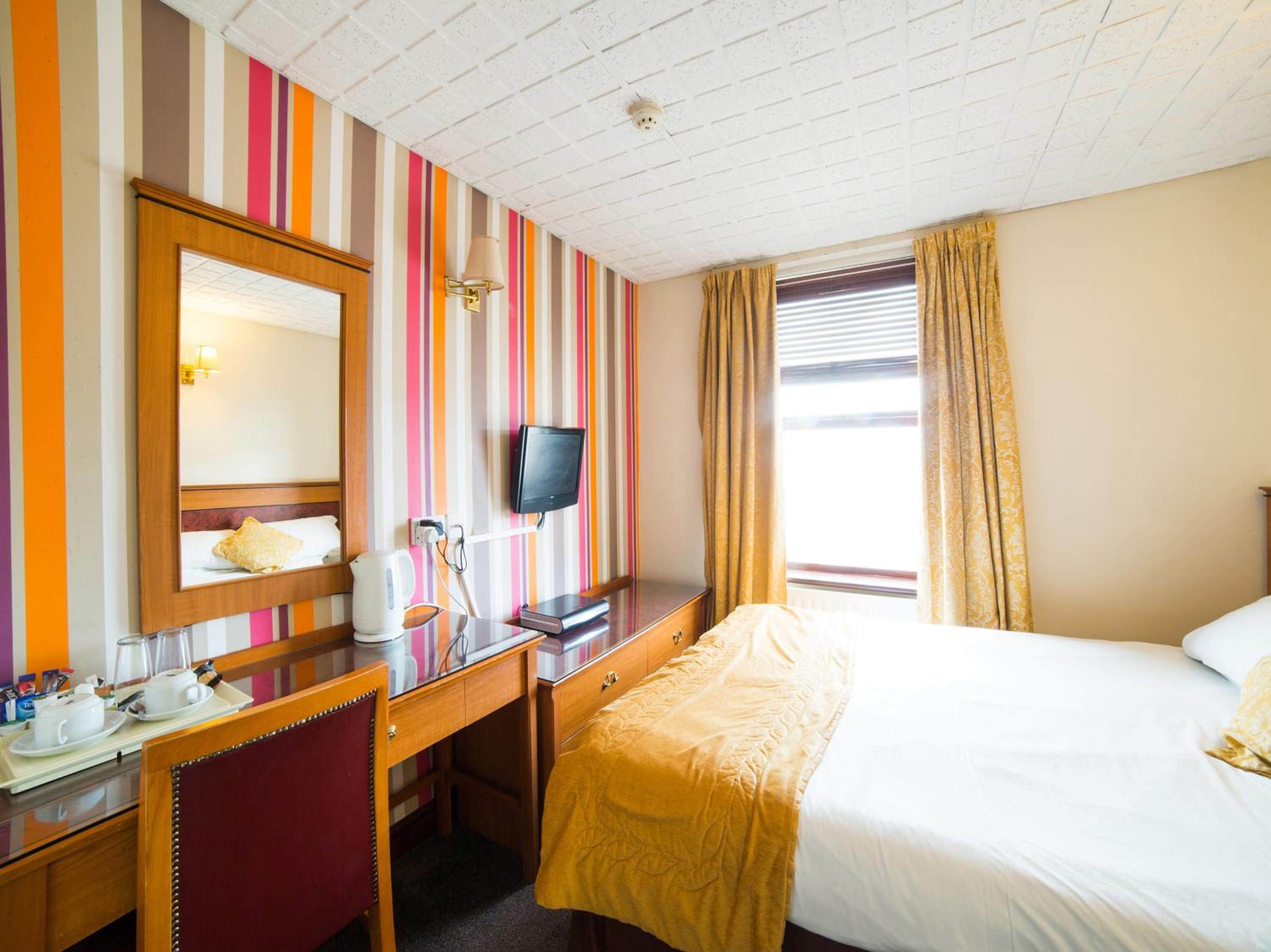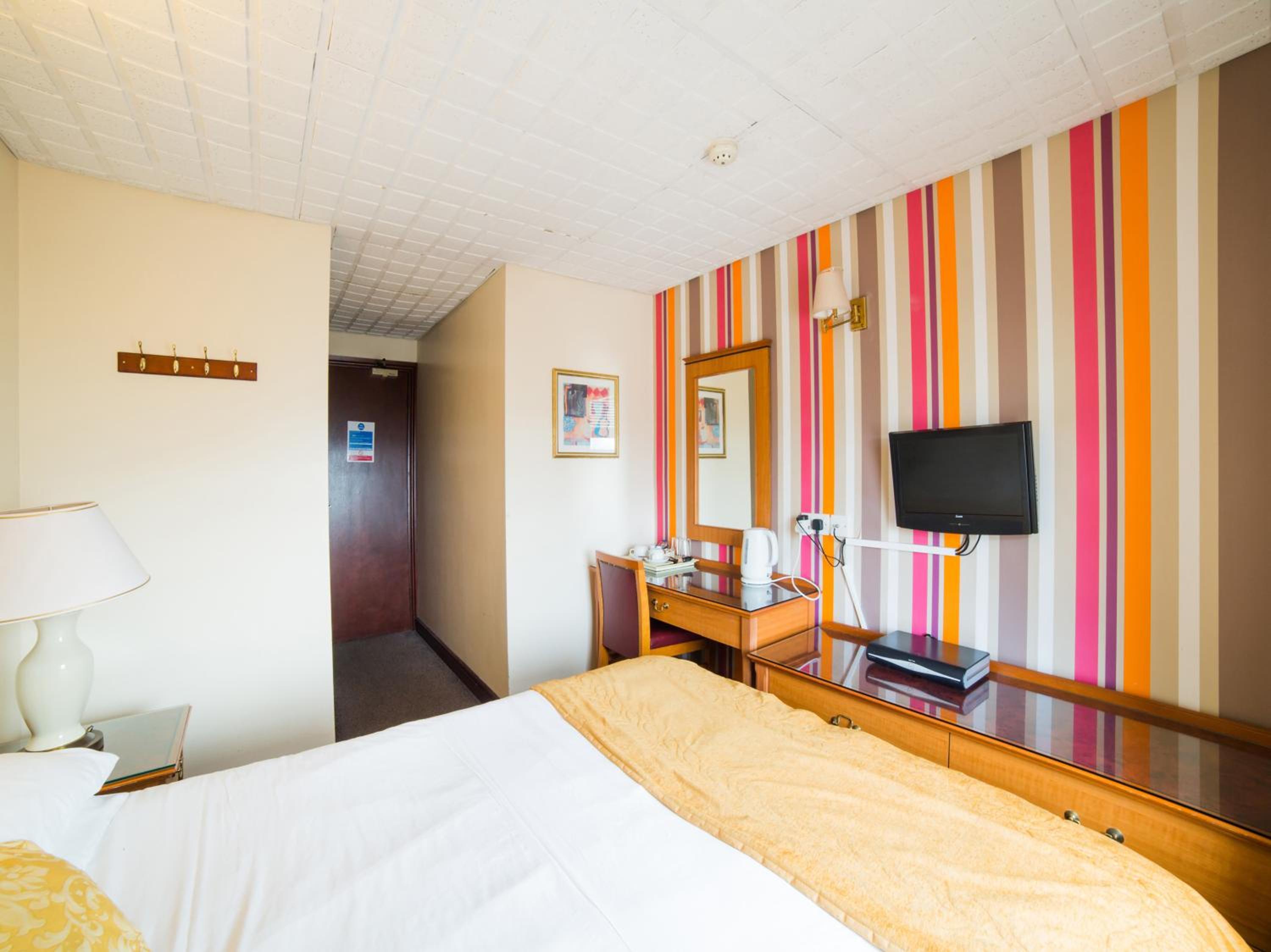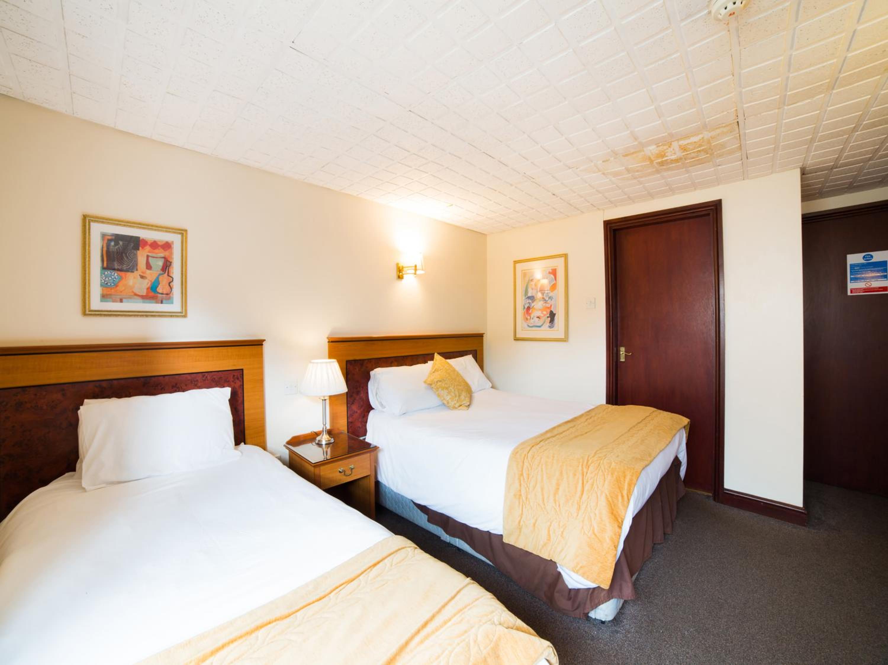 The room was comfy. Twin beds and bathroom. The decorations were a bit dated, the ceiling needs painting. But very quiet. Sky TV was a bonus !