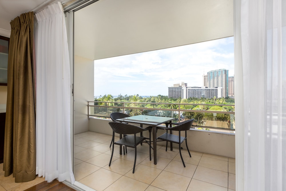From the moment we arrived the staff were welcoming and engaged with us as guests, always greeting us with a smile and asking if everything was going well for us. The room was spacious, just what our group of 4 needed. Balcony overlooking Fort DeRussy park, ocean views and each sunset was great. Plenty of room in apartment great kitchen and fridge. Bathroom was spacious. 9 floors never waited for the lift everything very clean. Location is so good on Beachwalk. Use of Outrigger Reef pool was a bonus.Room had beach chairs and a boogie board as well.