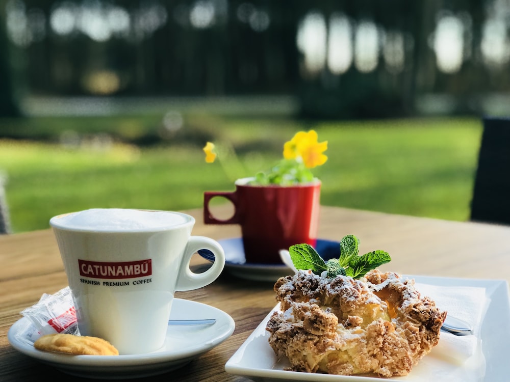 Prima locatie, ruime kamer met terrasje, prima badkamer. Het interieur is gedateerd en maakt een wat sombere indruk. Nodigt niet uit om lang in het hotel te blijven, wel om er op uit trekken de natuur in op de huurfiets.