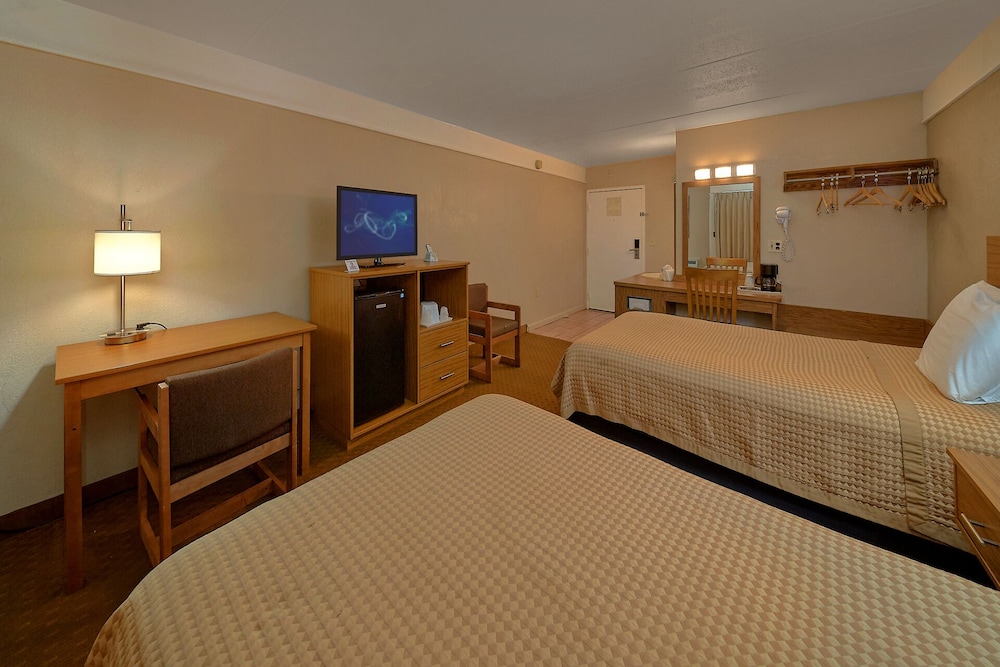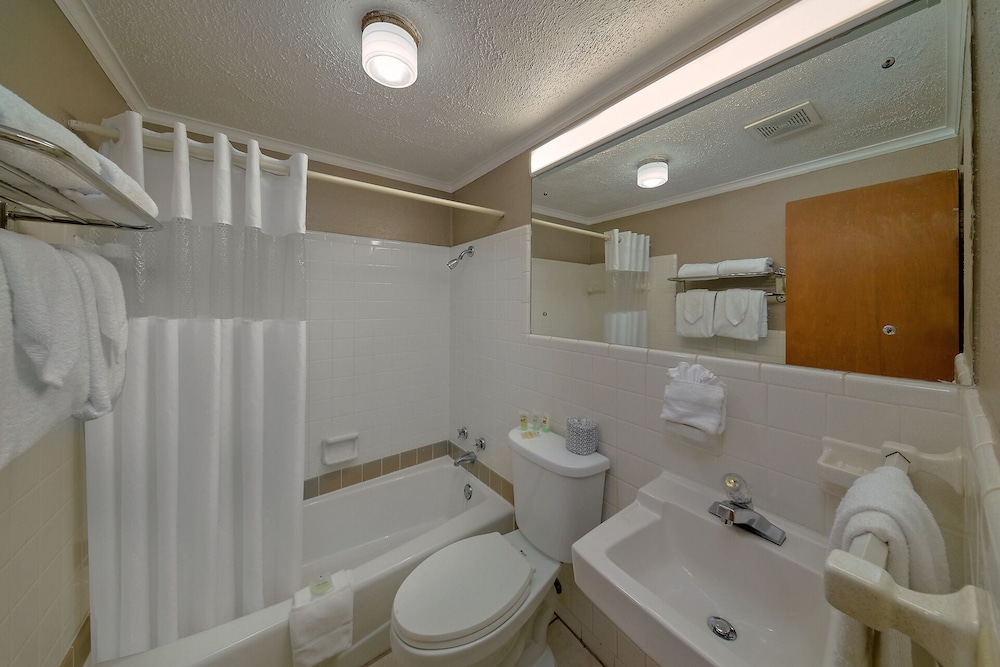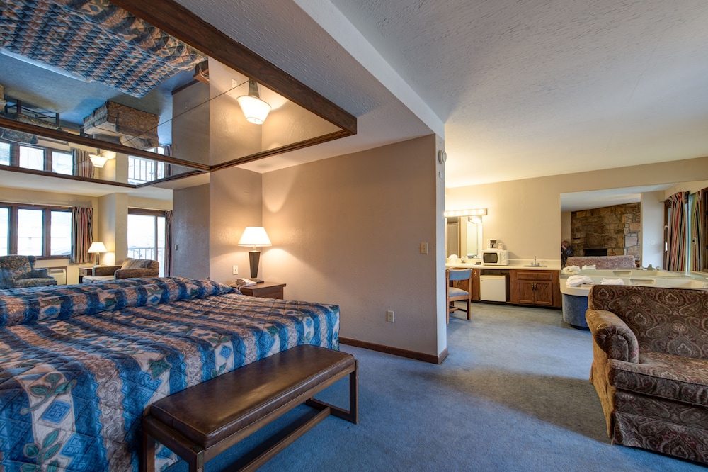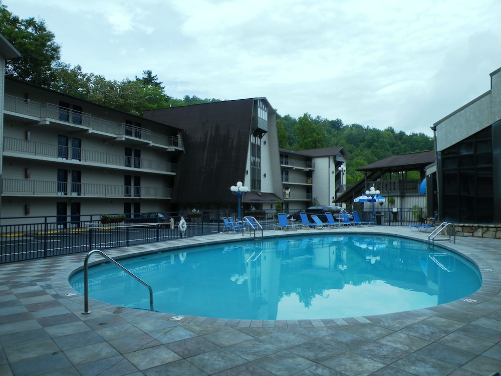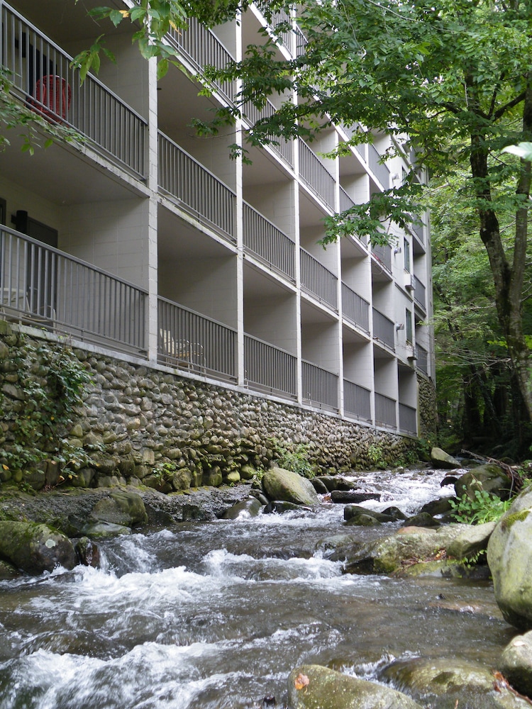 When I first checked in I was a bit shocked and wasn’t sure why it had such a high rating, but it grew on me as the days went by. The ladies that were at the front desk were very friendly at check in—I was more so shocked when I first entered the room. But overall, it is a great place for the price. It’s older and the rooms could use better renovations. It was fairly clean. The pools were very clean and well maintained. The hot tub was very hot and has a nice vibe with some LED lights around it. The walk into town isn’t too bad but it is nice to have the trolley pickup right up front. I paid the extra few dollars for a creekside room and don’t regret it a bit. Sitting by the creek was really enjoyable with the bonus of being able to people watch with the hotel across the creek. There is a black bear that comes around and we were lucky enough to see it 2 of the 4 days we were there. Overall I would stay here again. If you’re looking for a budget option that’s still close to downtown and has pools/a hot tub this really is the best option.