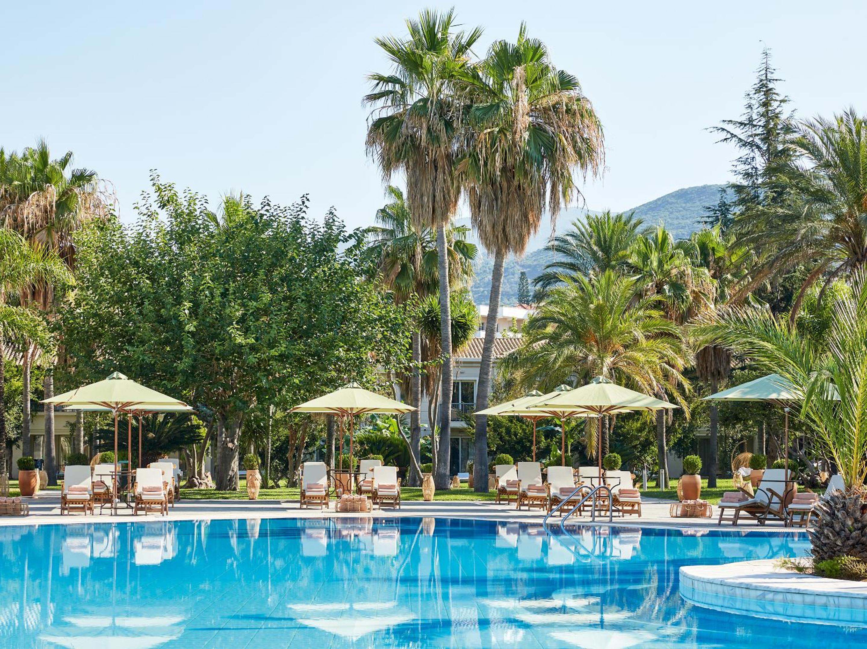 The Grecotel Filoxenia Hotel offers elegant guest rooms with stunning views, gourmet cuisine at the Olive Restaurant, and refreshing drinks at the Ipanema Bar.