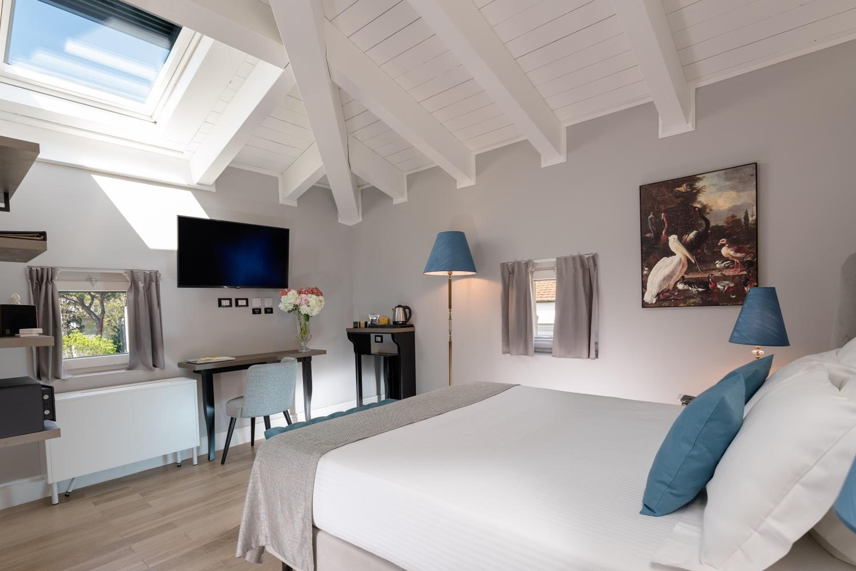 Stile e grandezza camera, pulizia giornaliera con cambio asciugamani, staff disponibile, arretramento dell'hotel rispetto alla strada principale e quindi assenza di inquinamento acustico.