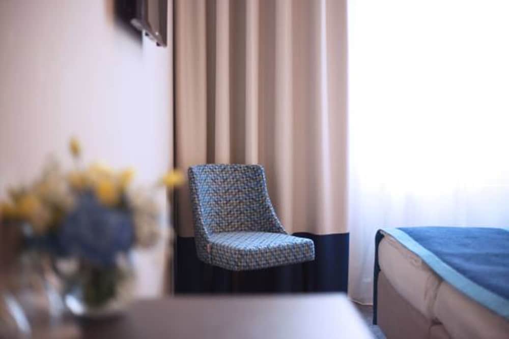 Very good and affordable hotel very close to the city center and within a few minutes walk to two underground stations. Spacious rooms and bathrooms, very clean, and with a very good breakfast. The staff (hotel seems to be family run) were very helpful and friendly. The rooms had no air-conditioning, but we were provided a fan which was very helpful during the heat wave we experienced when we were there. There was also free water, coffee and tea in the reception area which was quite nice.