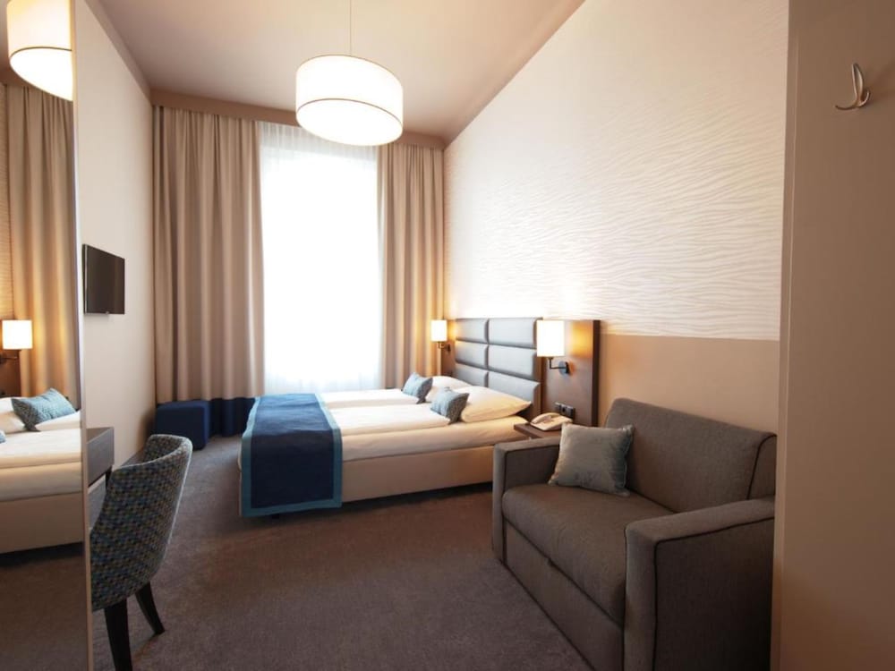 The hotel was a good choice. The staff was super friendly and helpful. Every staff member greeted us with a smile. The rooms were big and spacious with tall room heights. The beds were comfortable. A few extra pillows would have been appreciated. Rooms were cleaned every day and bed sheets changed every other day. Breakfast was the best part of the stay. So good! The hotel is located next to Naschmarkt and is right next to Karlplatz -metro tunnel. We used those tunnels to get everywhere around the town both by walking and by public transport. Super easy! You really couldn´t hear the traffic that well inside the hotel. The hotel was well soundproofed. The metro was only heard in the room as a soft hum when it went pass.