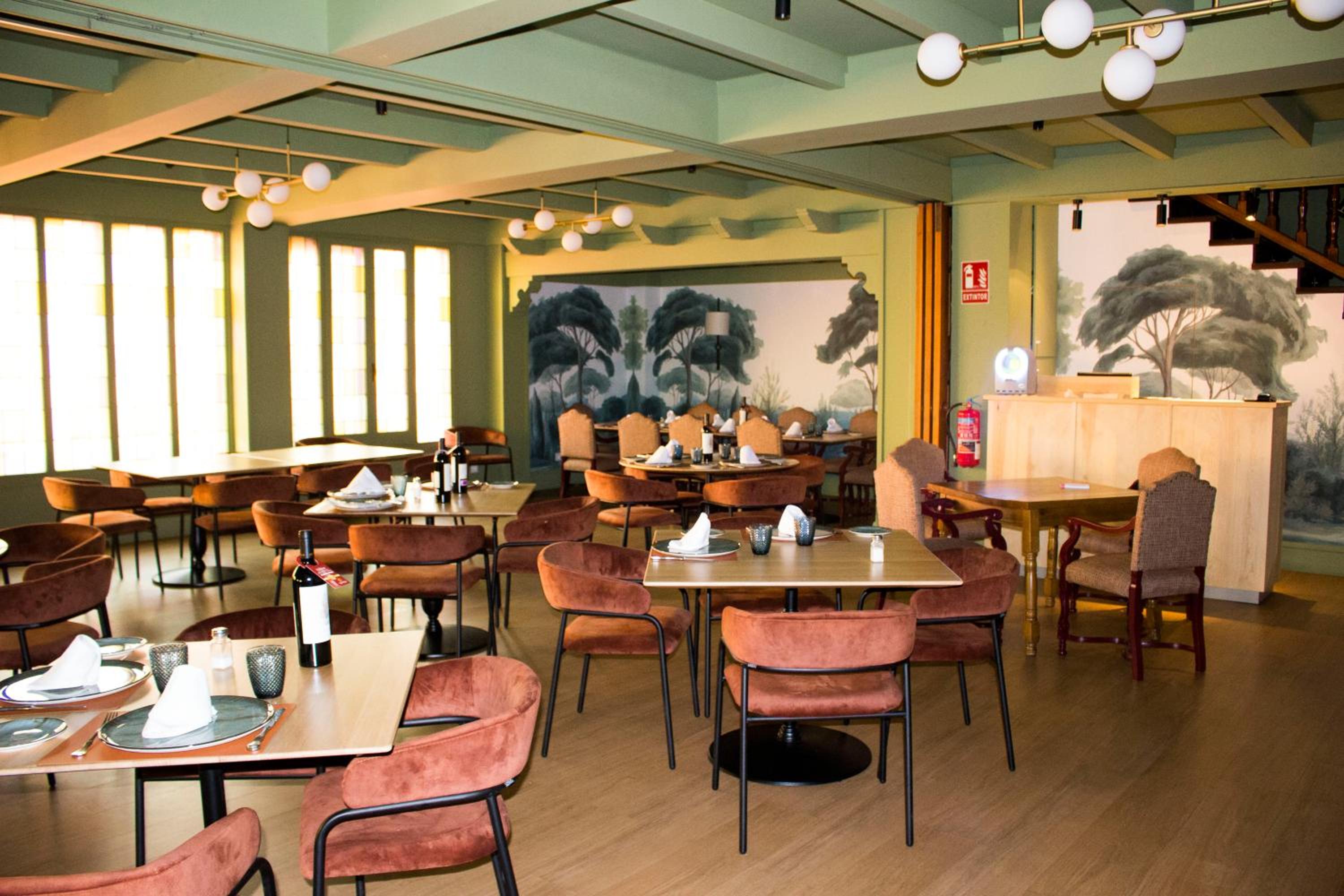 Hotel Spa Tudanca Aranda offers a range of wine-related activities for guests to enjoy, from grape harvesting to wine tasting. Indulge in traditional Castilian cuisine at the hotel's restaurant, known for its wood-fire oven lamb dishes. The dining hall's wine-themed decor adds to the unique experience.